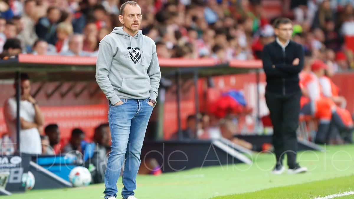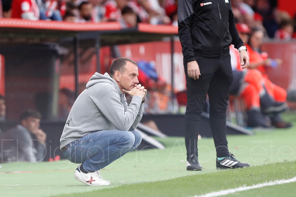El entrenador del Albacete compareció en sala de prensa tras la machada de su equipo en Gijón.