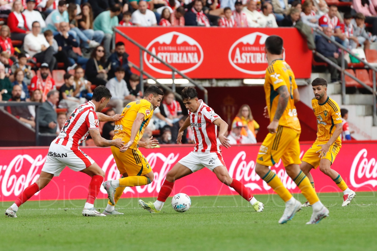 Por parte del Sporting de Gijón, Asier Garitano tuvo que hacer frente a cuatro bajas (Guille Rosas y Corredera sancionados; y Bernal y Curbelo lesionados) y apostó de inicio por un once compuesto por Yáñez en portería; Kevin, Pablo, Perrin y Diego, en defensa; Nacho Martín y Justin como preludio de una linea de tres compuesta por Dubasin, Gelabert y Gaspar; y con Juan Otero como hombre más adelantado.