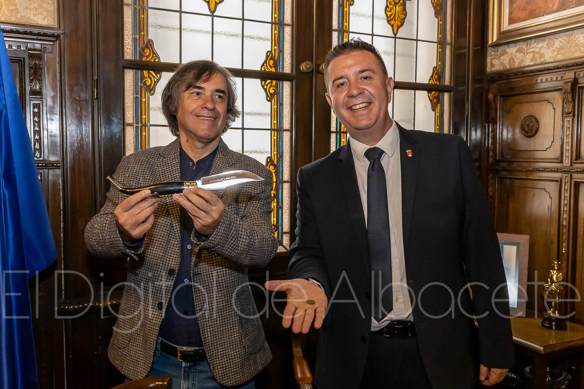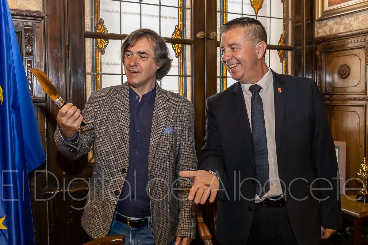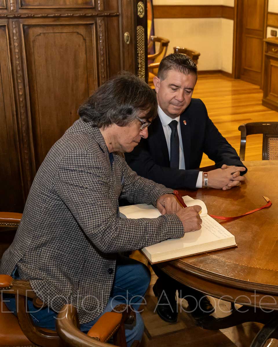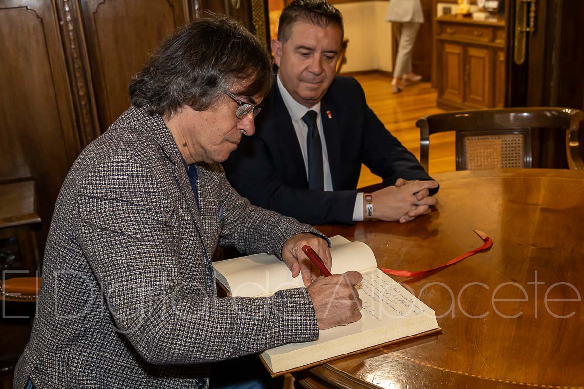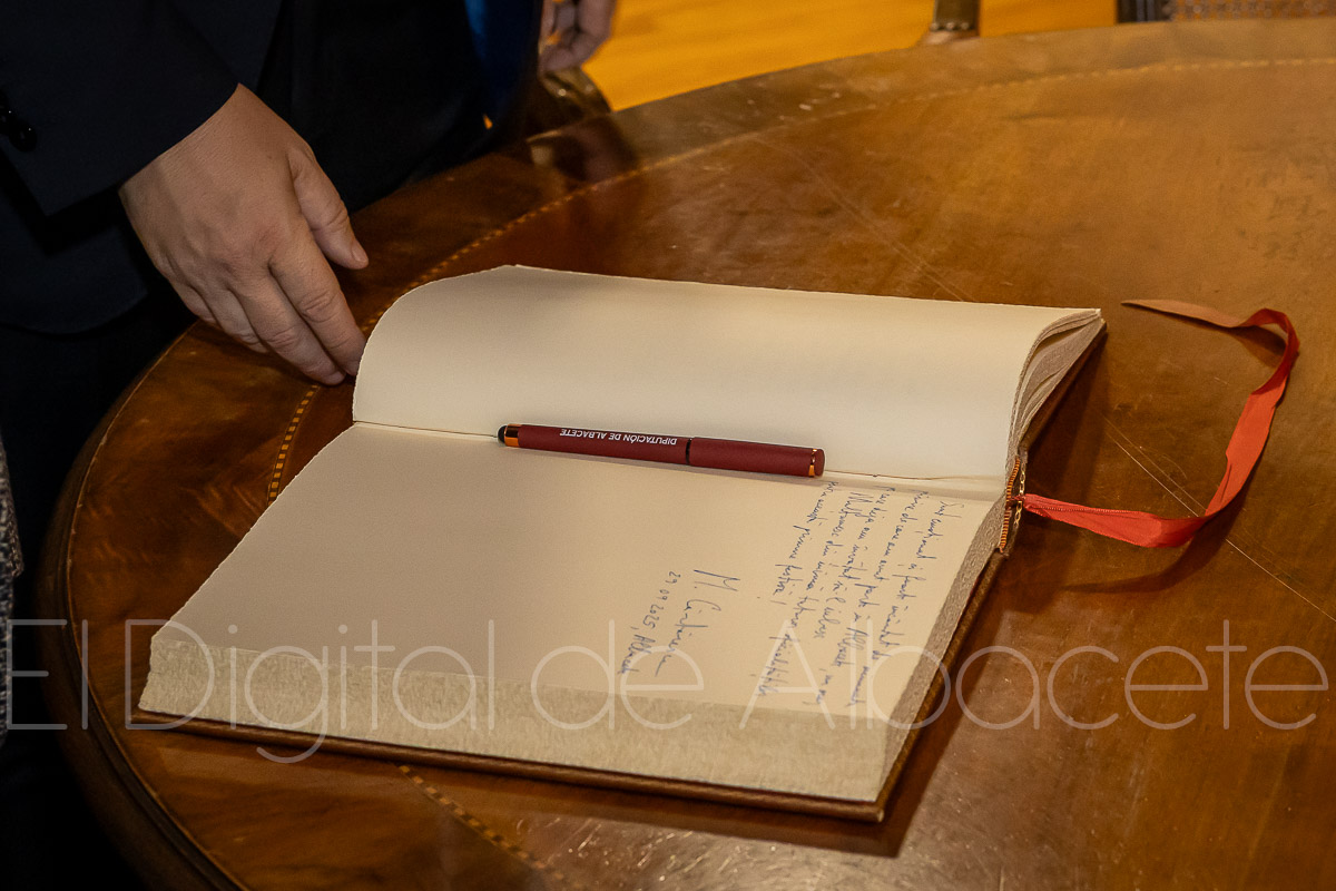 Tras la recepción oficial en el hall del Palacio, Cărtărescu ha firmado en el Libro de Honor de la Diputación. Como recuerdo, y tras escuchar la historia de la pertinente tradición para que no se corte la amistad, ha recibido de manos del presidente una navaja típica de Albacete personalizada con su nombre, símbolo del vínculo entre el autor y esta tierra.