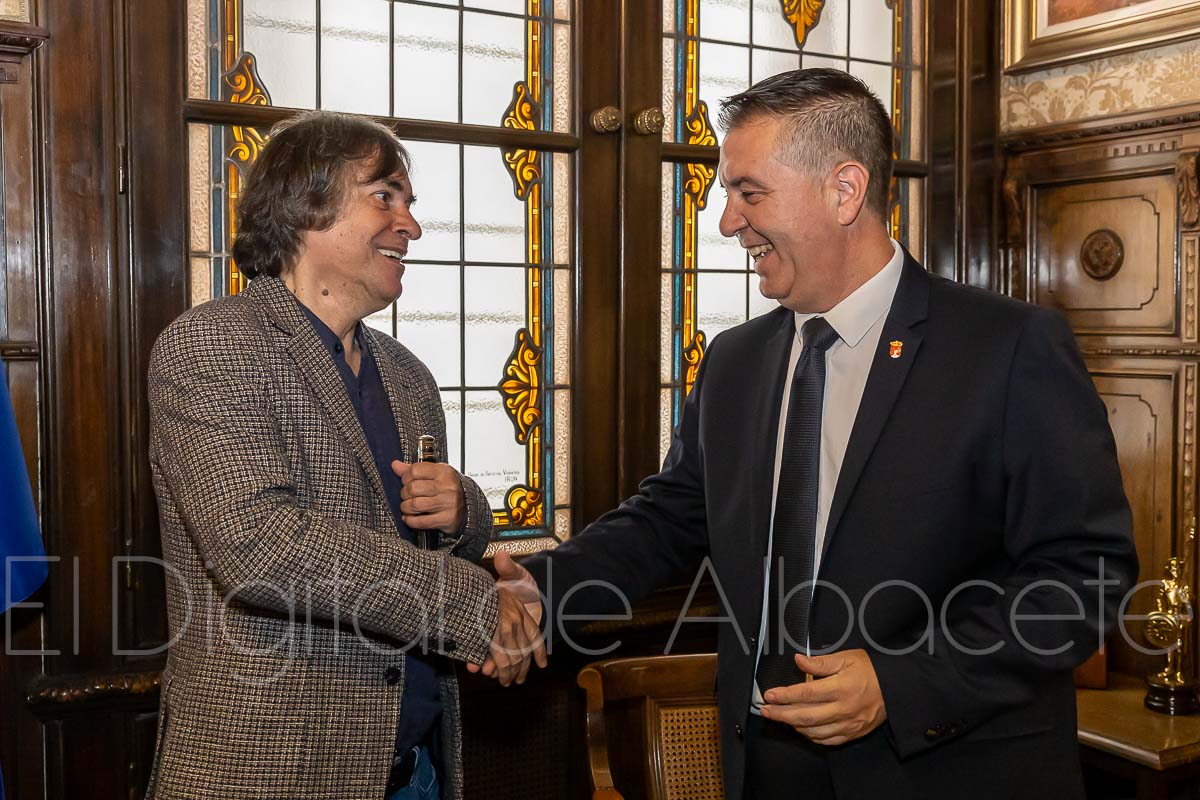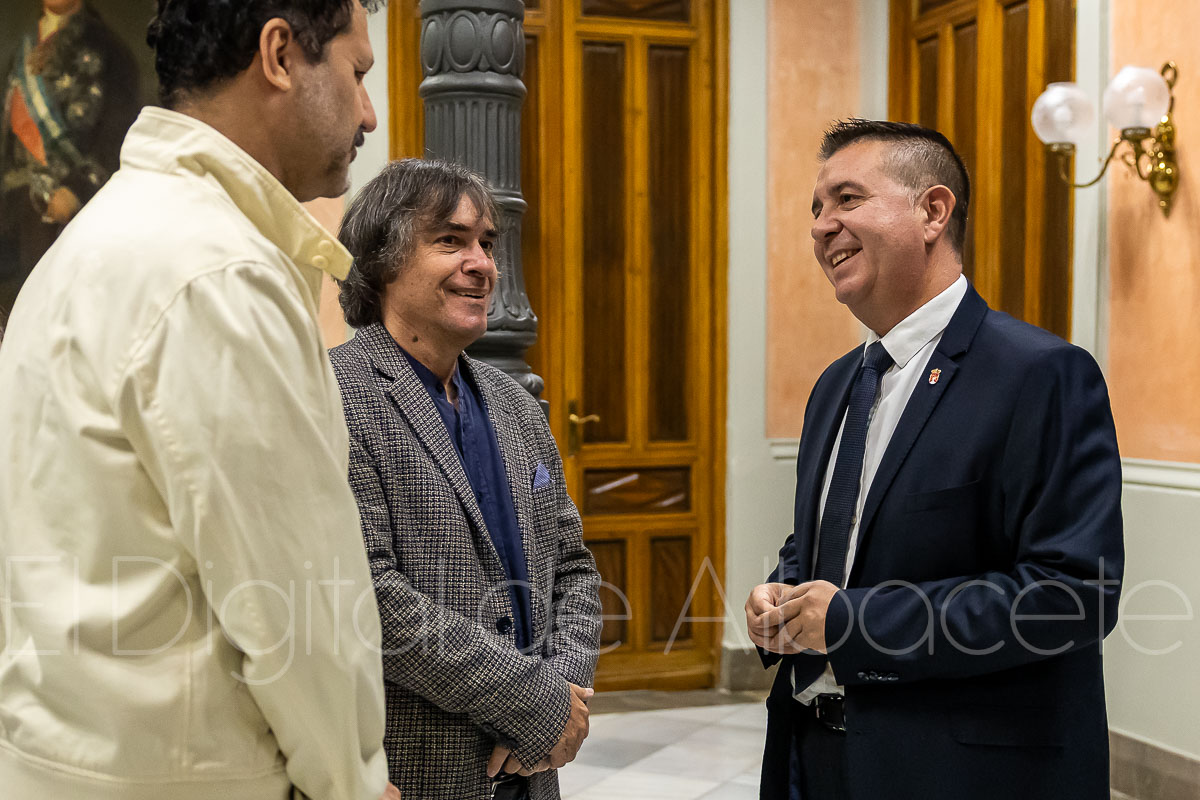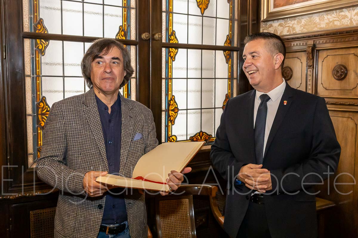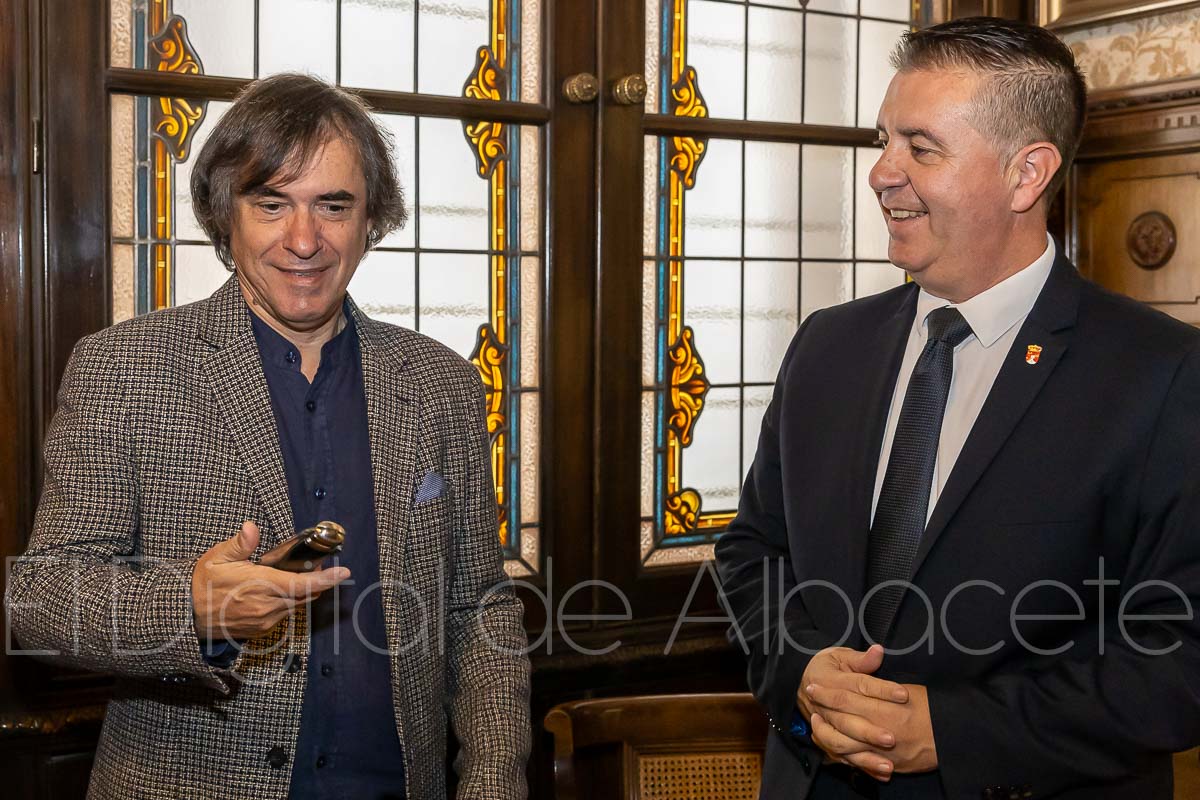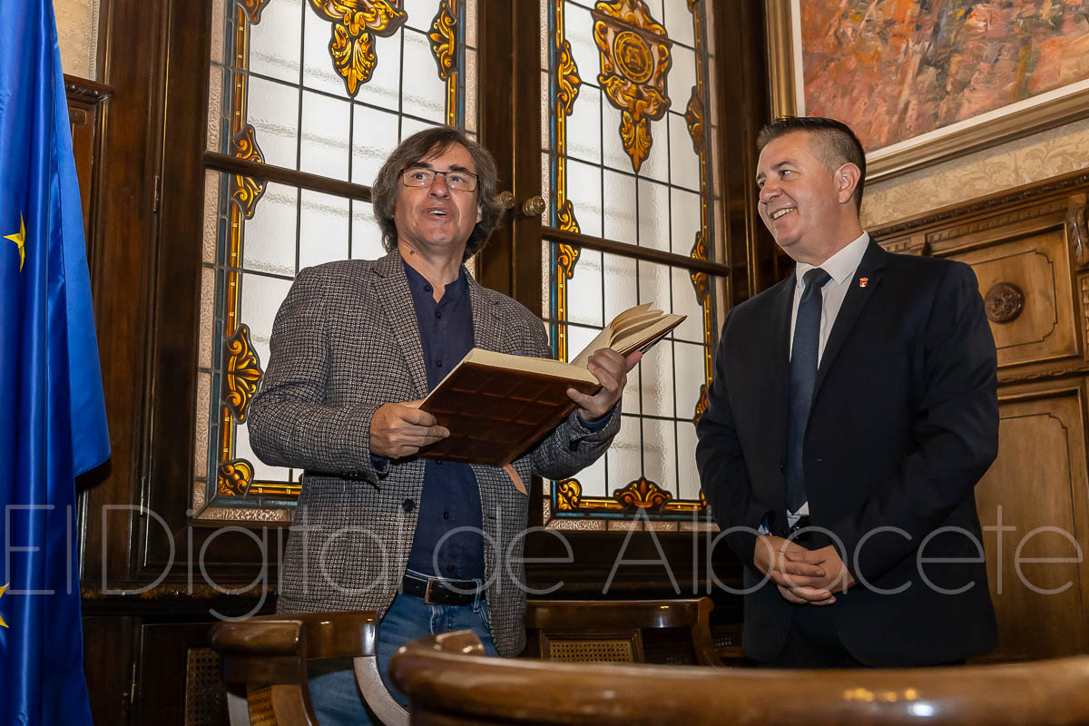 Tras la recepción oficial en el hall del Palacio, Cărtărescu ha firmado en el Libro de Honor de la Diputación. Como recuerdo, y tras escuchar la historia de la pertinente tradición para que no se corte la amistad, ha recibido de manos del presidente una navaja típica de Albacete personalizada con su nombre, símbolo del vínculo entre el autor y esta tierra.