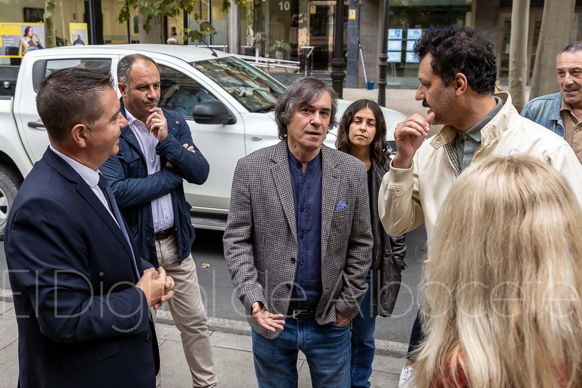 Ante su interés, Cabañero le ha enseñado previamente las marcas de proyectiles que aún se conservan en las verjas del Palacio Provincial, vestigio vivo del bombardeo sufrido por Albacete el 19 de febrero de 1937 durante la Guerra Civil española, fruto de un ataque perpetrado por la Legión Cóndor alemana que se prolongó durante más de seis horas, dejó alrededor de 150 víctimas mortales y golpeó especialmente zonas cercanas al propio edificio de la Diputación, así como barrios y calles emblemáticas de la ciudad.