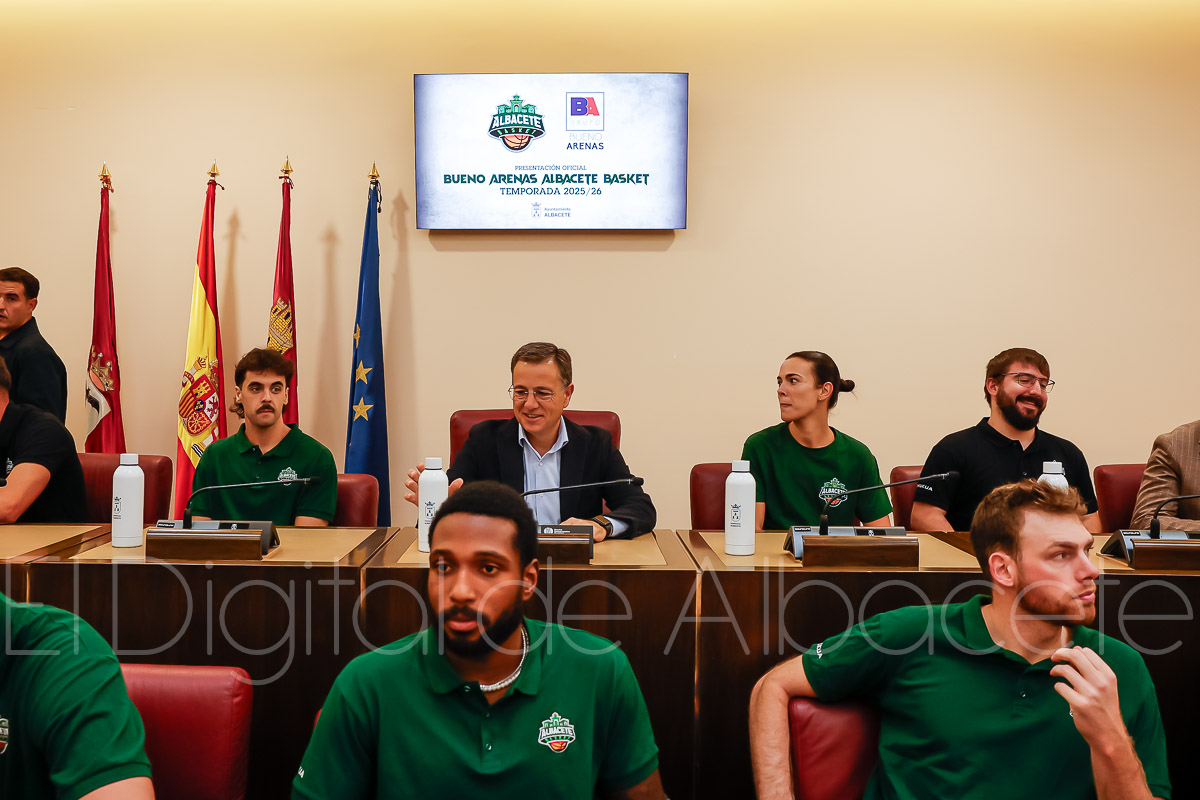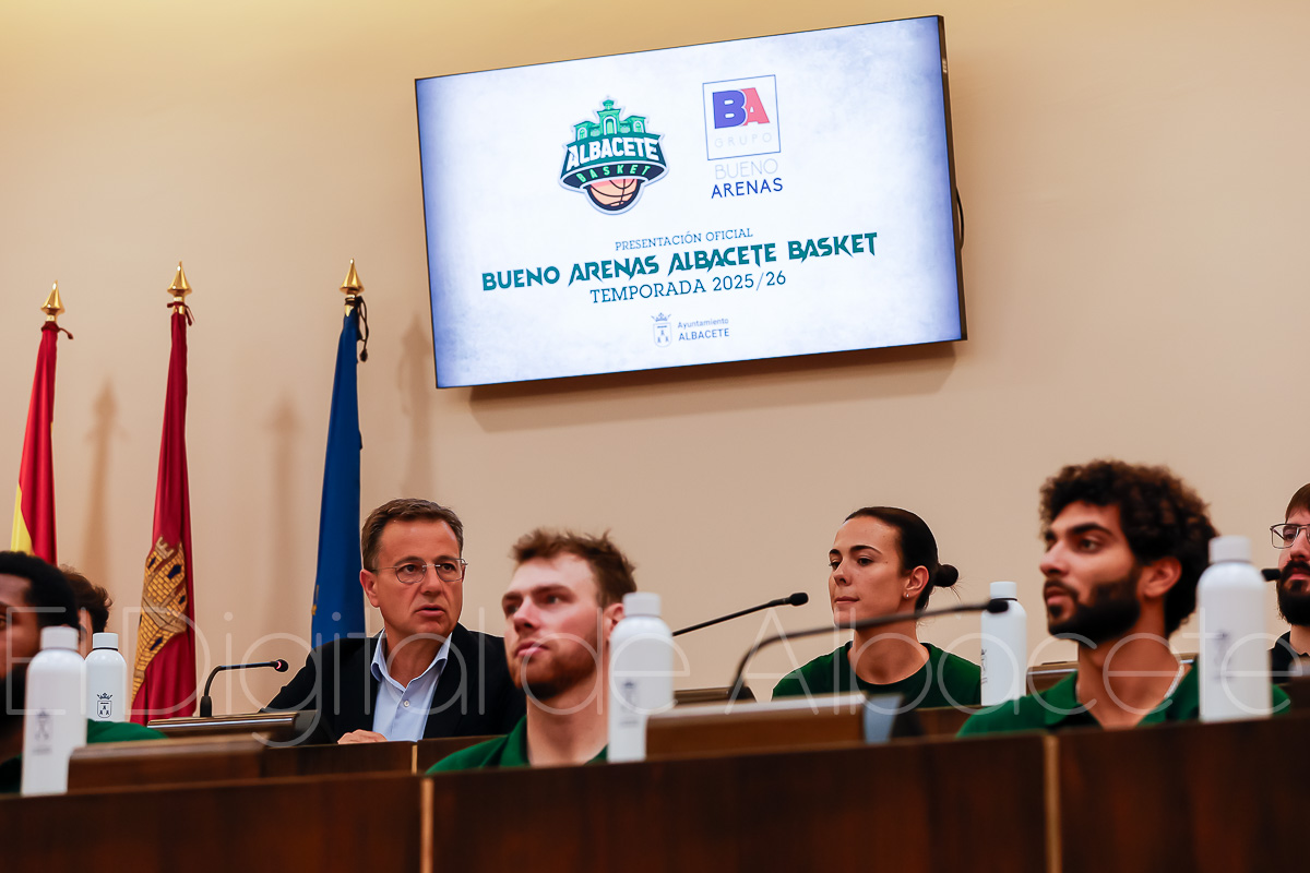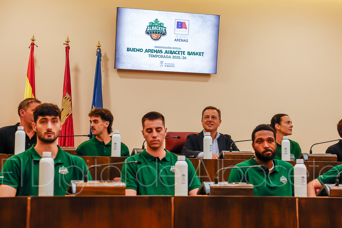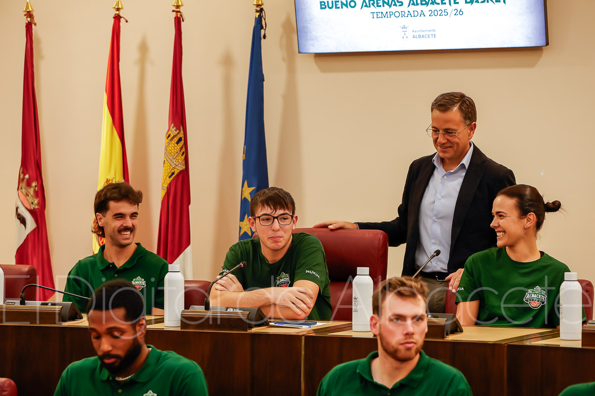En la tarde de este lunes, el Bueno Arenas Albacete Basket ha vivido su puesta de largo en el Ayuntamiento de la ciudad manchega, donde se ha realizado la presentación oficial del equipo albaceteño de la temporada 25/26.
