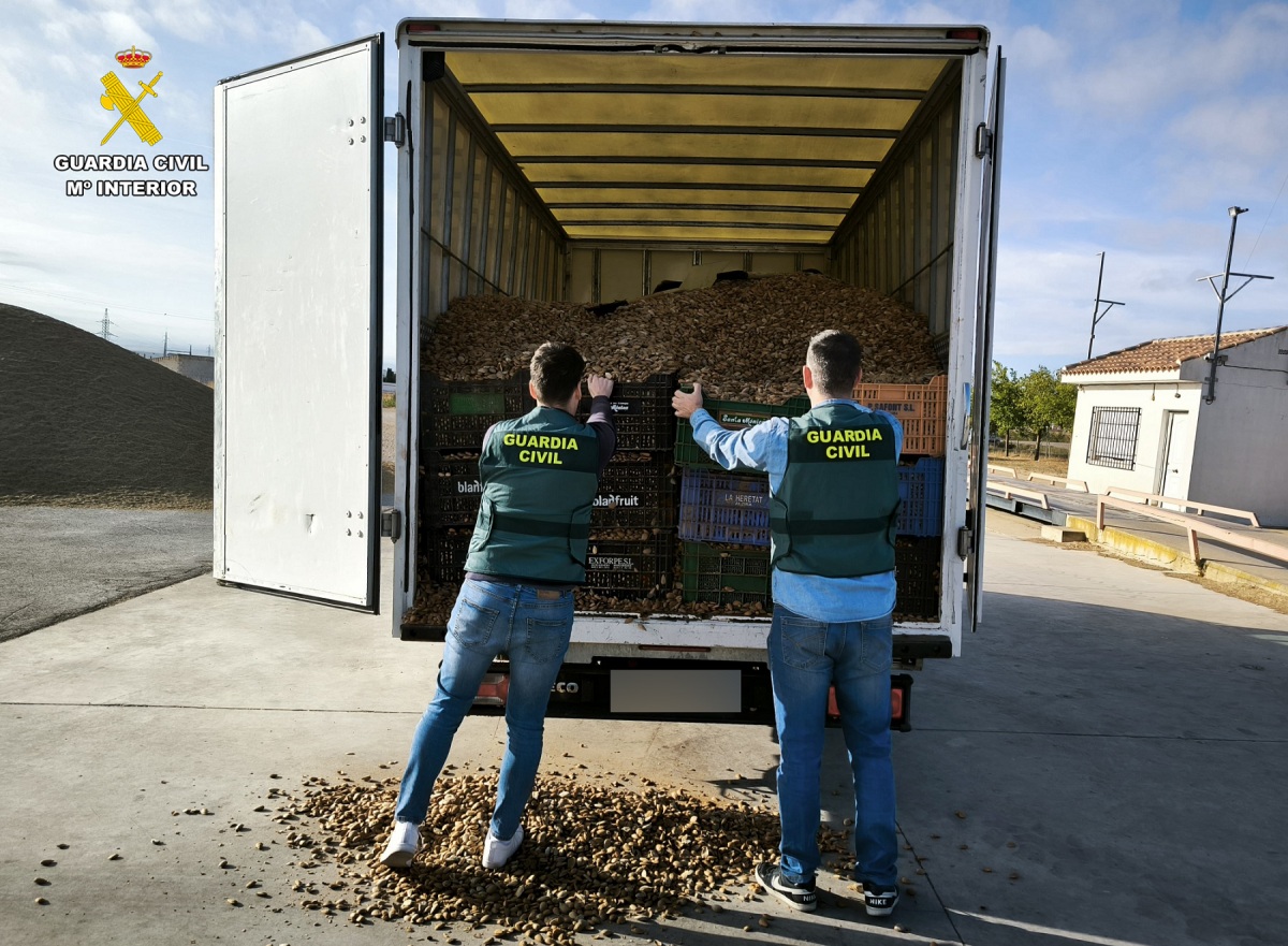 Efectivos del Equipo ROCA de la Guardia Civil de La Roda han detenido a dos vecinos de Albacete capital, de 38 y 53 años de edad respectivamente, como presuntos autores de un delito de robo de más de cinco toneladas de almendra del interior de una parcela ubicada en el término municipal de Barrax (Albacete). Ambas personas ya contaban con antecedentes policiales anteriores por hechos delictivos de similares características por los que fueron detenidos.