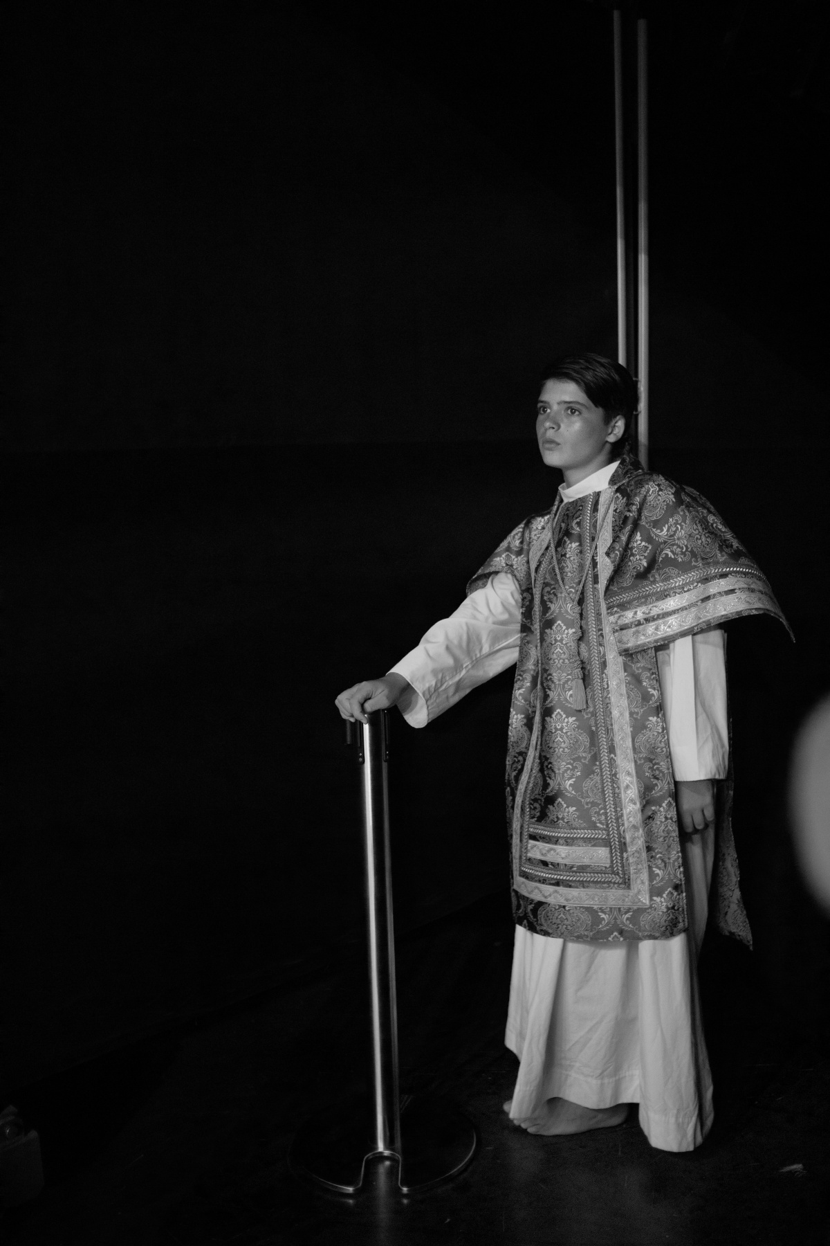 Tras la emocionante obertura que puso en pie a las 12.000 personas del Arena mientras ondeaba la bandera de la Valencia sobre una duna del lago, el espectáculo continuó con una cabalgata que homenajeaba las fiestas y tradiciones más representativas de Valencia. Una de las escenas más emotivas fue la dedicada a San Vicente Mártir, patrón de la ciudad. Para la ocasión, el atelier de Molina diseñó y confeccionó una dalmática de damasco granate, enriquecida con pasamanerías doradas, símbolo de solemnidad y tradición.