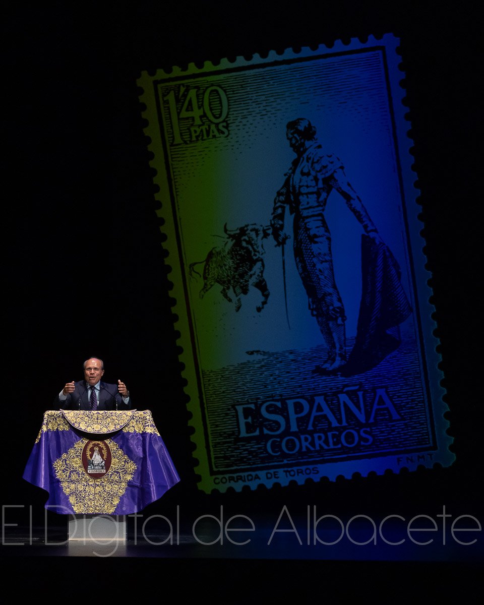 Así, y teniendo como base dicho sello en el que aparecía Pedrés, se elaboró dicho cartel y el eslogan de la Feria Taurina, ‘Una feria con sello propio’. Al respecto, López-Galiacho dijo en aquel momento que “hoy hacemos historia en la cartelería taurina, porque nunca se incorporó un sello a una cartelería taurina y hoy, aquí, para la Feria de Albacete 2025, lo hacemos. Es un sello del maestro Pedrés ejecutando la ‘Pedresina’, un sello emitido en 1960 por la Real Casa de Correos, Con este sello le damos reconocimiento a una figura legendaria del toreo, que aún siendo de Albacete no ha sido homenajeado en su ciudad. La ‘Pedresina’ la inventó porque, como él dijo, refleja el sentimiento de lo que son los albaceteños; son aguante, como había que aguantar delante de la cara del toro para hacer la ‘Pedresina’”.