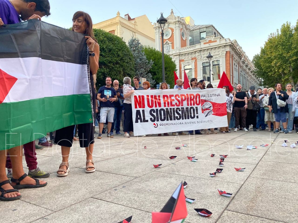 Durante esta jornada se han sucedido las concentraciones por todo el territorio nacional en apoyo a la Global Sumud Flotilla para exigir la liberación de los activistas y la apertura de un corredor humanitario en Gaza, tal y como ha ocurrido en la capital albaceteña.