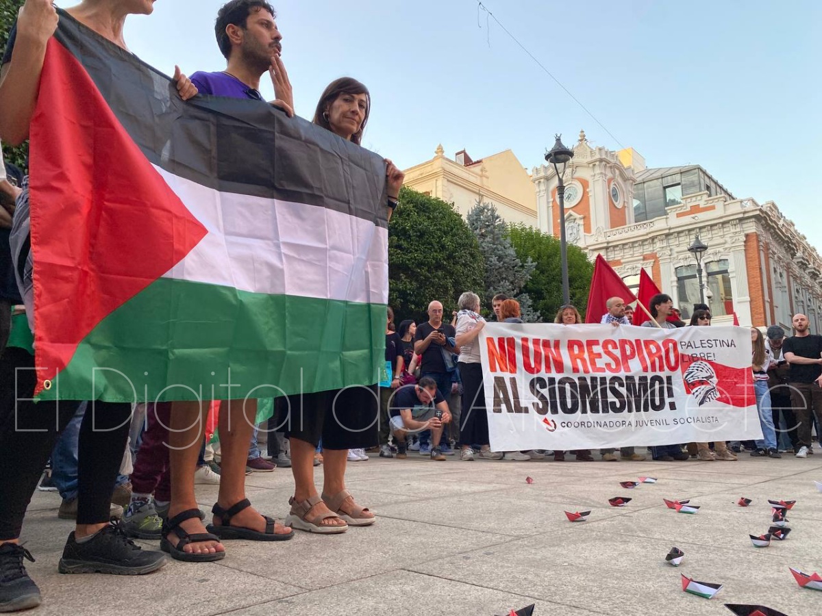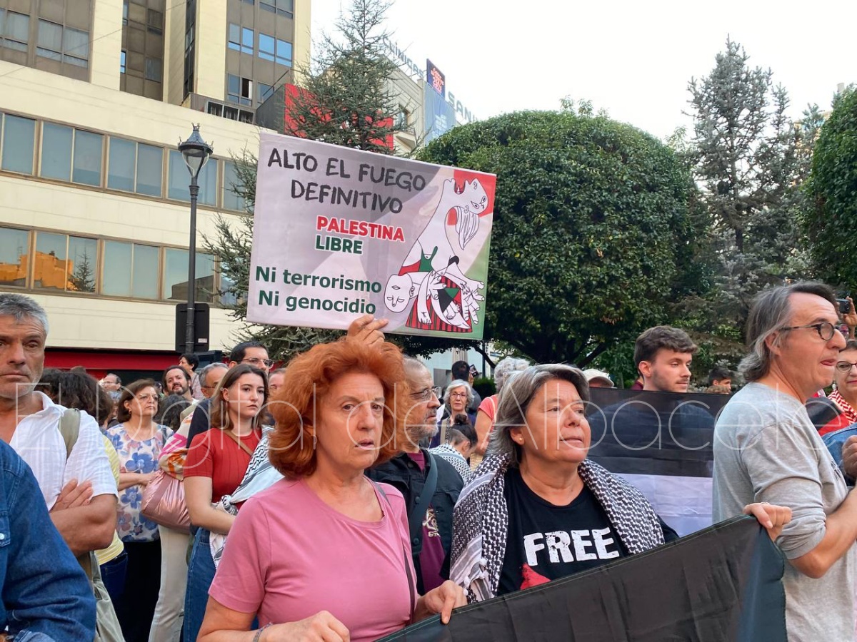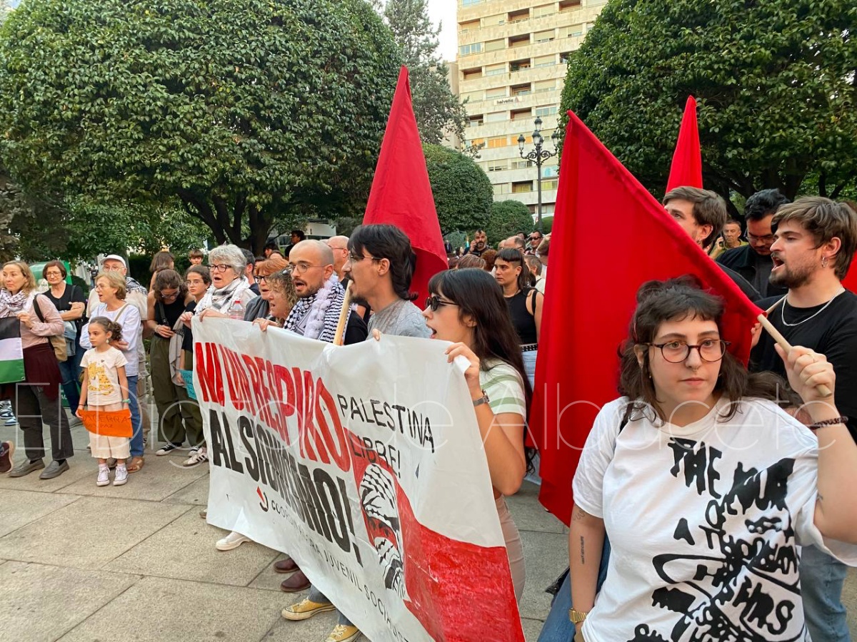 Así, numerosos albaceteños se concentraban en la tarde de este jueves, 2 de octubre, en la Plaza del Altozano a las 19:30 horas para exigir la liberación de las personas que viajaban en la Flotilla y han sido detenidas, así como la apertura de un corredor humanitario en Gaza.