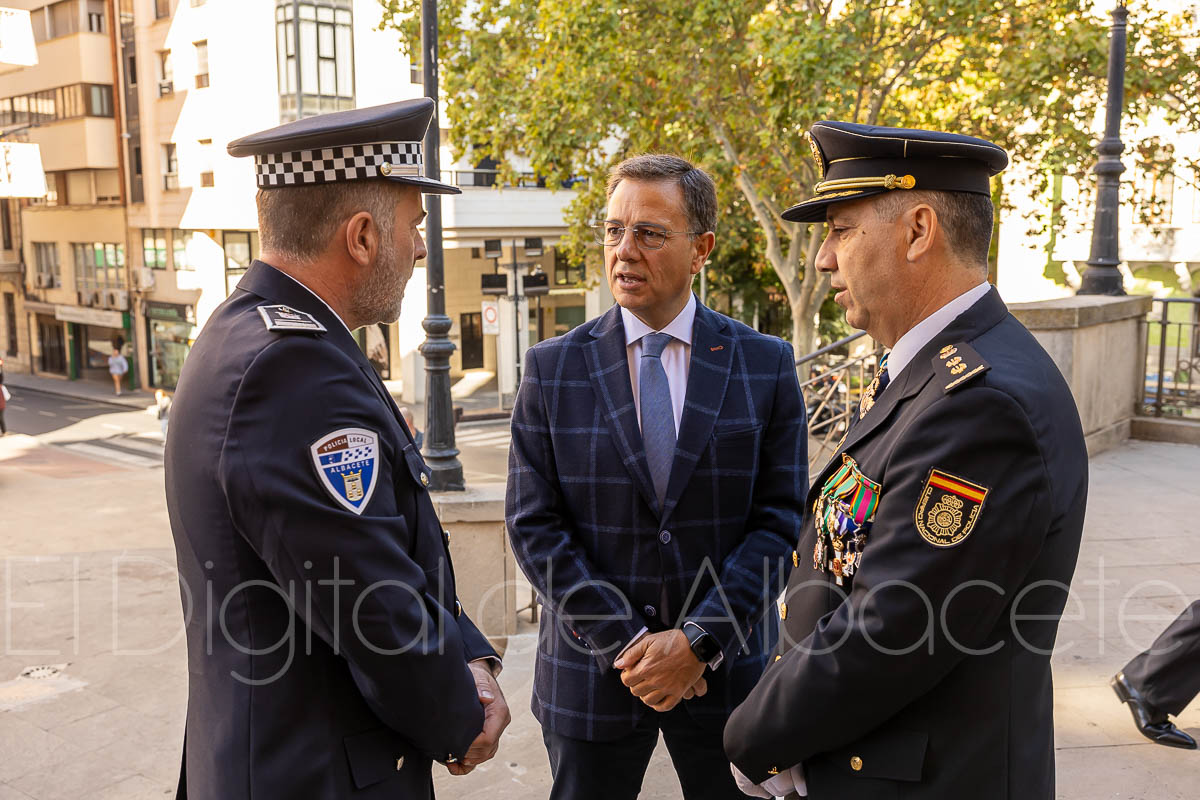 De forma previa a este acto institucional, se celebraba en la Catedral de San Juan Bautista una misa para conmemorar los Santos Ángeles Custodios. En el acto de conmemoración del Día de la Policía Nacional intervenía el Comisario del Cuerpo en Albacete, Antonio Bueno, quien aplaudía el trabajo que realizan todos los efectivos de la Comisaría Provincial con sede en la capital albaceteña. Y es que los agentes del Cuerpo Nacional de Policía velan a diario para garantizar la seguridad de la ciudadanía en Albacete.