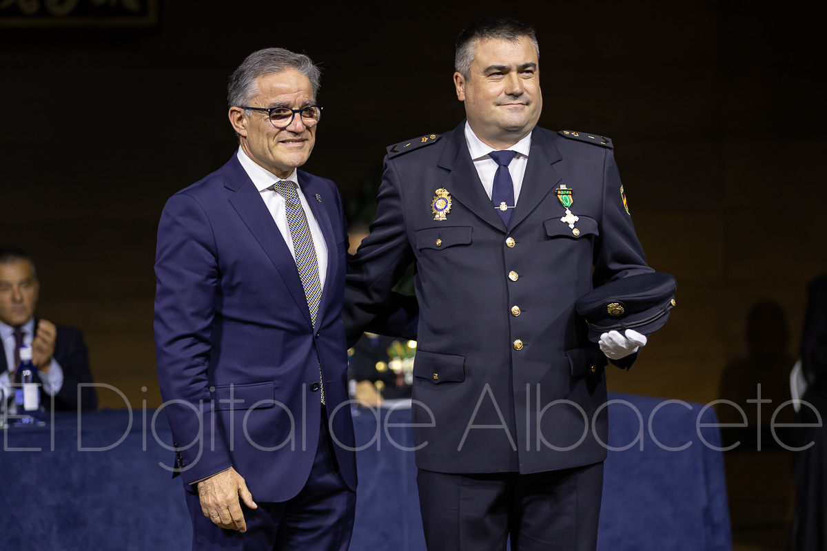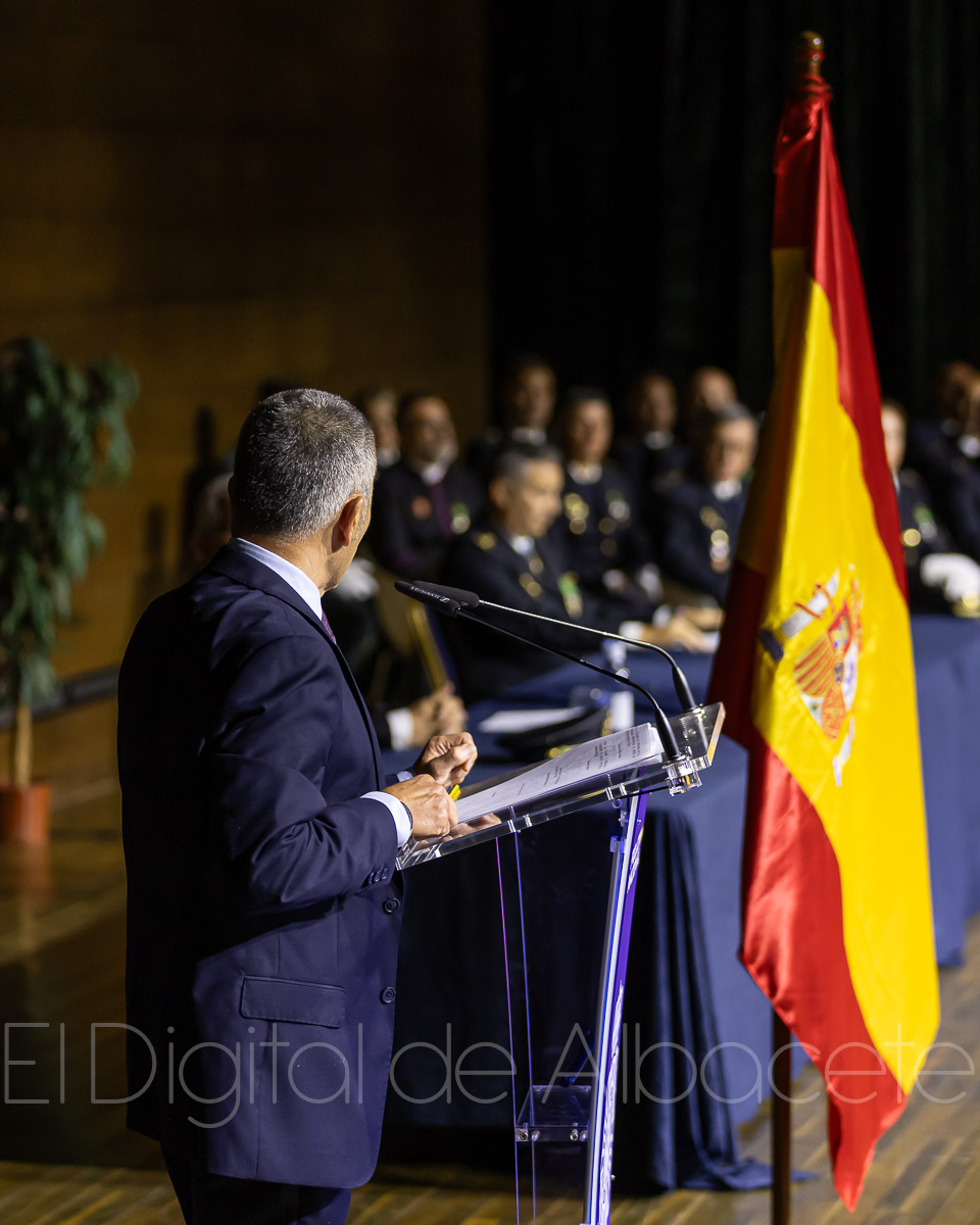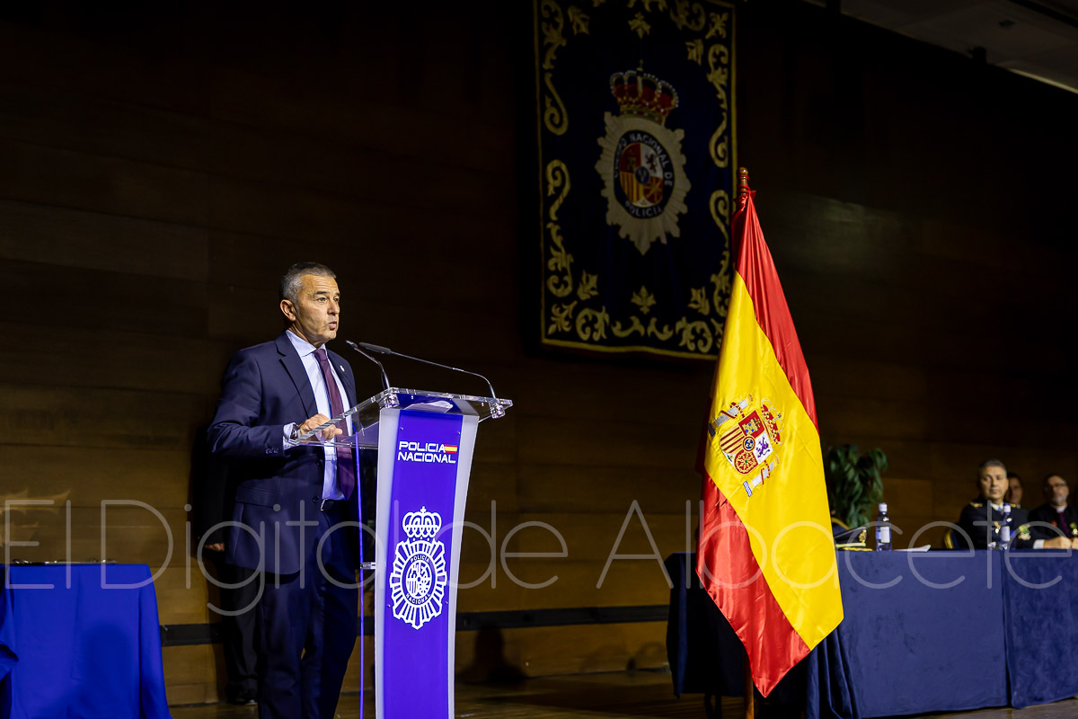 “Es un día grande porque nos reunimos alrededor de una celebración en la que reconocemos el trabajo y la profesionalidad de un grupo de personas, tanto dentro de la Policía Nacional como fuera”, expresaba durante su intervención en el acto el subdelegado del Gobierno, apuntando que estos reconocimientos se otorgan “porque su trabajo, su desempeño, tienen una gran relación con la Policía y hay que reconocerlo”. Además, remarcaba Miguel Juan Espinosa que “es un día grande porque también supone reconocer el trabajo diario a todas horas y todos los días de los 386 efectivos de la Policía Nacional que desarrollan su trabajo en la provincia de Albacete”.