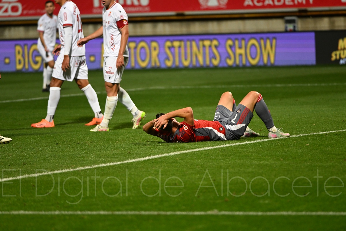 Llegados al minuto 25 el Alba gozó de otra buena ocasión, esta vez sí, pero Antonio Puertas no tuvo la puntería suficiente para mandar la pelota a dormir tras un ataque rápido albacetista que propició que el ‘7’ blanco, hoy vestido de rojo, recibiera un pase largo entre líneas que lo dejó mano a mano frente al portero local, quien le ganó la partida al atacante andaluz al atajar con su pierna derecha el disparo de Antonio Puertas en la que fue la segunda ocasión clara para el Albacete.