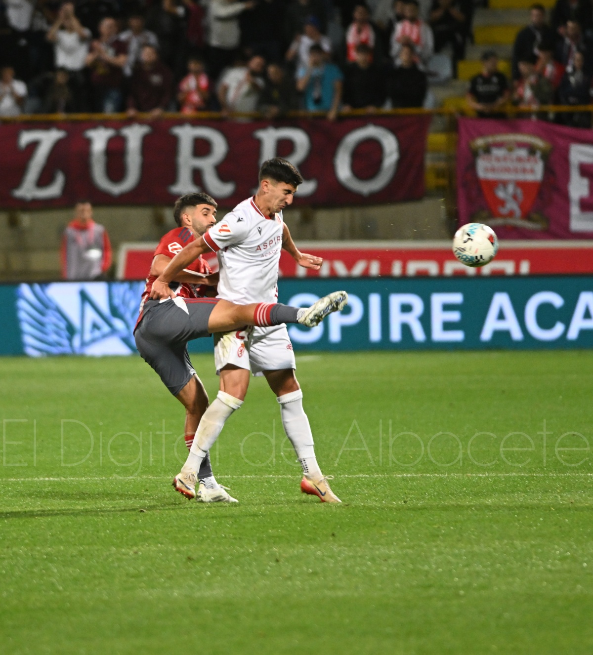 Tras el tremendo susto para la Cultural, las fuerzas se igualaron sobre el terreno de juego en los compases iniciales, pero conforme avanzaba el crono la balanza se iba decantando para un Albacete que sin tener un dominio apabullante, sí que es cierto que llegados al ecuador de la primera mitad era el dominador del encuentro y llevaba la iniciativa y el ritmo de lo que pasaba en el terreno de juego. Eso sí, y no nos llevemos a engaño, el Alba dominaba territorialmente pero no ponía cerco al marco contrario, ya que salvo de la de Morci, no había gozado de más ocasiones comprometedoras para el cancerbero local.