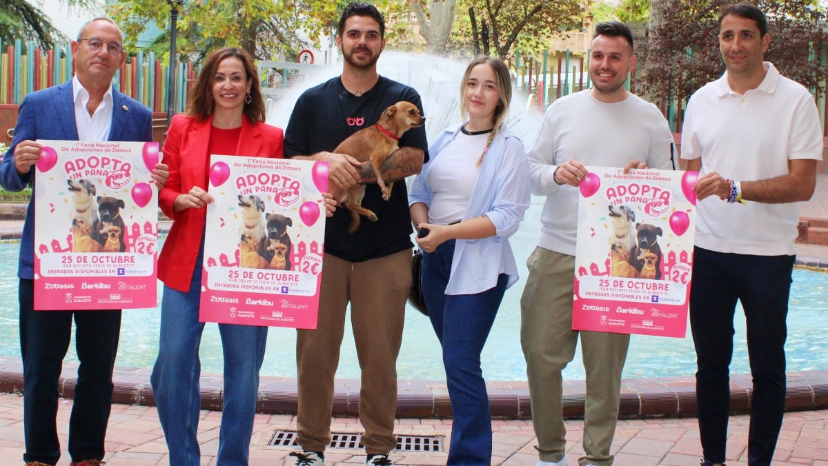 La concejala de Medio Ambiente, Rosa González de la Aleja, el diputado provincial, Daniel Sancha, y los representantes de Zooasis, Juan Manuel Jimeno, y de 23 Talent, Jorge Utiel, han presentado esta mañana la I Feria Nacional de Adopciones que acogerá nuestra ciudad el próximo 25 de este mes, de 11:00 a 22:00 horas, en las instalaciones de la Institución Ferial de Albacete, IFAB.