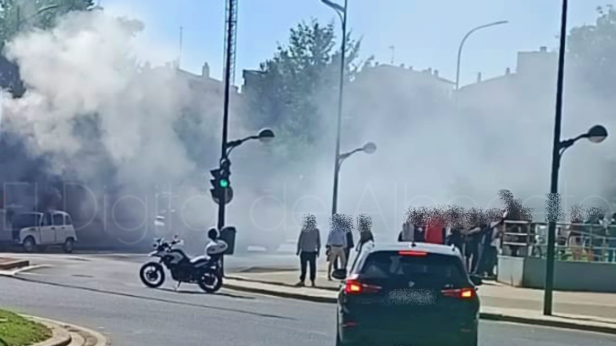 En torno a las 12.00 horas de este martes, una tremenda humareda ha inundado parte de la Circunvalación en la zona de su confluencia con la calle Rosario y la Carretera de Peñas de San Pedro, obligando a la intervención de los bomberos y de la Policía Local de Albacete.