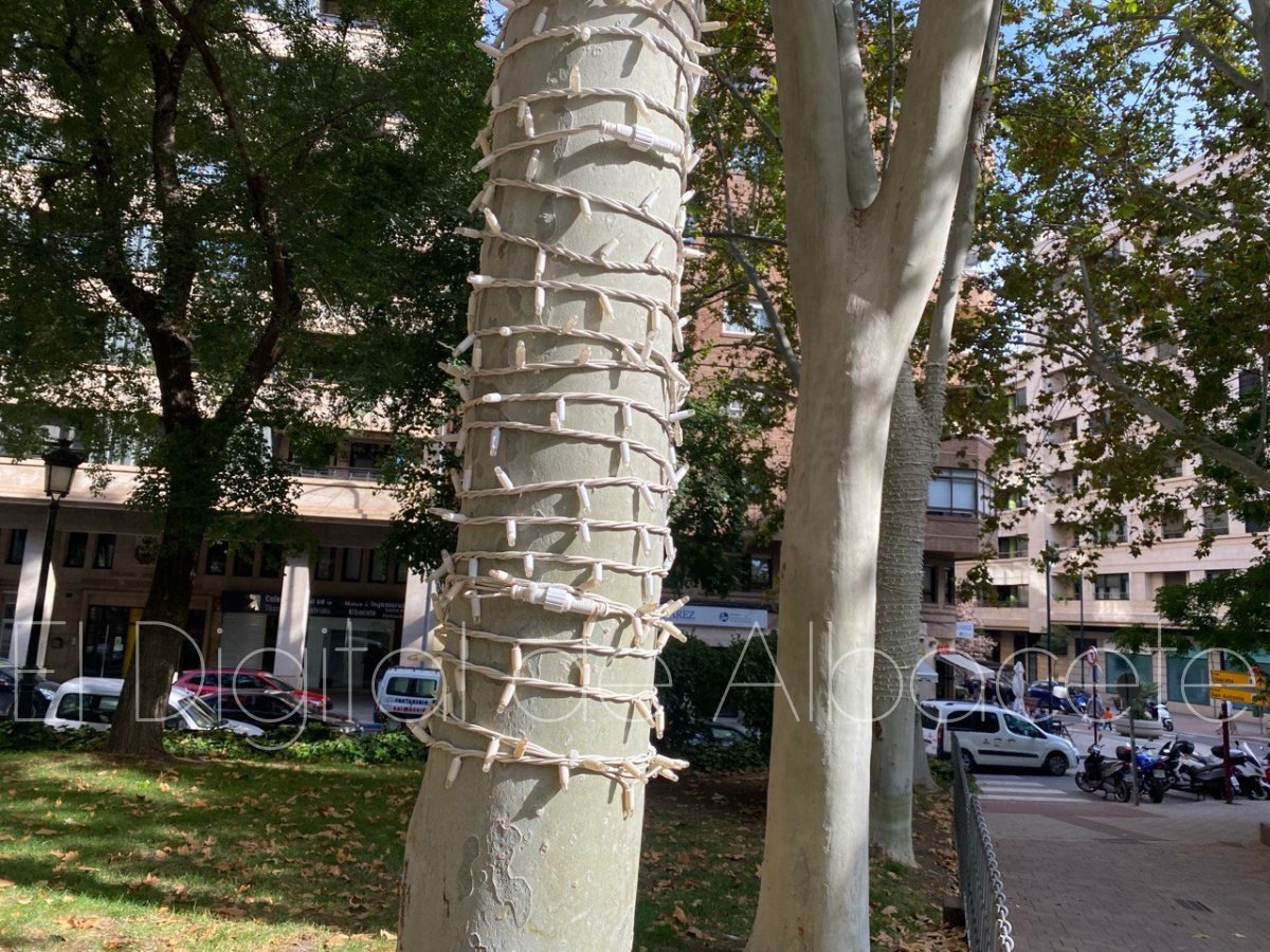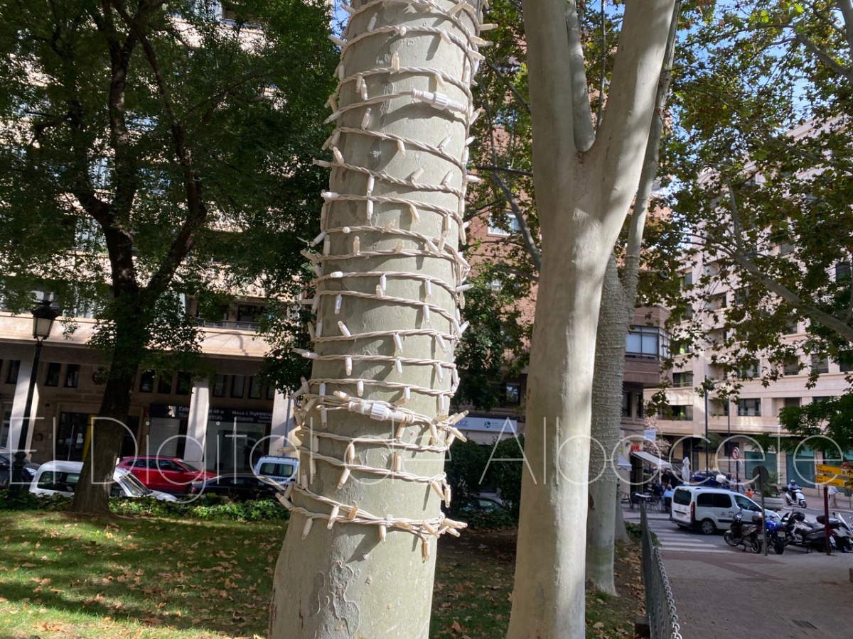 Así, la ciudad ha comenzado a engalanarse de cara a Navidad, y los operarios han iniciado a colocar e instalar las luces en los árboles de la zona verde situada frente al Ayuntamiento de Albacete.