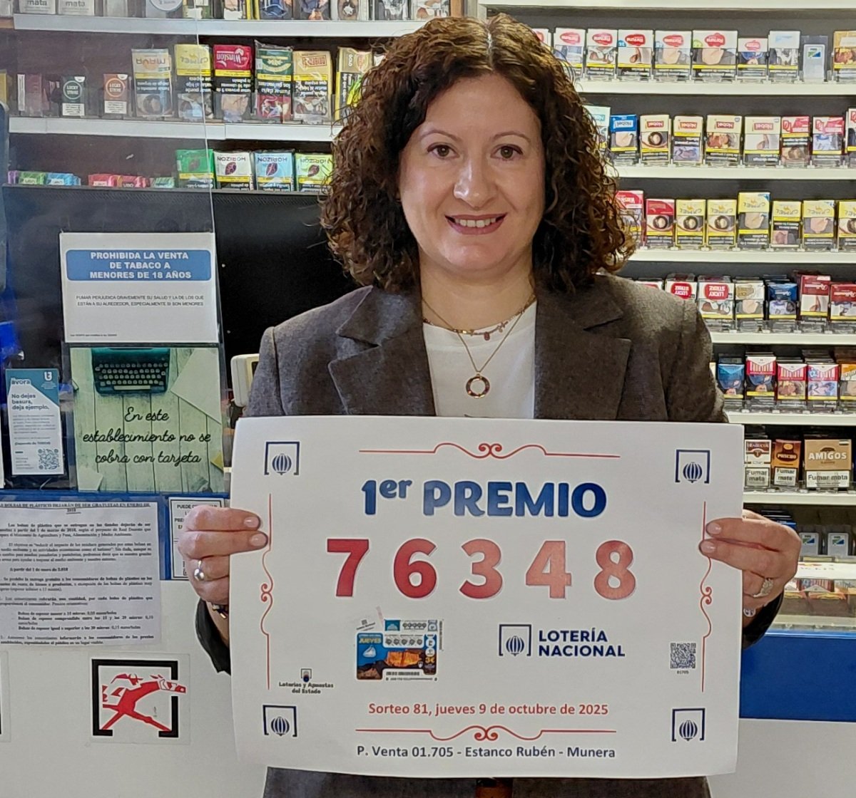 Así las cosas, Munera (Albacete) ha resultado agraciada en el Sorteo de la Lotería Nacional n.º 81, celebrado ayer, jueves 9 de octubre de 2025. El Primer Premio correspondió al número 76.348, y uno de los boletos ganadores fue sellado en el Punto de Venta 01.705, situado en c/ Pozo n.º 56 de esta localidad de Albacete.