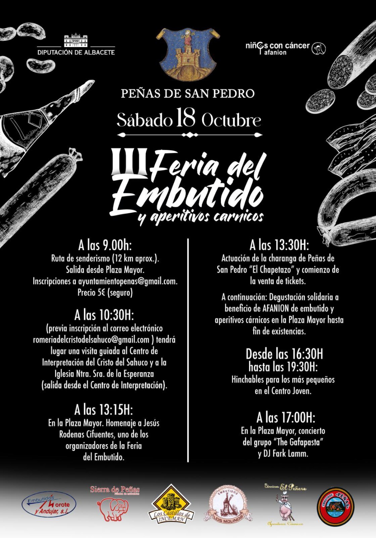 La III Feria del Embutido y Aperitivos Cárnicos de Peñas de San Pedro se celebrará el sábado, 18 de octubre, volviendo a reunir en este pueblo albaceteño a miles de personas para degustar estos productos elaborados por las empresas radicadas en la localidad. Pero además, de dar visibilidad a estos embutidos con sello propio, esta cita tiene un fin solidario, y es que, todo lo recaudado irá destinado a la Asociación de Familias de Niños con Cáncer (AFANION).
