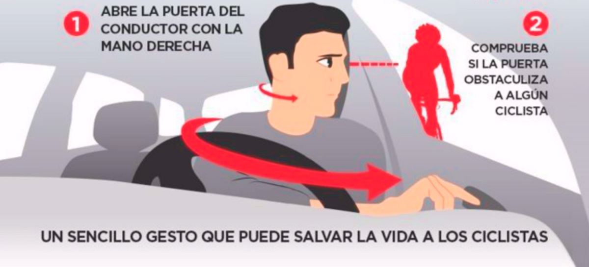 Una forma sencilla y eficaz de reducir este tipo de accidentes —conocidos como dooring— es practicar la maniobra holandesa al abrir las puertas de los vehículos estacionados. Consiste en: