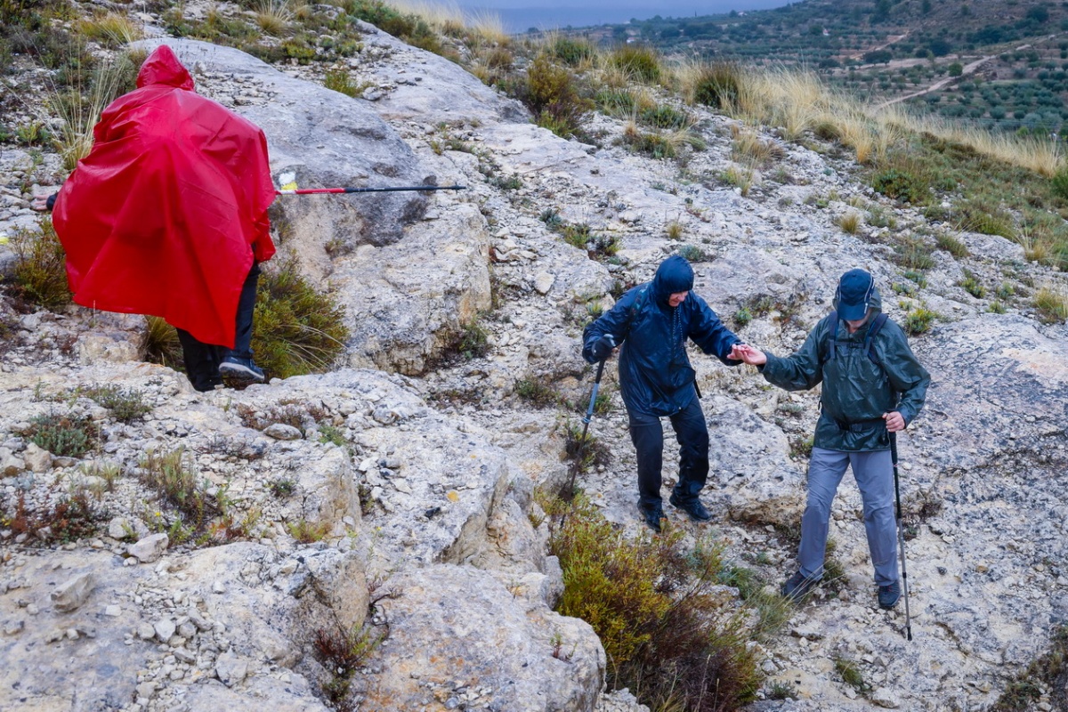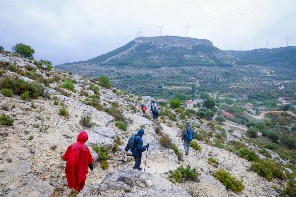 Lloviznaba a su llegada a Carcelén, lo que obligo a modificar el trayecto, para poder realizarlo de una manera más segura, acortando un poco el recorrido. Realizaron parte de la ruta Cueva de los Collaos-Barranco del Molino. Carcelén, municipio a 920 metros de altitud, enclavado en un valle entre dos montañas denominadas “Muelas” (Peña Blanca y Peña Negra), recorrerían una de ellas, la blanca.