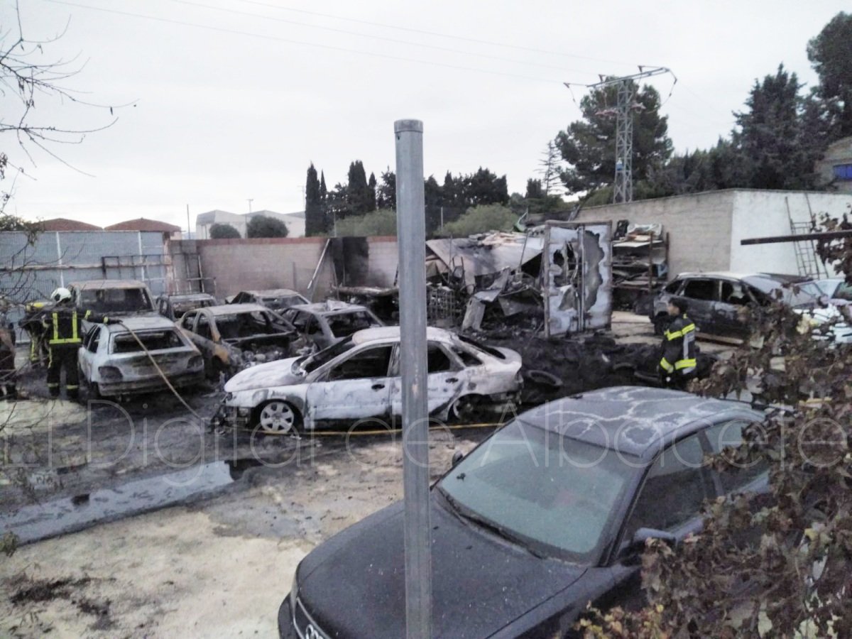 El aviso se recibió a las 5:28 horas. El fuego se inició en la parte trasera del taller, en el exterior, y destruyó por completo el parque de vehículos y el material almacenado en el patio. Efectivos del SEPEI del Parque de Bomberos de Almansa se desplazaron de inmediato y evitaron la propagación a la nave principal del taller y a los chalets próximos. El incendio quedó extinguido a las 9:30 horas.