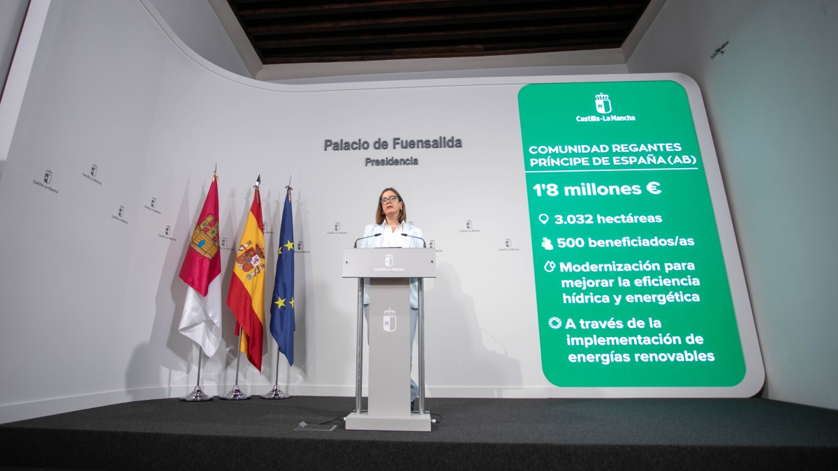 El Consejo de Gobierno ha aprobado, en su última reunión, una subvención de 1,8 millones de euros a la Comunidad de Regantes Príncipe de España, en Albacete, para modernizar sus 3.032 hectáreas de regadío.