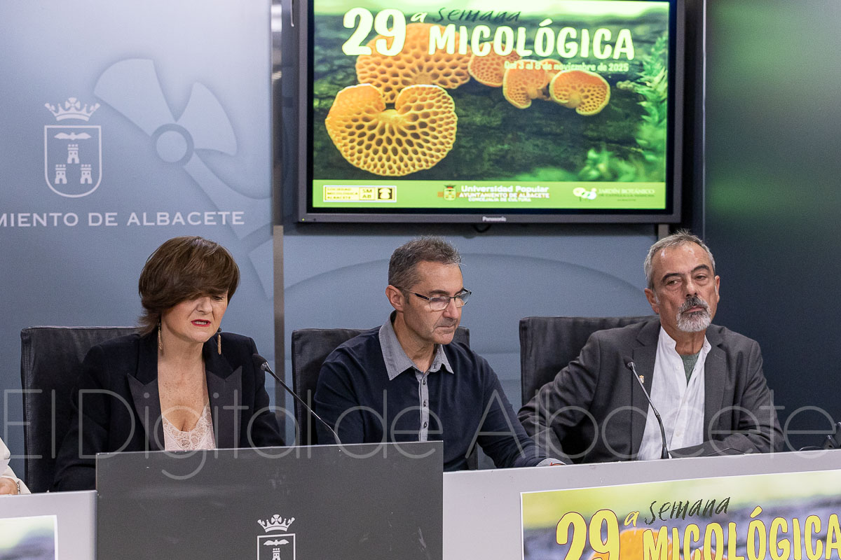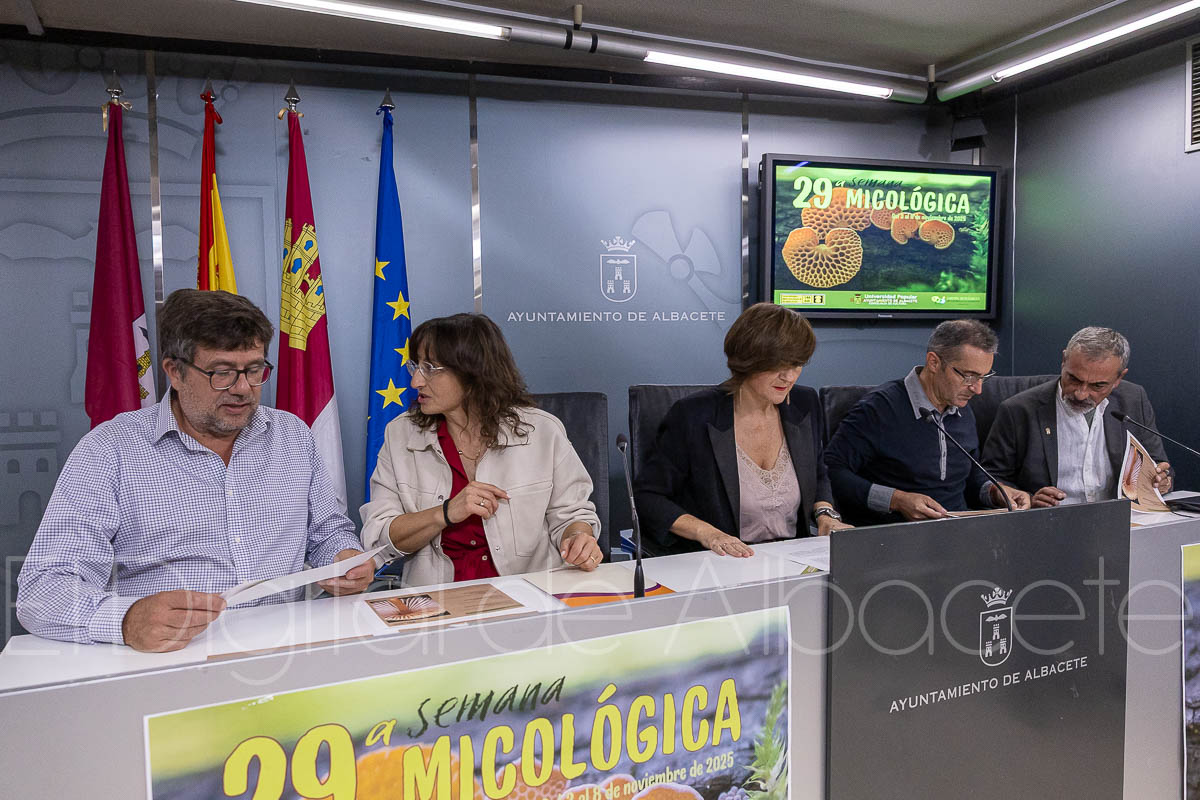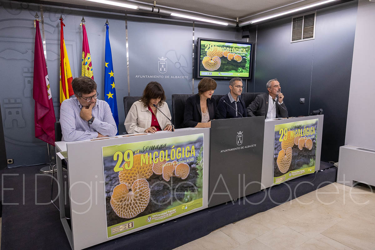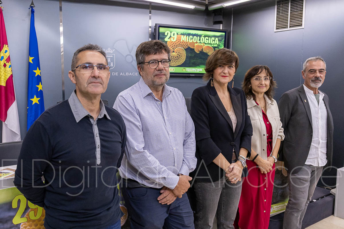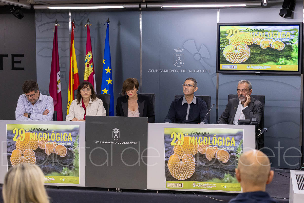 La concejala de Cultura, Elena Serrallé, ha presentado la 29ª Semana Micológica de la Universidad Popular, que se celebrará del 3 al 8 de noviembre, junto a la directora de la UP, María José Jiménez; el director del Jardín Botánico, Pablo Ferrandis; José Fajardo, profesor del Aula de la Naturaleza de la UP; y José García, presidente de la Sociedad Micológica de Albacete.