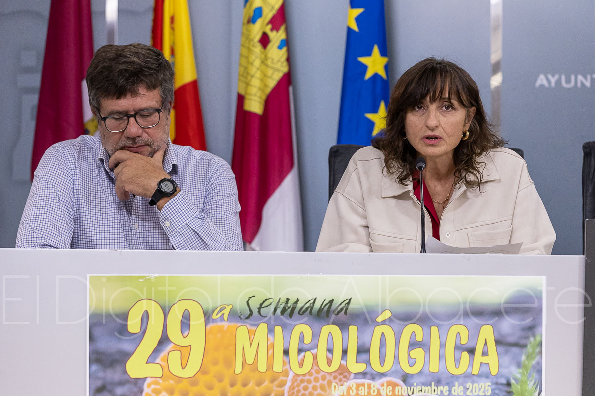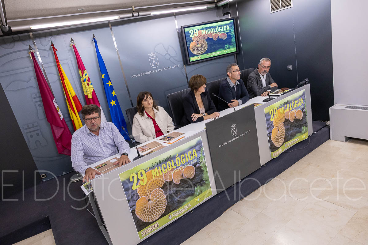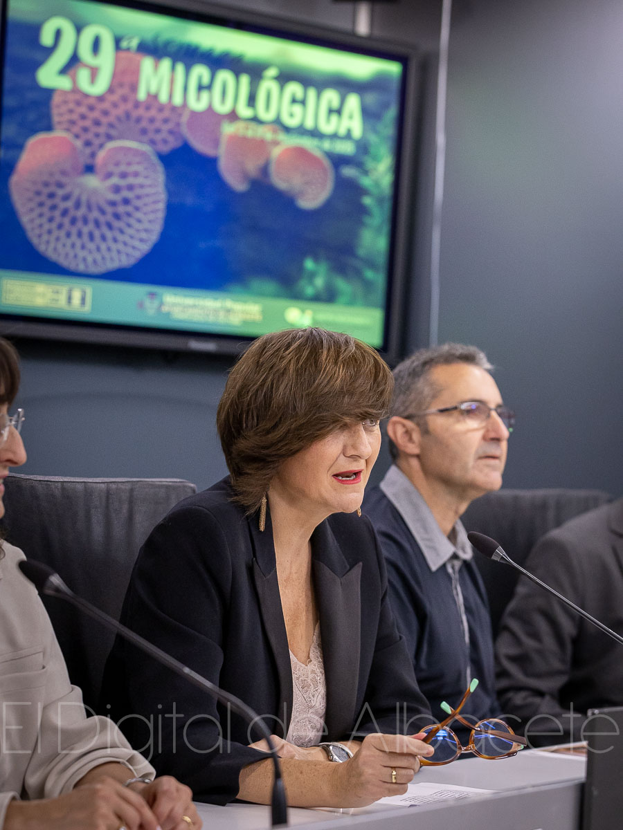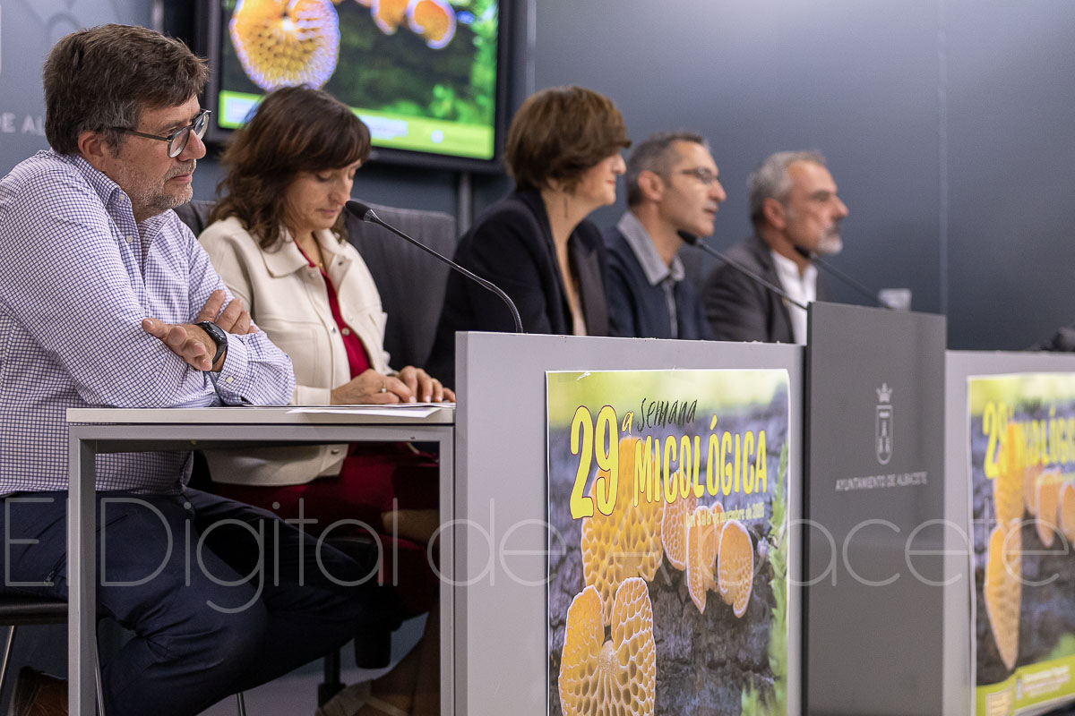 La concejala de Cultura, Elena Serrallé, ha presentado la 29ª Semana Micológica de la Universidad Popular, que se celebrará del 3 al 8 de noviembre, junto a la directora de la UP, María José Jiménez; el director del Jardín Botánico, Pablo Ferrandis; José Fajardo, profesor del Aula de la Naturaleza de la UP; y José García, presidente de la Sociedad Micológica de Albacete.