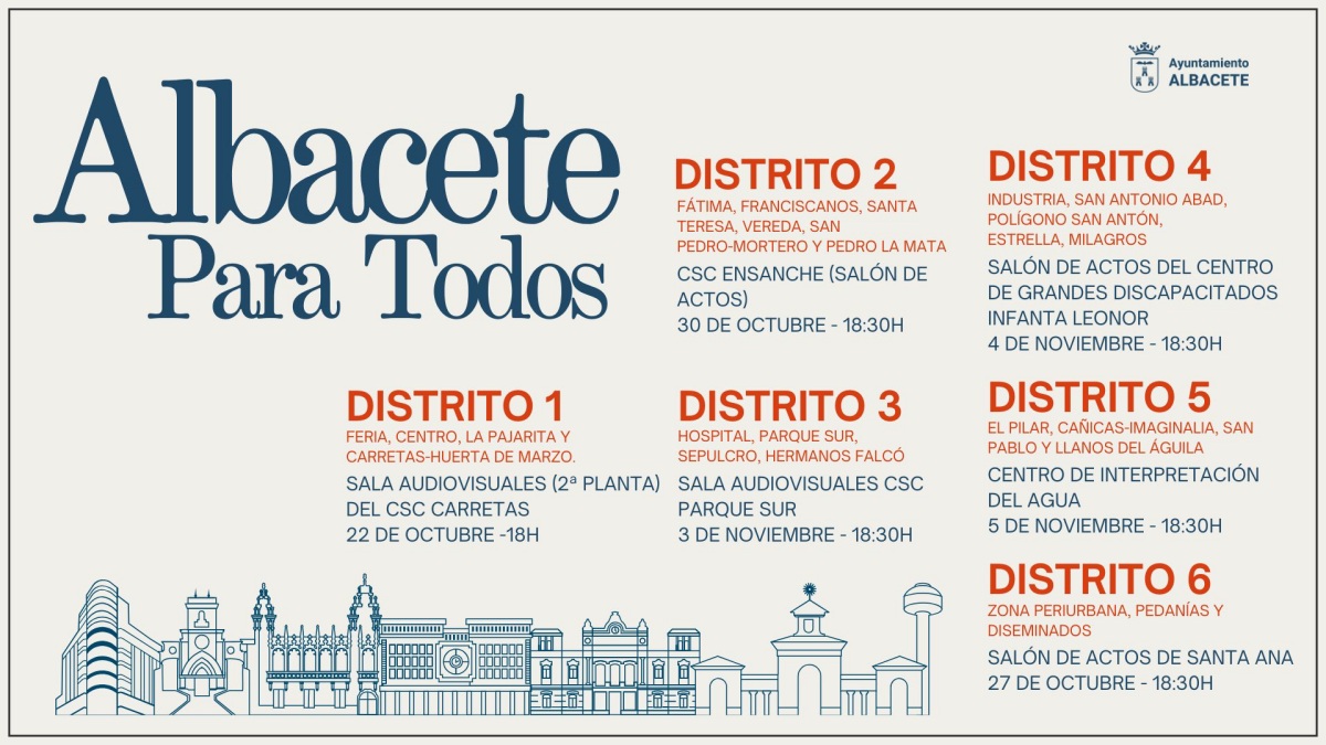 Las propuestas que se recojan en estas asambleas servirán para la elaboración de los presupuestos municipales y toda la acción del equipo de gobierno, y ha incidido además en que “siempre contamos con la Fava, con las asociaciones de vecinos, con las asociaciones sociosanitarias y con el resto del tejido asociativo de Albacete que nos sirve correa de transmisión del sentir ciudadano. Estas asambleas deben servirnos para que el contacto personal mejore la participación, y así conseguir una ciudad que tenga más y mejores oportunidades de trabajo y crecimiento personal, una ciudad más igualitaria y comprometida, cómoda y agradable, haciendo compatibles los grandes proyectos de ciudad con los pequeños asuntos cotidianos que marcan el día a día”.