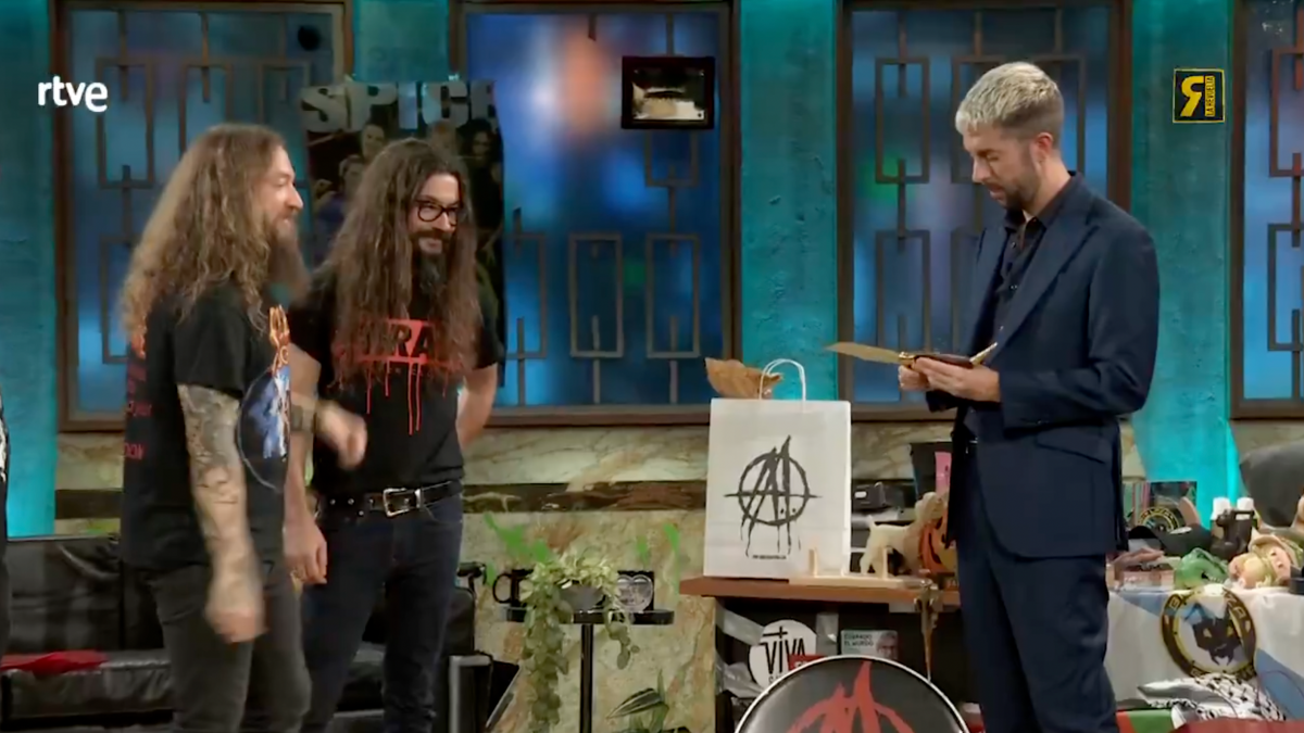 “No se puede ser más metalero”, subrayaba Broncano tras este nuevo descubrimiento sobre las raíces de los componentes de Angelus Apatrida. Pero la cosa no quedaba ahí, y los albaceteños recordaban al presentador una tradición que cumplía a rajatabla y es que “se dice que las navajas no se regalan, sino que se tiene que dar algo simbólico a cambio porque si no corta la amistad”, sacando del bolsillo Broncano una moneda para entregarla a cambio de este regalo tan albaceteño.
