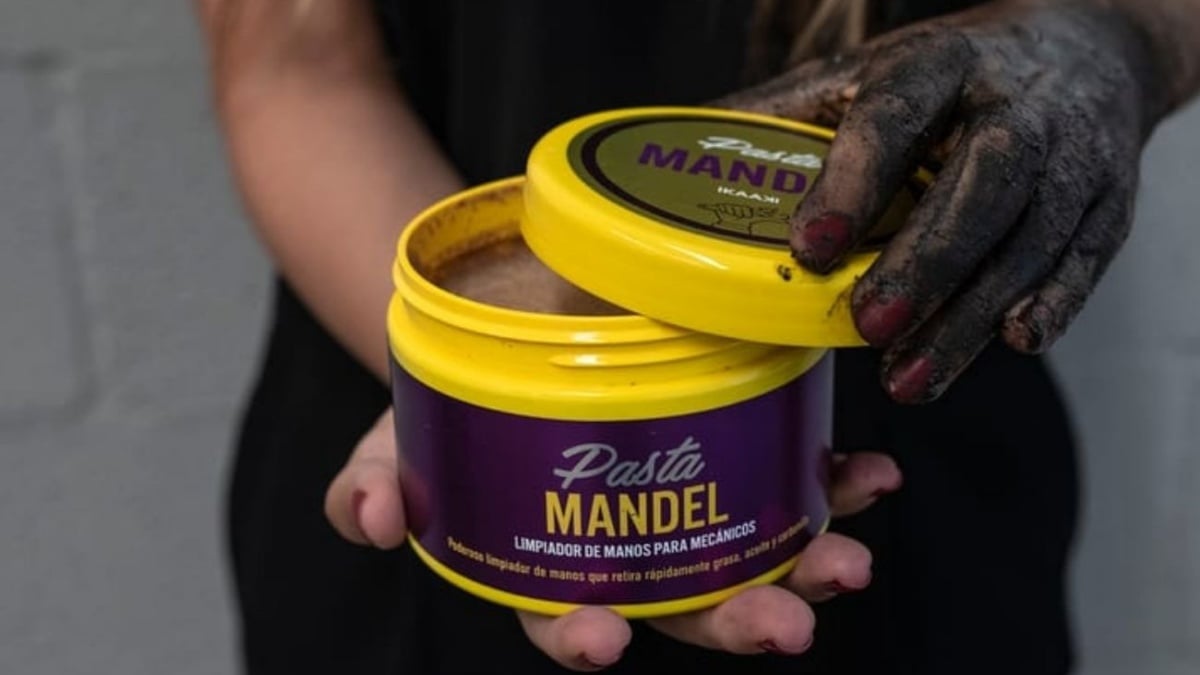 La Pasta Mandel se presenta como un limpiador eficaz para eliminar grasa, aceite y carbonilla, gracias a su fórmula con cáscara de almendra del Mediterráneo Ibérico, tensoactivos y jabones, y se promociona como apta para «cualquier trabajo donde se manchen las manos».