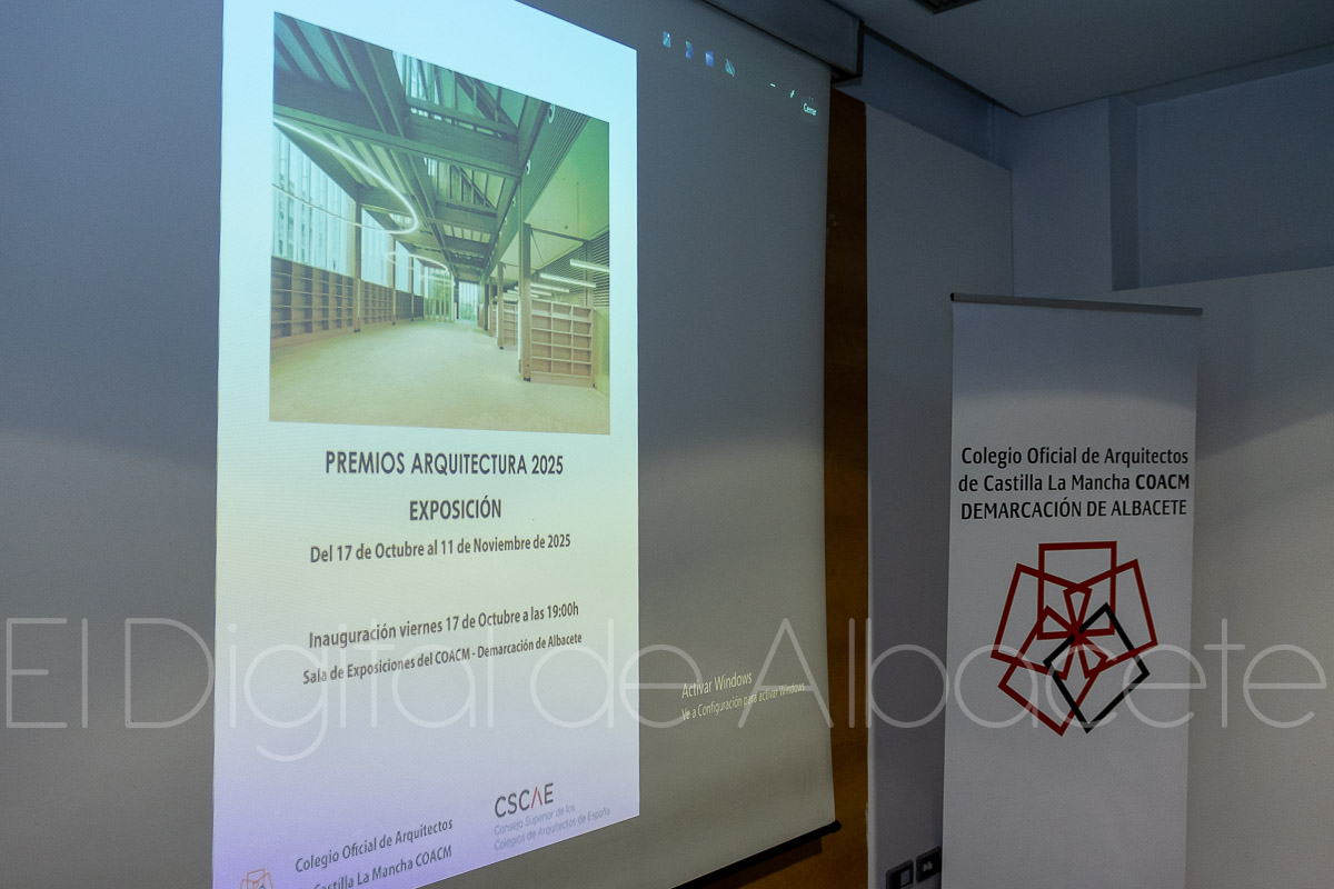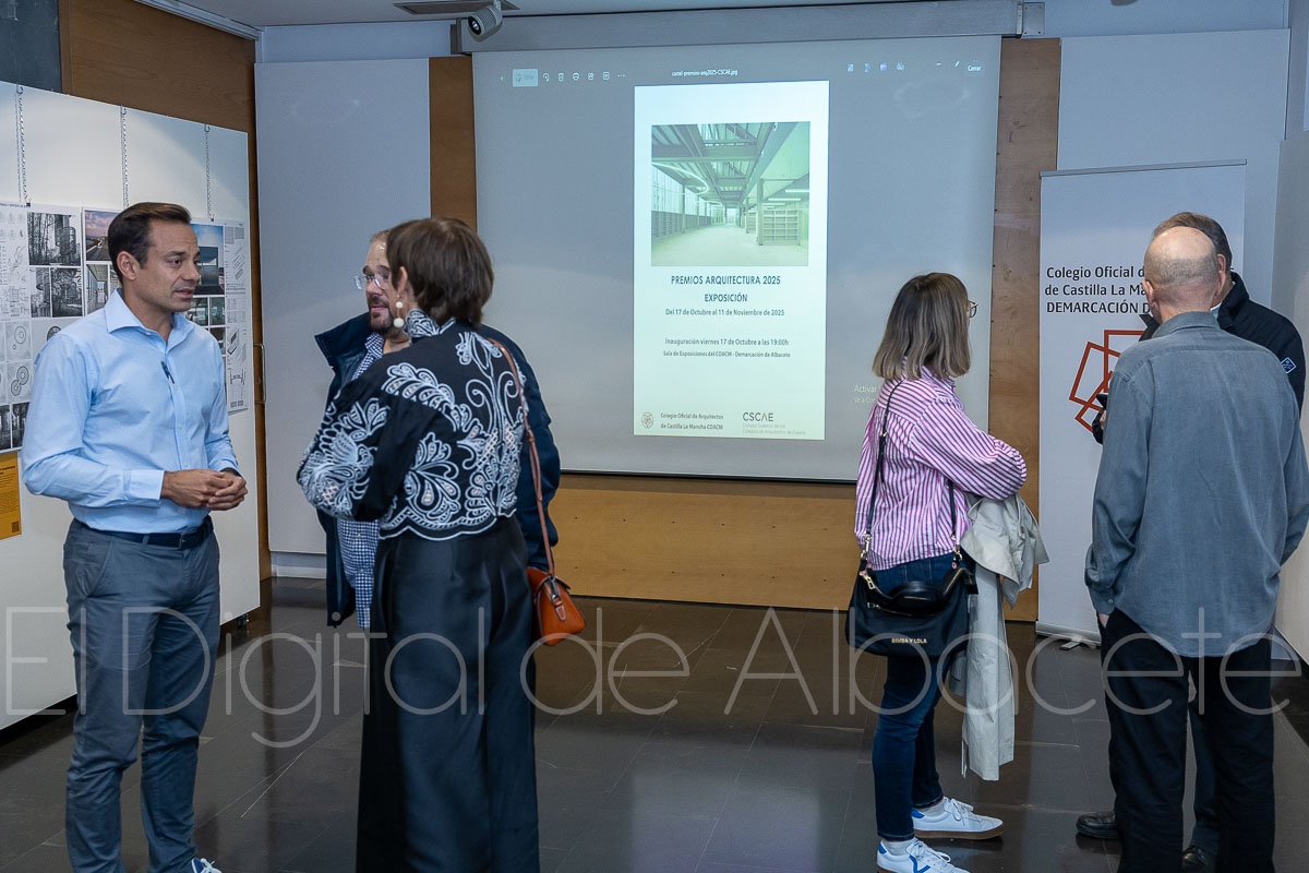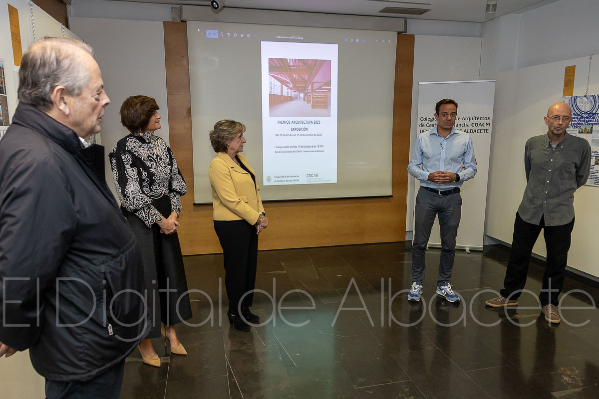 La Demarcación albaceteña del Colegio de Arquitectos de Castilla-La Mancha inauguró el viernes, 17 de octubre, la exposición “Premios de Arquitectura 2025” en su sede de calle Martínez Villena, 7. La muestra, que puede visitarse hasta el 13 de noviembre, reúne las obras finalistas de los galardones del Consejo Superior de los Colegios de Arquitectos de España (CSCAE) y se completa con material audiovisual —una serie de vídeos que amplían la información de los paneles—.