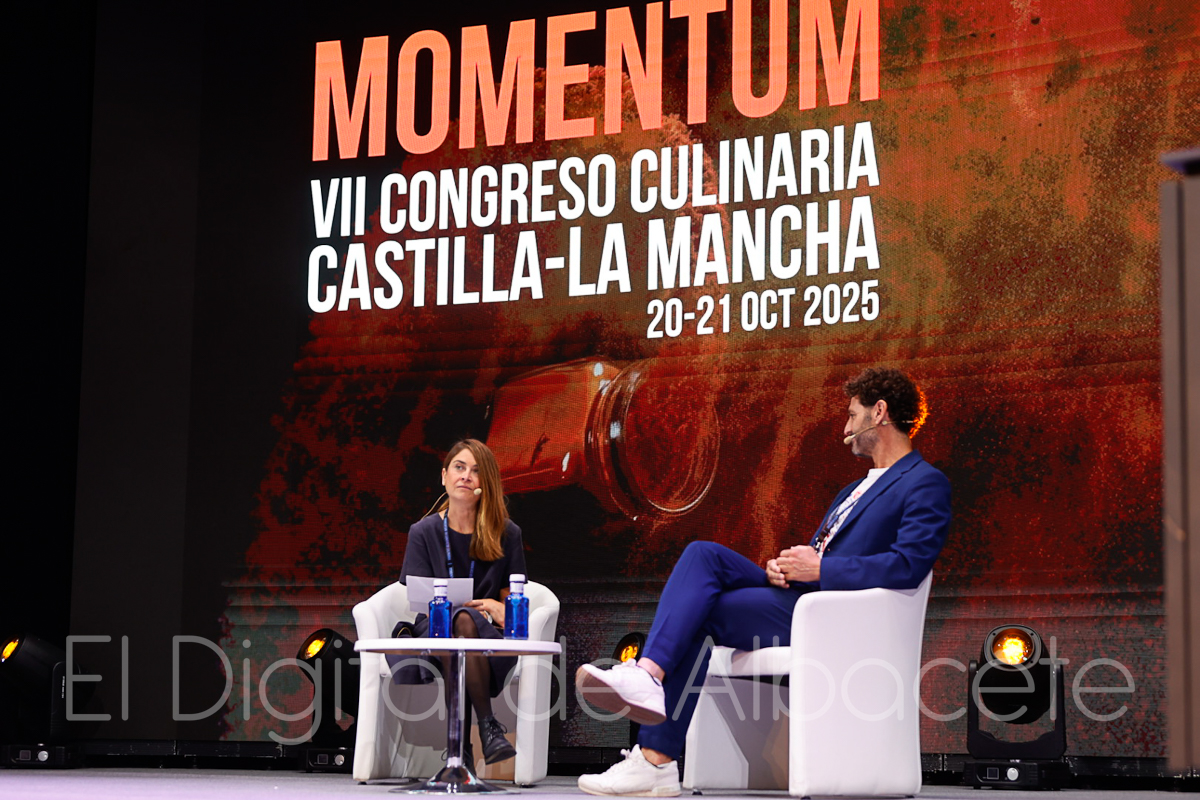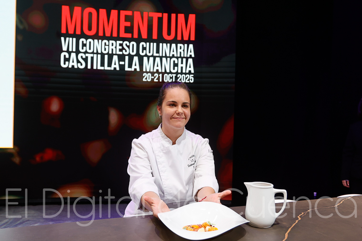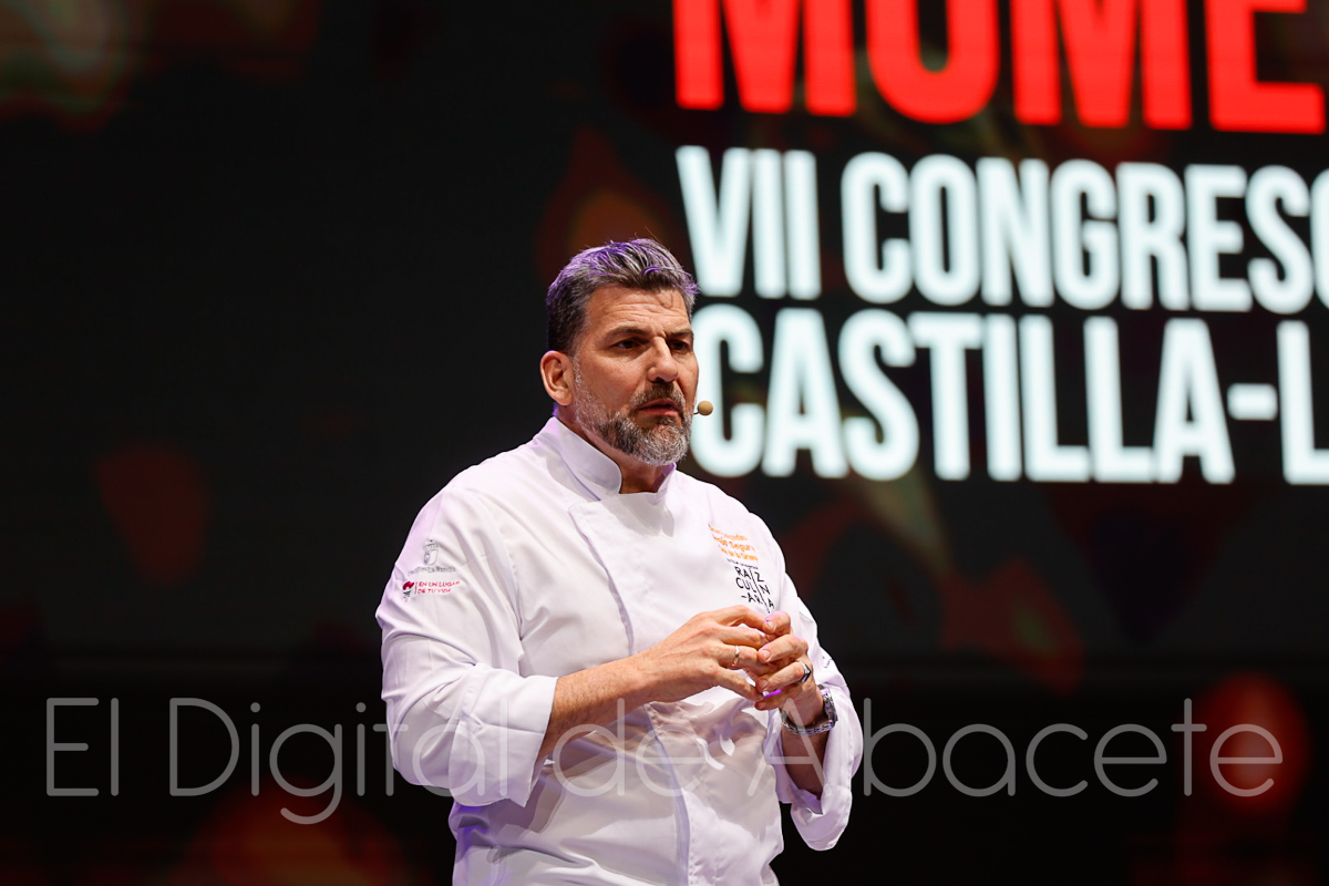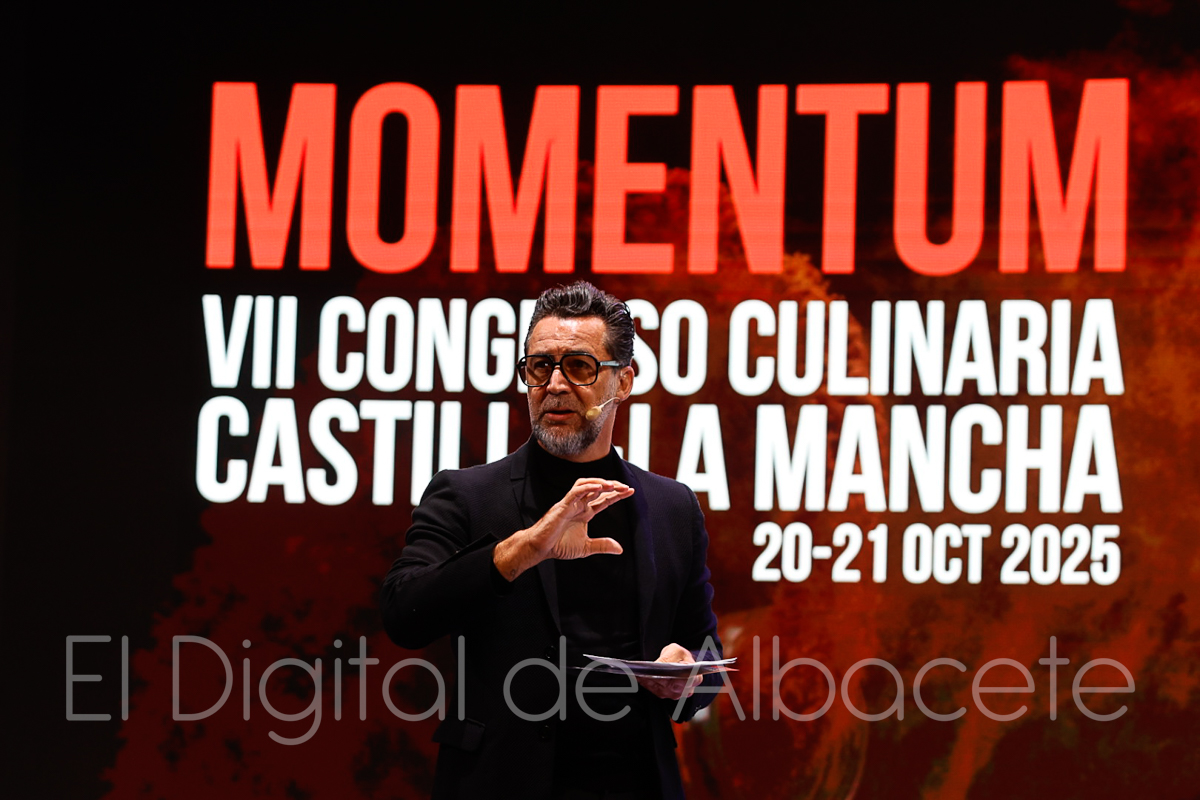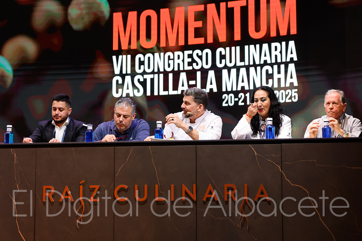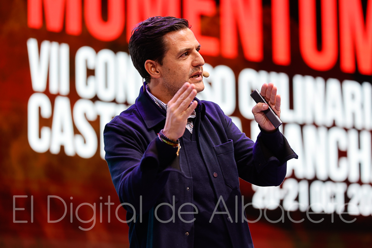 El Congreso ‘Culinaria Castilla-La Mancha’ que ha comenzado este lunes en Cuenca no solo ha congregado importantes cocineros de la región, sino también excelentes chefs de fuera del mapa castellanomanchego y que son un auténtico motor para los de la casa. Después de la entrega de premios y las presentaciones oficiales llegó el momento de dar voz a los expertos que se hacían un hueco entre los brindis y las celebraciones de reconocidos bodegueros convocados a la cita.