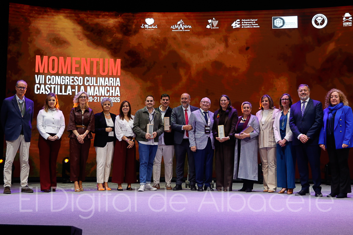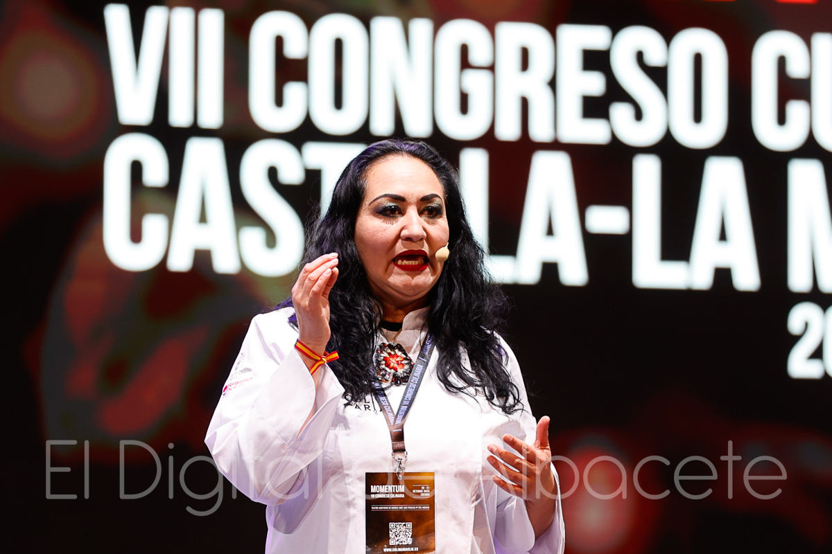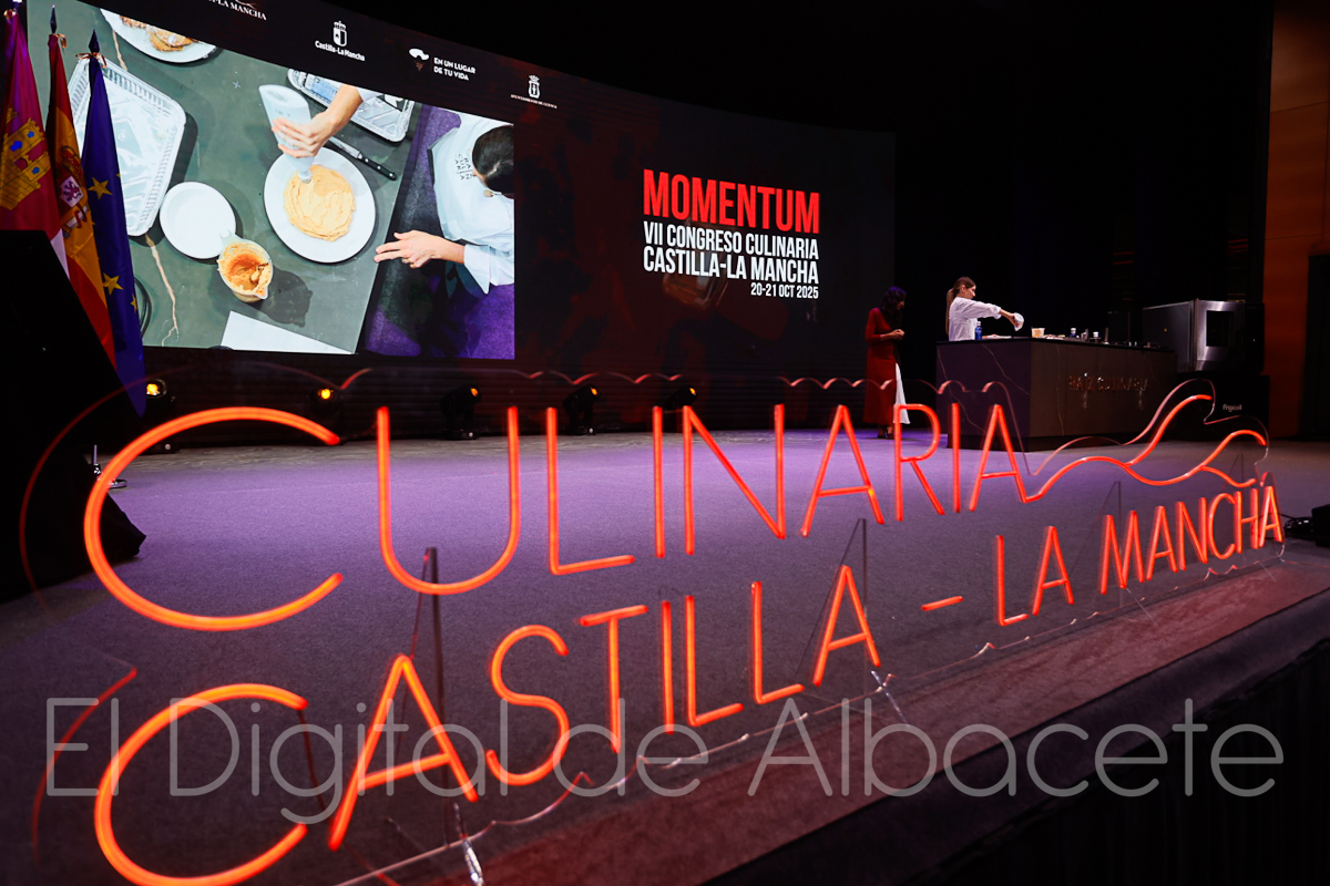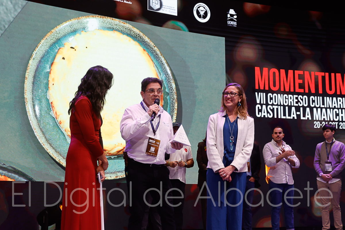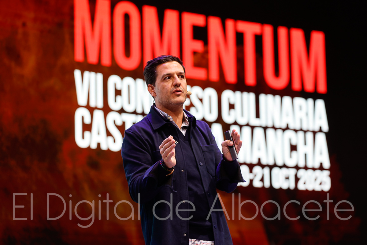 El Congreso ‘Culinaria Castilla-La Mancha’ que ha comenzado este lunes en Cuenca no solo ha congregado importantes cocineros de la región, sino también excelentes chefs de fuera del mapa castellanomanchego y que son un auténtico motor para los de la casa. Después de la entrega de premios y las presentaciones oficiales llegó el momento de dar voz a los expertos que se hacían un hueco entre los brindis y las celebraciones de reconocidos bodegueros convocados a la cita.