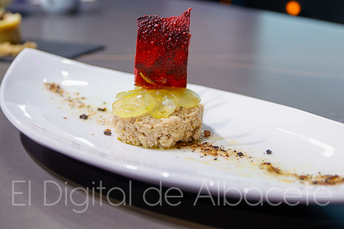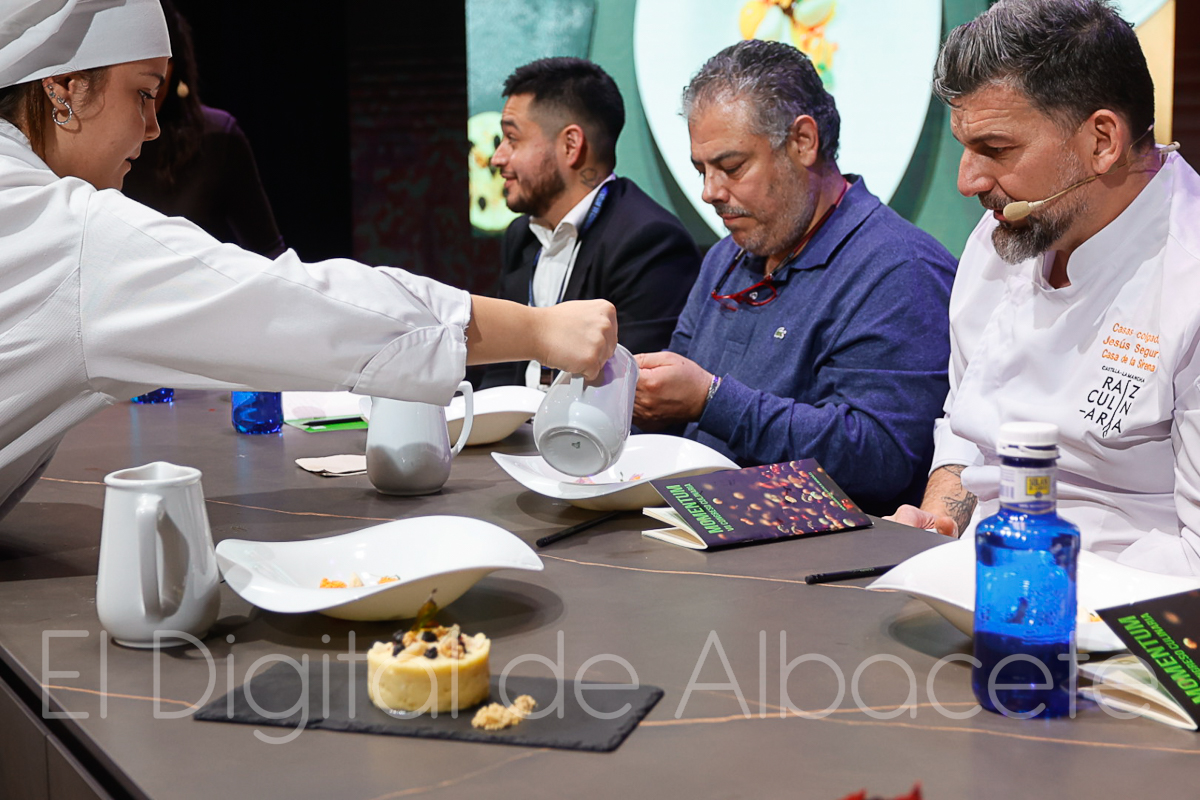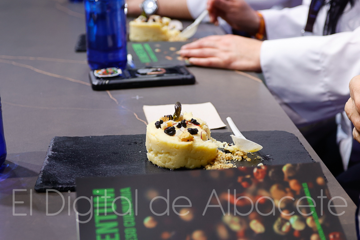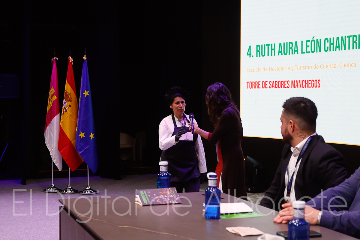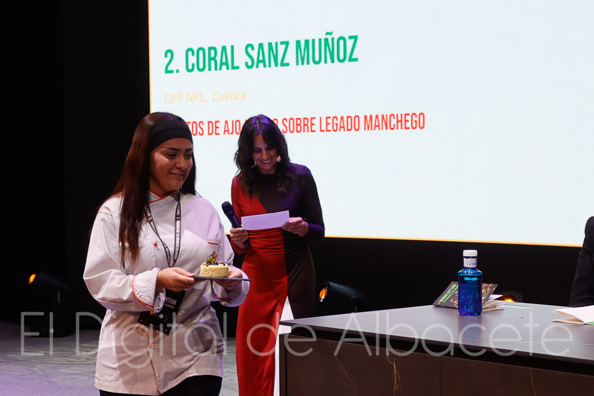 Se presentaron Axel Marcos Hernández con una perdiz escabechada de forma tradicional con tierra de setas y uva osmotizada; Coral Sanz Muñoz desde Tarancón quien elaboró unos puntos de ajo negro sobre legado manchego, ajo arriero de raíz humilde como lo preparaba su abuela; Cristina Cano de la Universidad Laboral de Toledo que hizo un homenaje al ajo morado de Las Pedroñeras con una sopa que comía en casa de sus abuelos; y Ruth Aura León de la Escuela de Hostelería y Turismo de Cuenca que presentó una torre de sabores manchegos, incluyendo también el ajo morado.