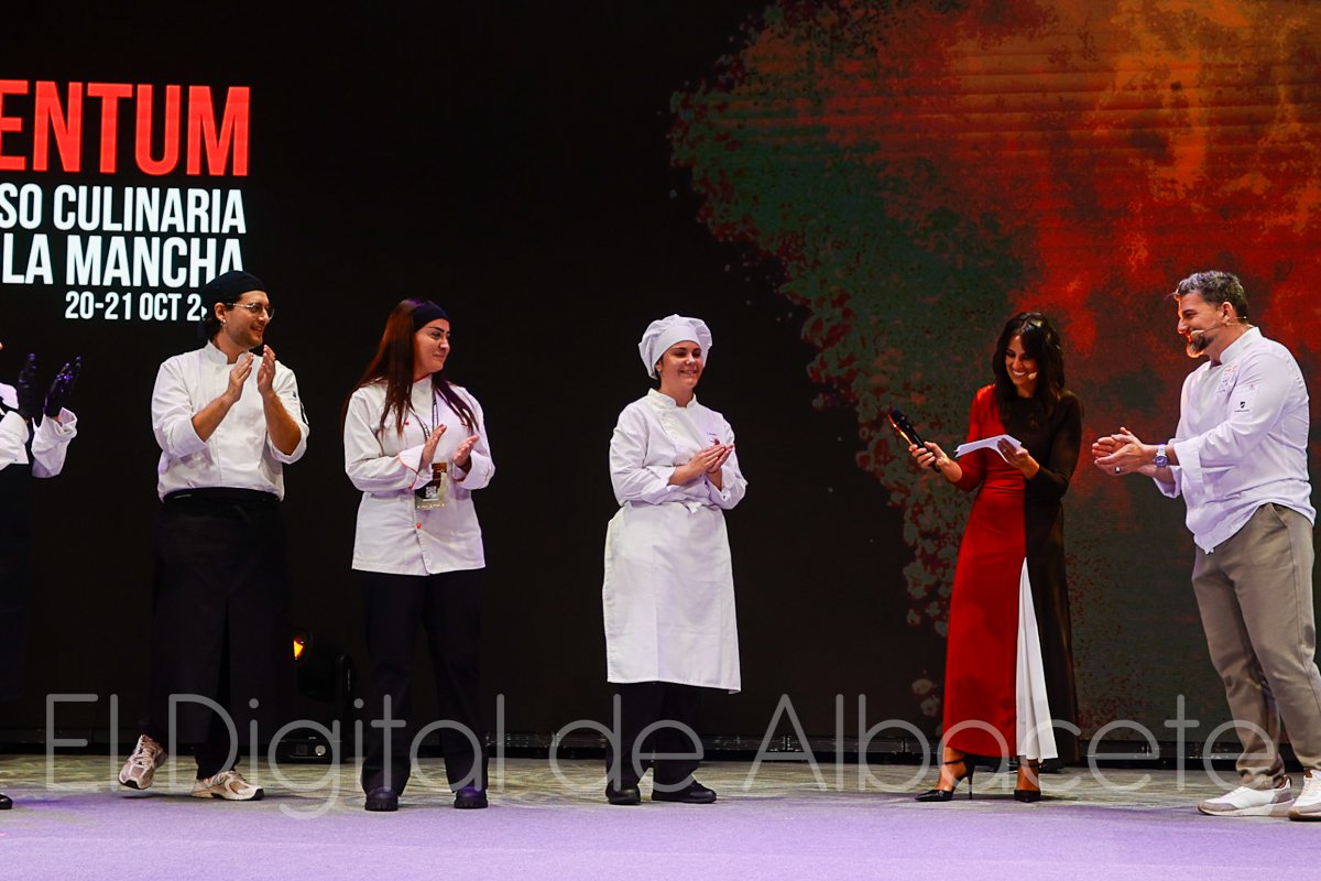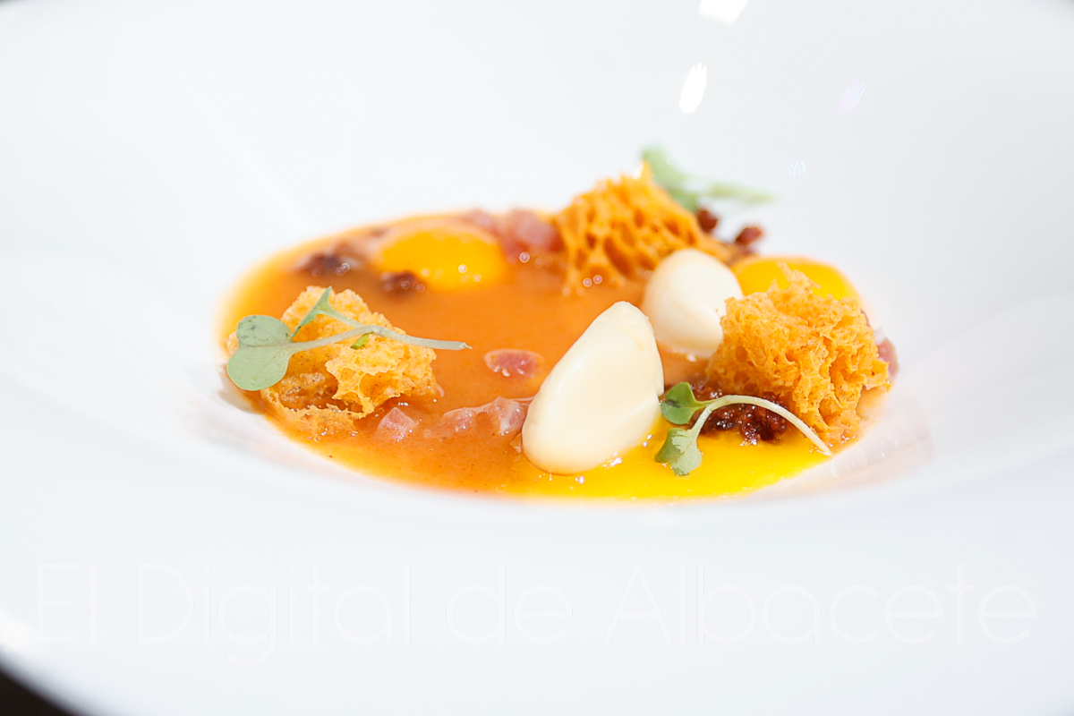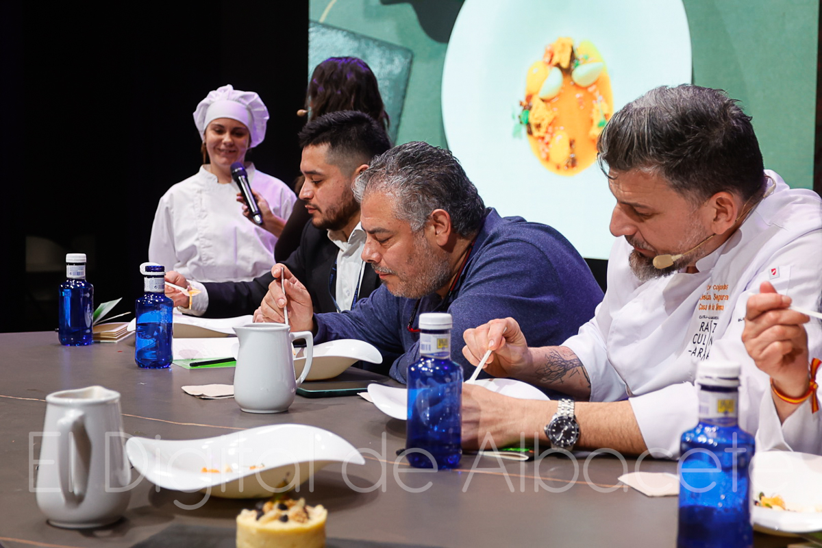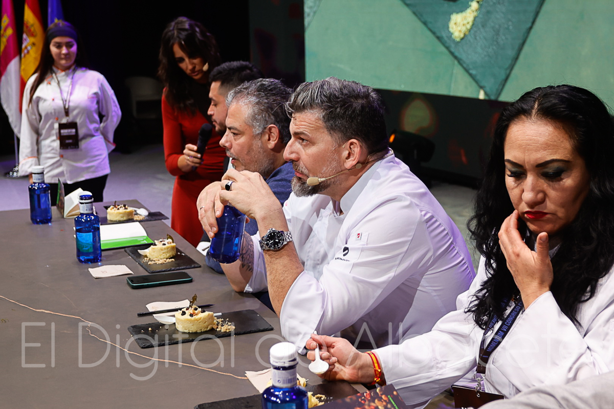 Se presentaron Axel Marcos Hernández con una perdiz escabechada de forma tradicional con tierra de setas y uva osmotizada; Coral Sanz Muñoz desde Tarancón quien elaboró unos puntos de ajo negro sobre legado manchego, ajo arriero de raíz humilde como lo preparaba su abuela; Cristina Cano de la Universidad Laboral de Toledo que hizo un homenaje al ajo morado de Las Pedroñeras con una sopa que comía en casa de sus abuelos; y Ruth Aura León de la Escuela de Hostelería y Turismo de Cuenca que presentó una torre de sabores manchegos, incluyendo también el ajo morado.