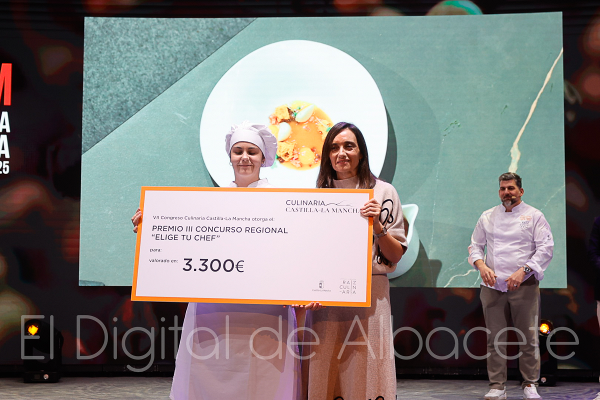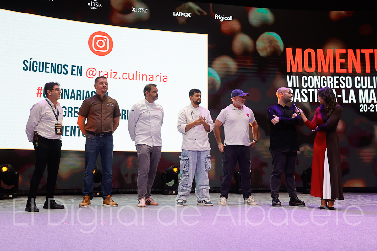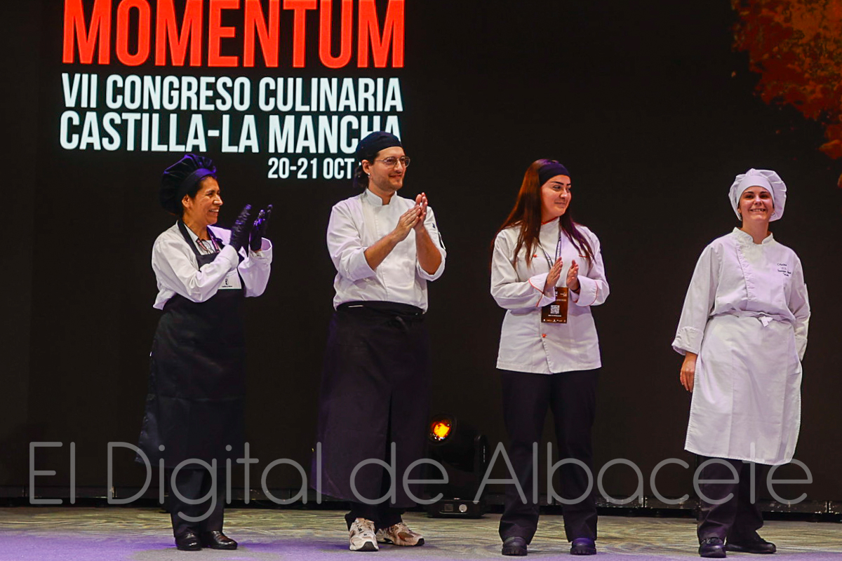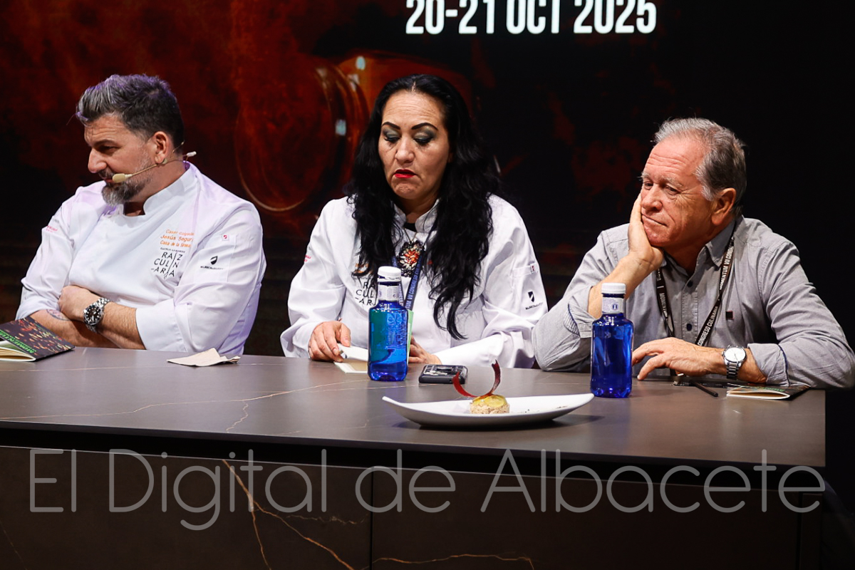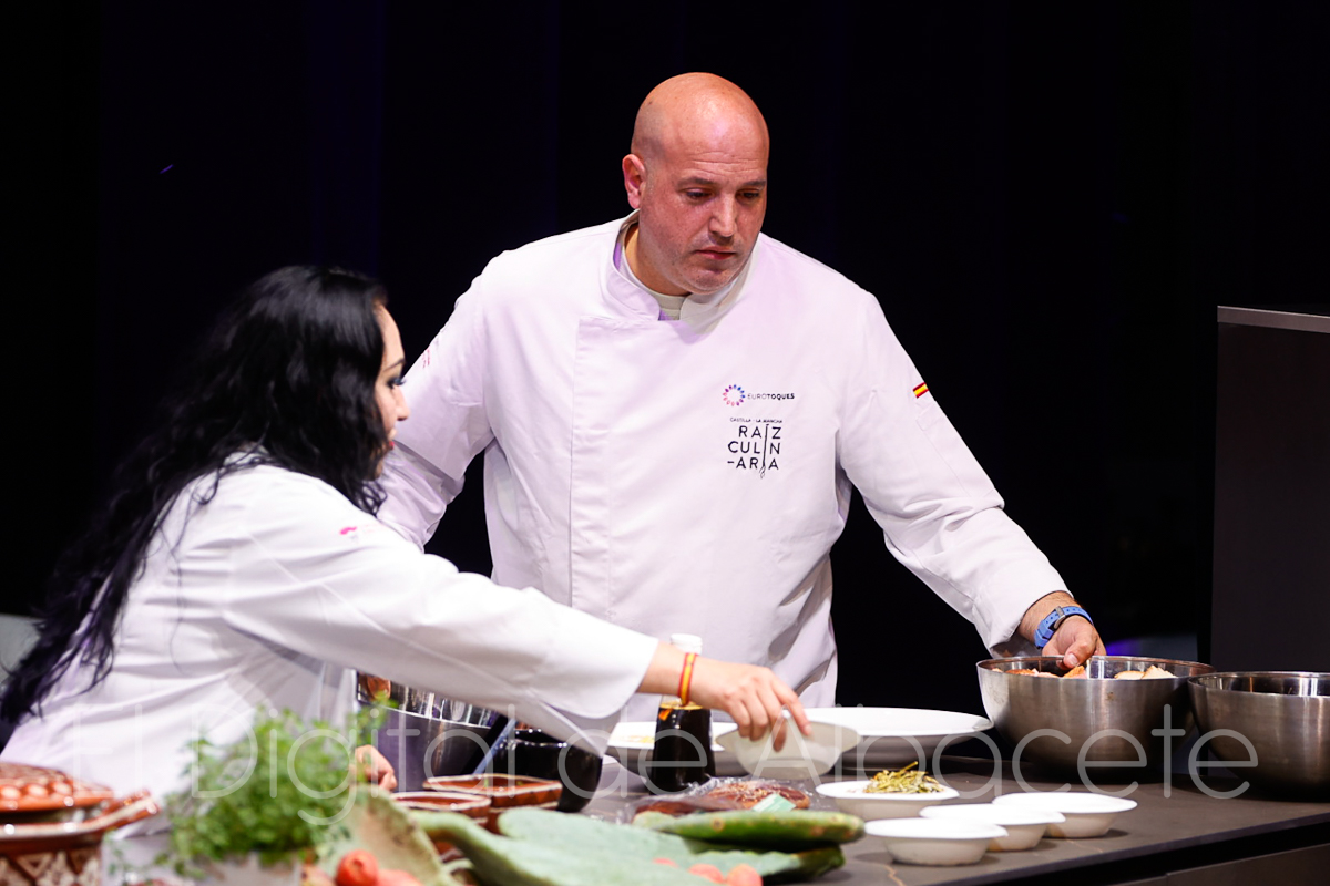 Se presentaron Axel Marcos Hernández con una perdiz escabechada de forma tradicional con tierra de setas y uva osmotizada; Coral Sanz Muñoz desde Tarancón quien elaboró unos puntos de ajo negro sobre legado manchego, ajo arriero de raíz humilde como lo preparaba su abuela; Cristina Cano de la Universidad Laboral de Toledo que hizo un homenaje al ajo morado de Las Pedroñeras con una sopa que comía en casa de sus abuelos; y Ruth Aura León de la Escuela de Hostelería y Turismo de Cuenca que presentó una torre de sabores manchegos, incluyendo también el ajo morado.