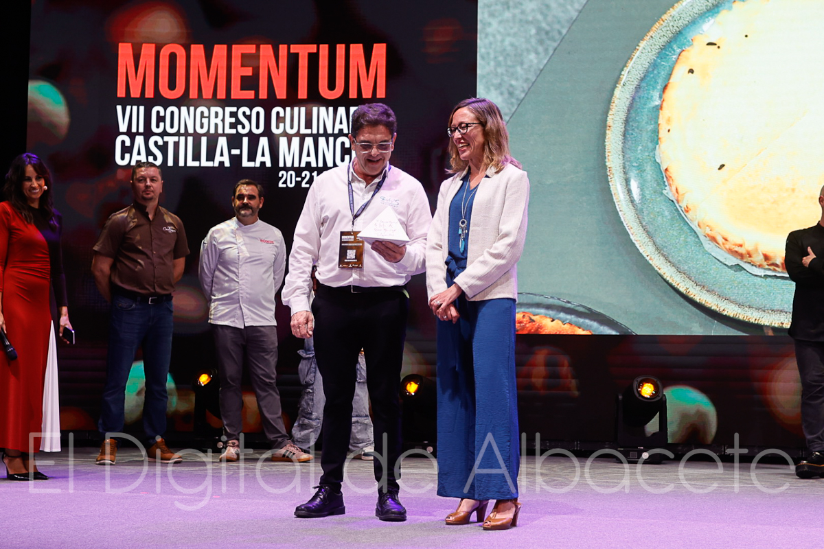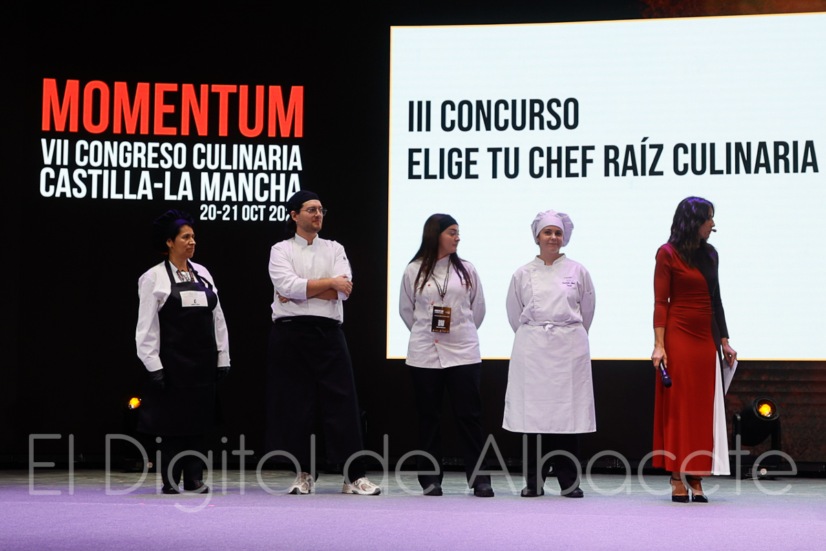 La III Edición del concurso regional “Elige tu Chef” puso el broche de oro a la primera jornada del Congreso Momentum. Los cuatro concursantes presentaron sus platos con productos de la tierra ante la atenta mirada de los cinco miembros del jurado entre los que se ha sentado el propio Jesús Segura, quien reivindicó el “sabor” en los platos para no perder el norte.