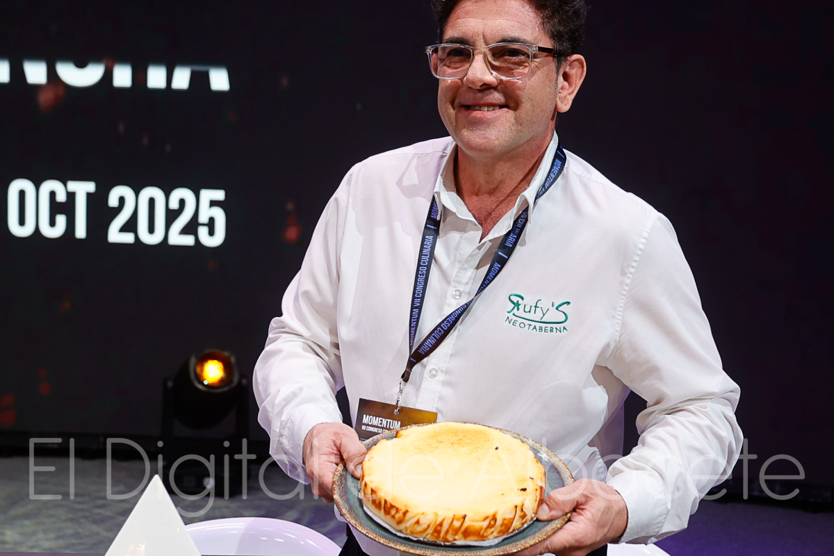 Tras la deliberación se hizo público el ganador a pesar de la dificultad de la decisión. Y el elegido fue Rufino, el que presentó la tarta número 6. “Me he quedado fuera de juego”, expresó emocionado cuando escuchó su nombre, “tenemos una profesión sacrificada, pero muy bonita”. Agradeció al resto de sus compañeros su contribución para visibilizar un producto de la tierra tan singular como este. Posaba con una sonrisa eterna para los fotógrafos y medios de comunicación satisfecho delante de su creación.