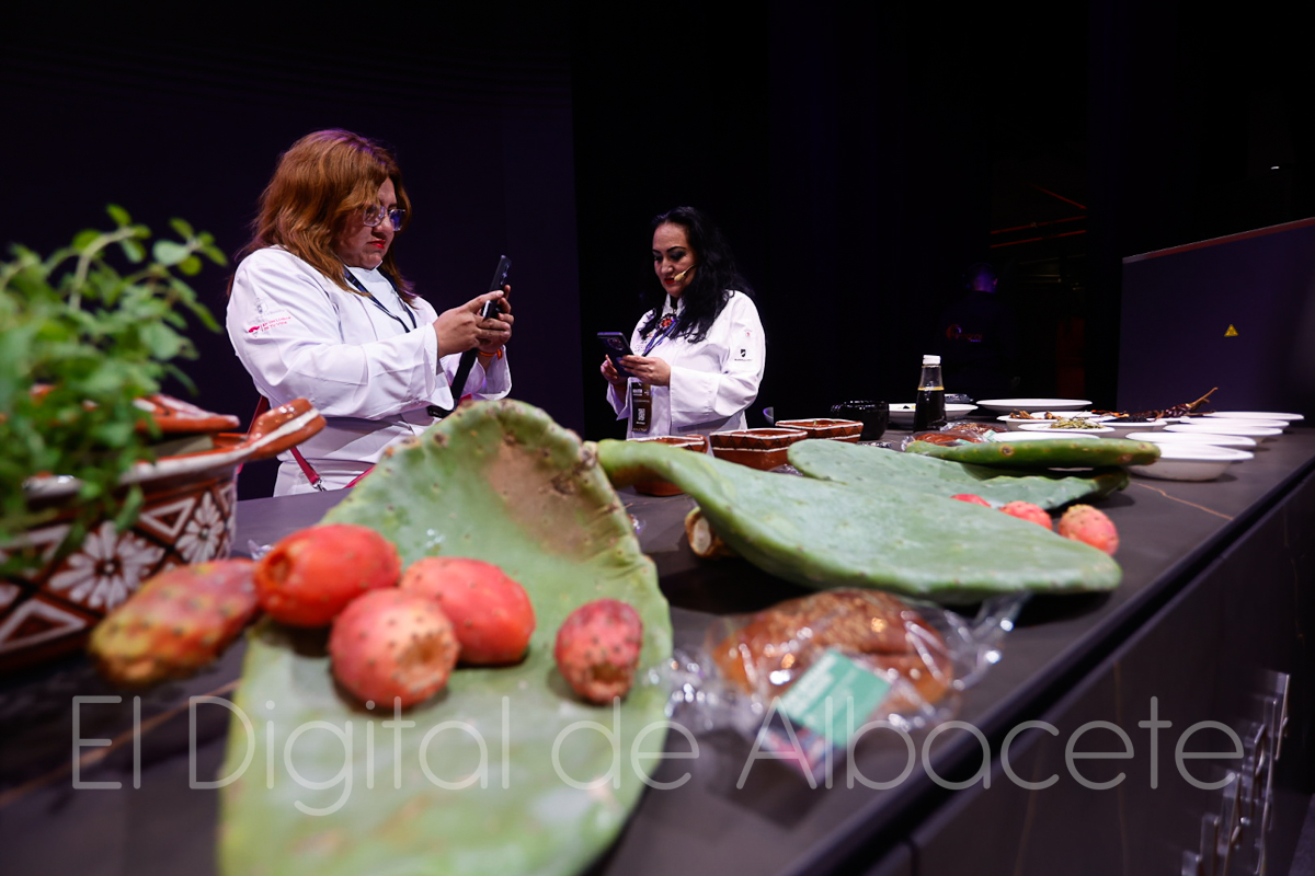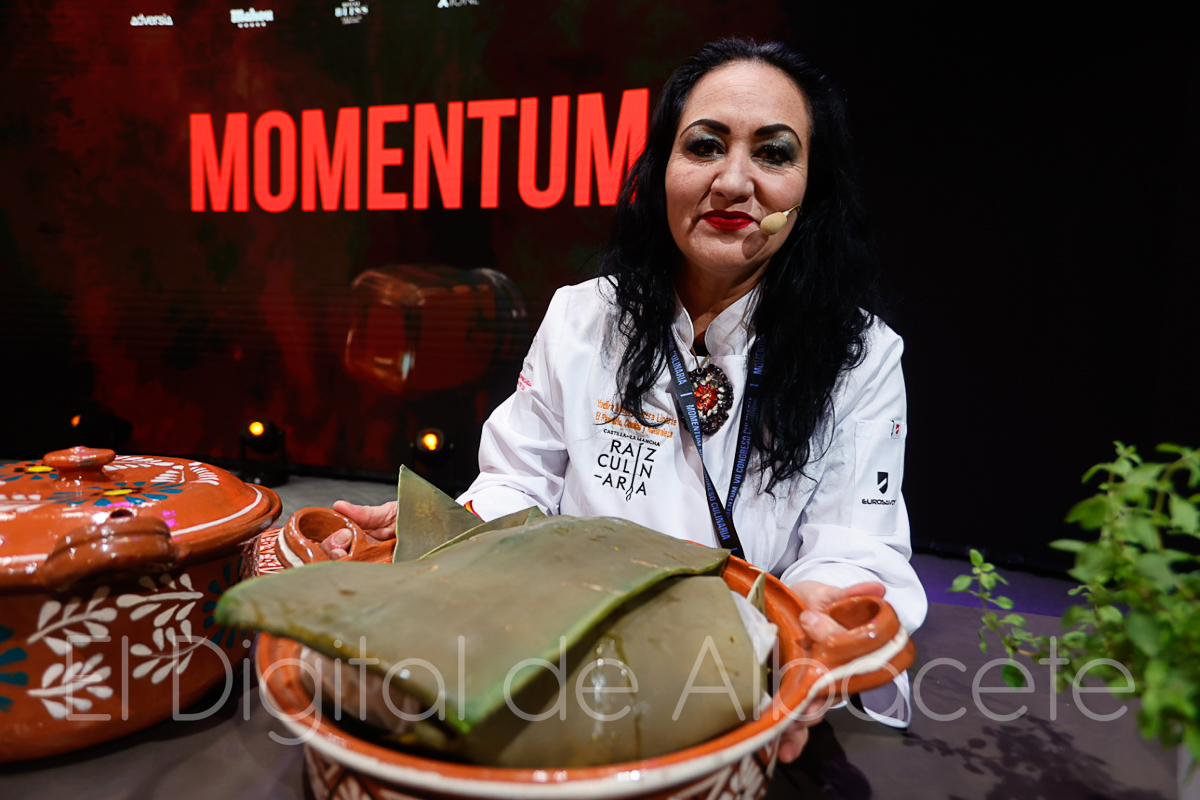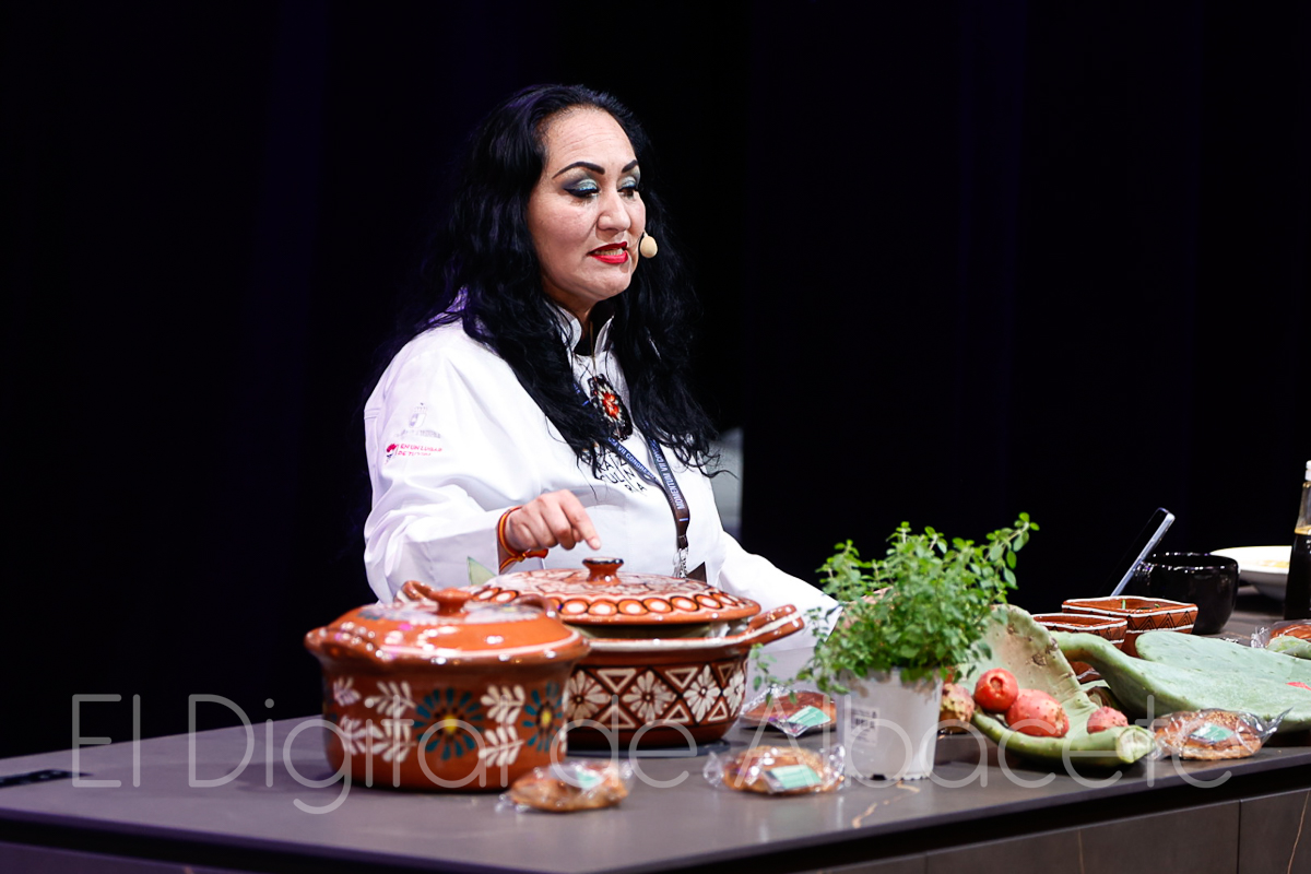 Yadira Vianey Olvera Linarte, procedente del restaurante El ranchito (México), fue la protagonista del showcooking de la tarde, bajo el título “Sabores y saberes de mi pueblo”. Con este juego de palabras puso su particular huella internacional en la ciudad de Cuenca gracias a los ingredientes exóticos de Nanacamilpa como las distintas variedades de insectos.
