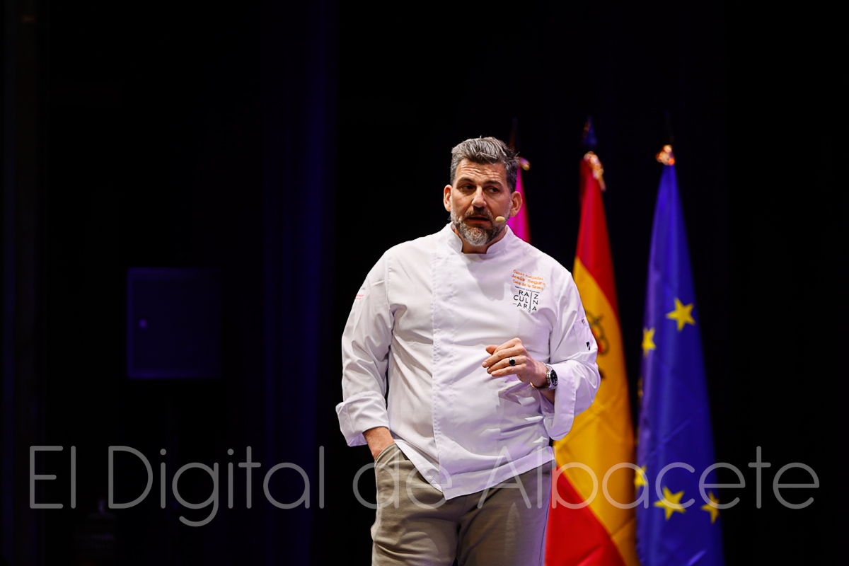 Dacosta se mostró en todo momento abierto a lo que el mundo pueda ofrecerle para mejorar: “Si te cierras al mundo el mundo se cerrará a ti”, puntualizó el chef, quien animó a los presentes a perder el miedo al fracaso si quieren aportar algo en la vida. Aprovechó para remarcar la idea de que la cocina y el pueblo deben ir de la mano como impulsó personalmente en recientes ediciones del Festival de Denia, y tuvo una mención especial para la revolución de Jesús Segura en el Casas Colgadas de Cuenca.