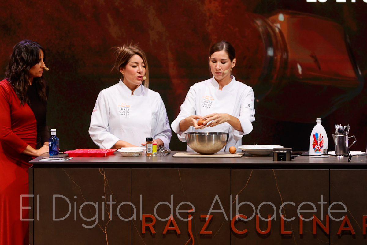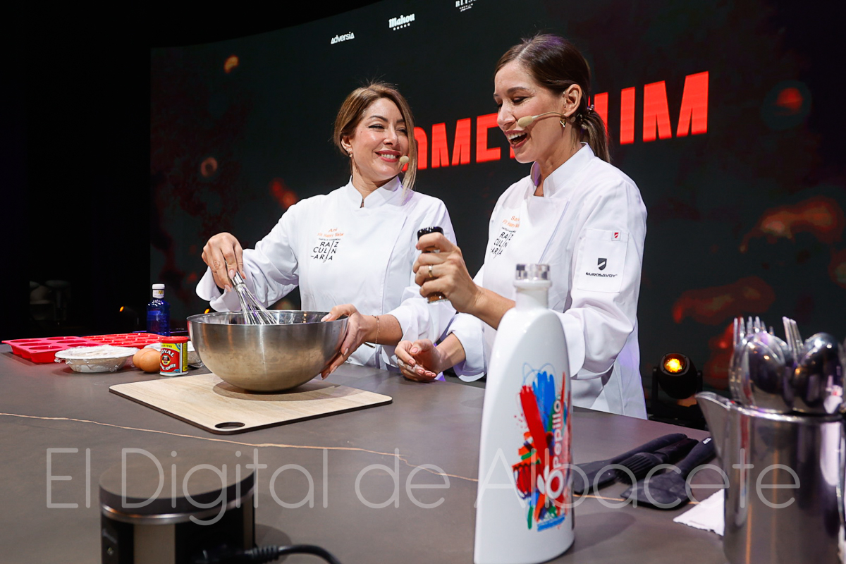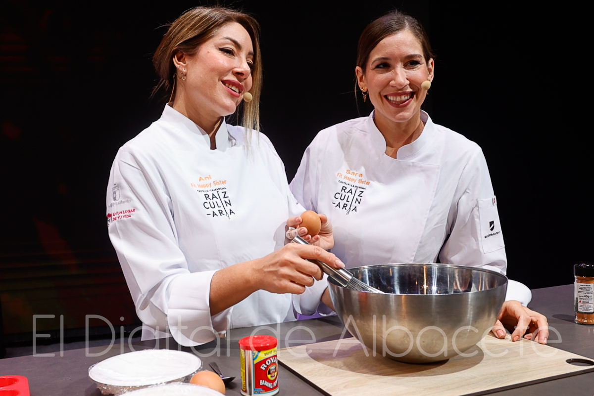 El show comenzó con un bizcocho de manzana rallada, pero sin harina refinada y con eritritol, el edulcorante de moda. Eso sí, con el atractivo de que se podía oler y oír el cocinado en el corazón del Auditorio conquense como si fuera un restaurante improvisado. “Ahora nuestro modelo se ve de forma diferente porque Internet es una plataforma de visibilidad para el mundo, pero nosotras llevamos 12 años y entonces no había cuentas en español”, relataron haciendo alusión a sus inicios y al camino emprendido como una forma de compartir y aprender. Después de muchos años de dietas y ansiedades se pusieron a investigar y el resultado ha sido miles de recetas convertidas en contenido viral.