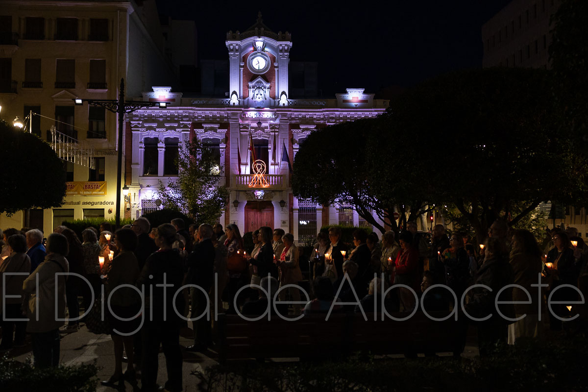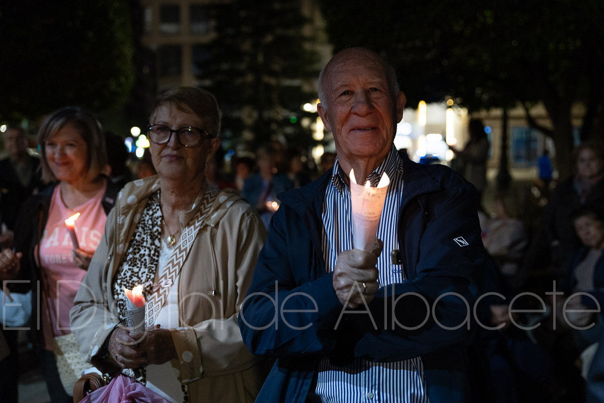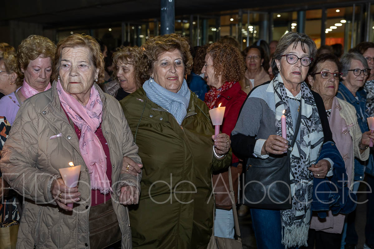 Así, ponía énfasis Manuel Serrano en las «más de 1.000 personas que participaron ayer en vuestra carrera en llenando de color rosa el Recinto Ferial», una iniciativa «para dar visibilidad al cáncer de mama, para mostrar vuestro compromiso y a la vez estimular hábitos de vida saludables». Pero además, agradecía el alcalde de Albacete a todas las personas que forman parte de AMAC y que en esta jornada «os habéis echado a las calles con esas mesas para recibir el calor y el compromiso de la gente de Albacete con el objetivo de que la lucha no cese, para seguir mejorando la esperanza de vida de las pacientes oncológicas». Pero también tenía presente Serrano «a todas aquellas que no lo han superado pero que nos cargan de energía, y a todas las que están atravesando este difícil momento, recordaros que sois un ejemplo de vida y de superación». Una especial marcha en la que las participantes han portado velas y han guardado un minuto de silencio en recuerdo de quienes se han convertido en luz tras el paso de la enfermedad.