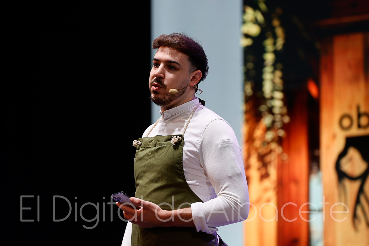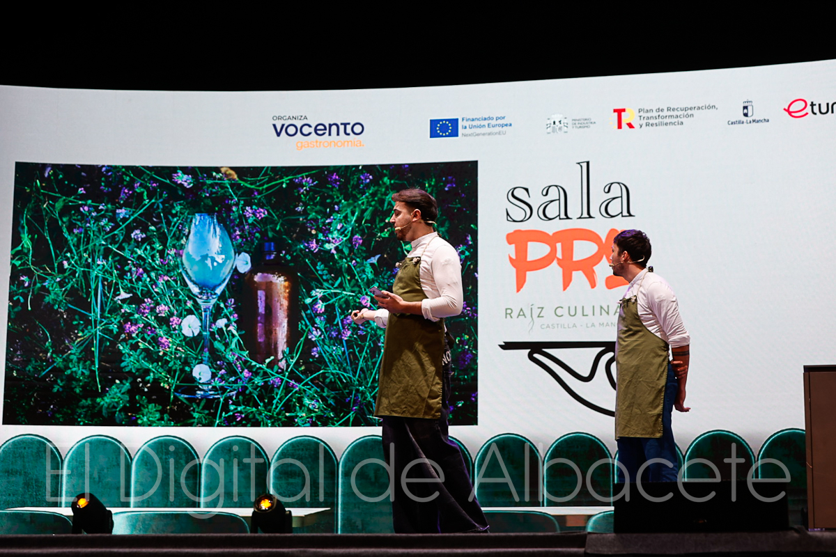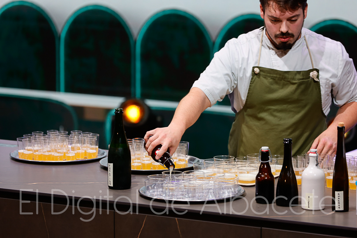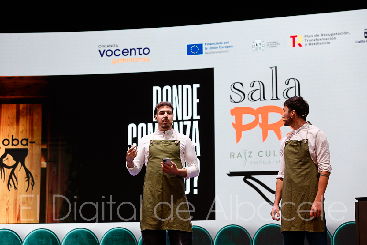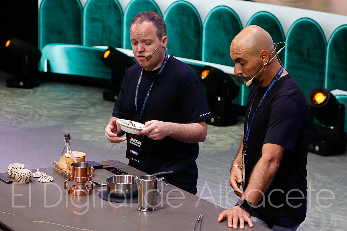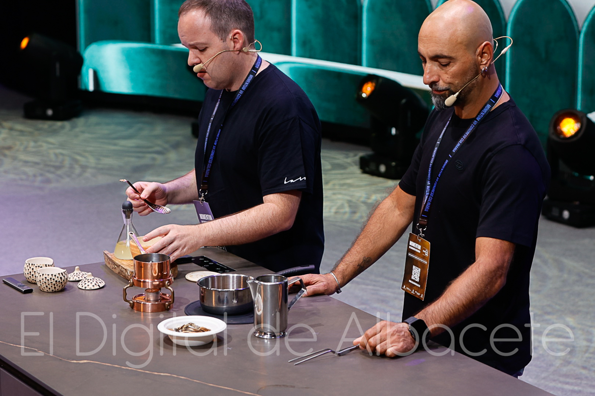 El chef Juan Sahuquillo y el investigador culinario Andrés Vera, ambos del restaurante OBA** (Casas-Ibáñez, Albacete), protagonizaron una ponencia inspiradora de la jornada: “Natura”, un viaje sensorial al corazón de la Manchuela a través de sus fermentaciones vivas y su maridaje no alcohólico.