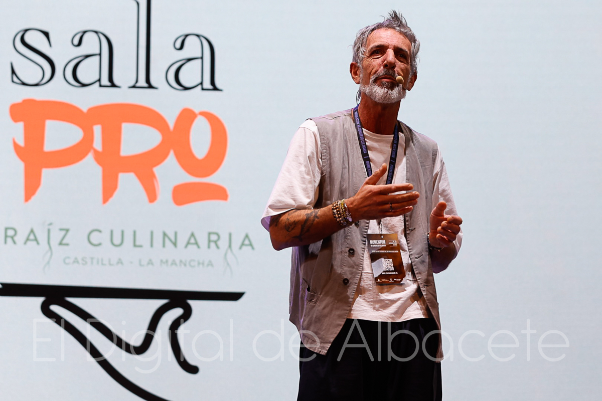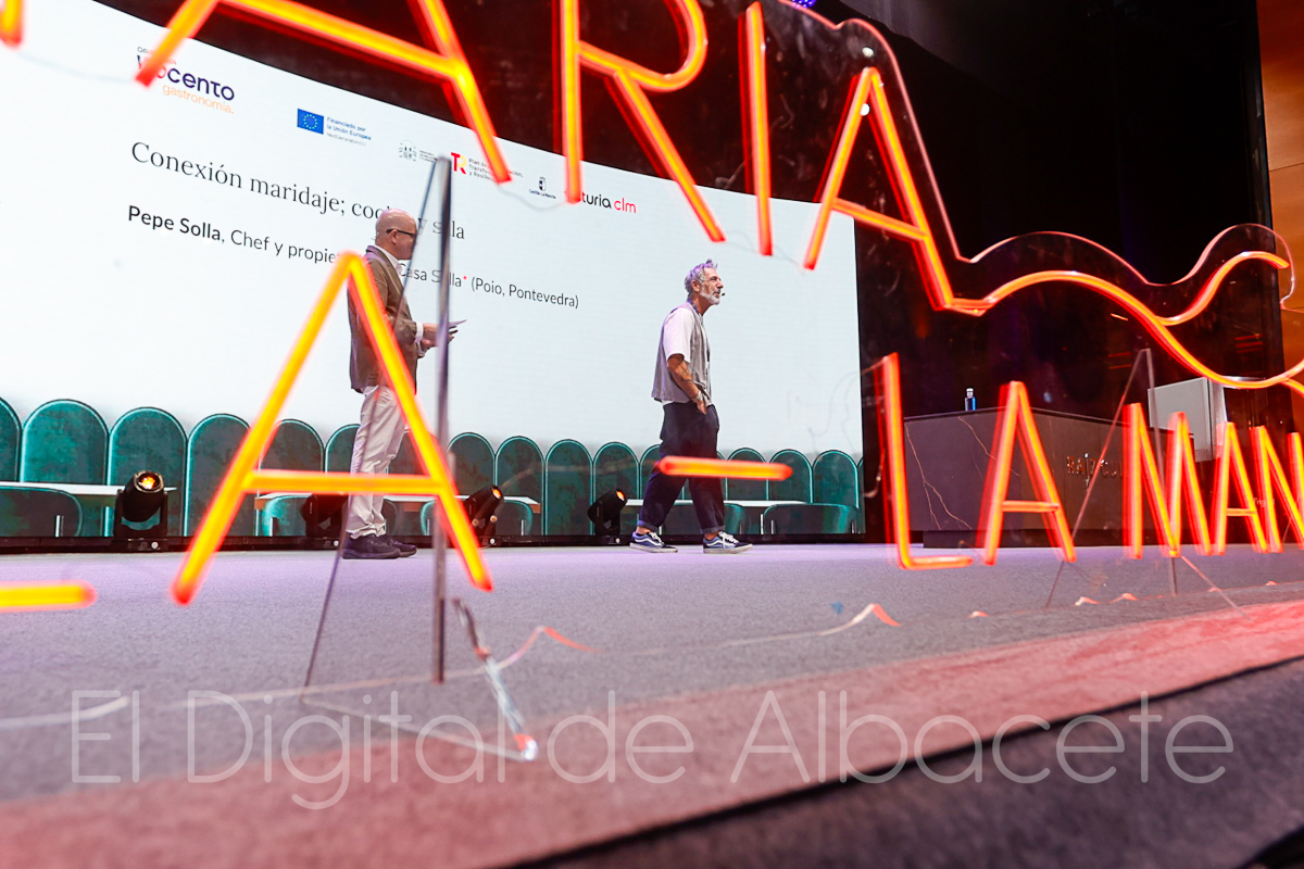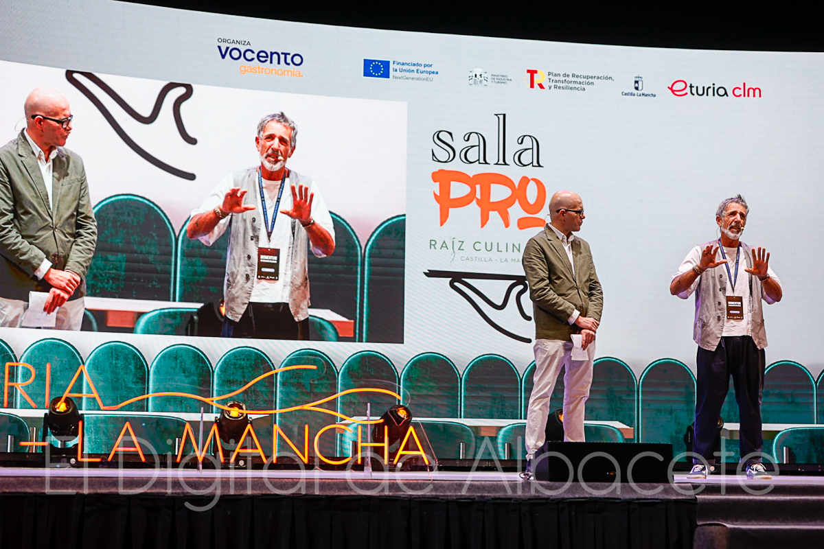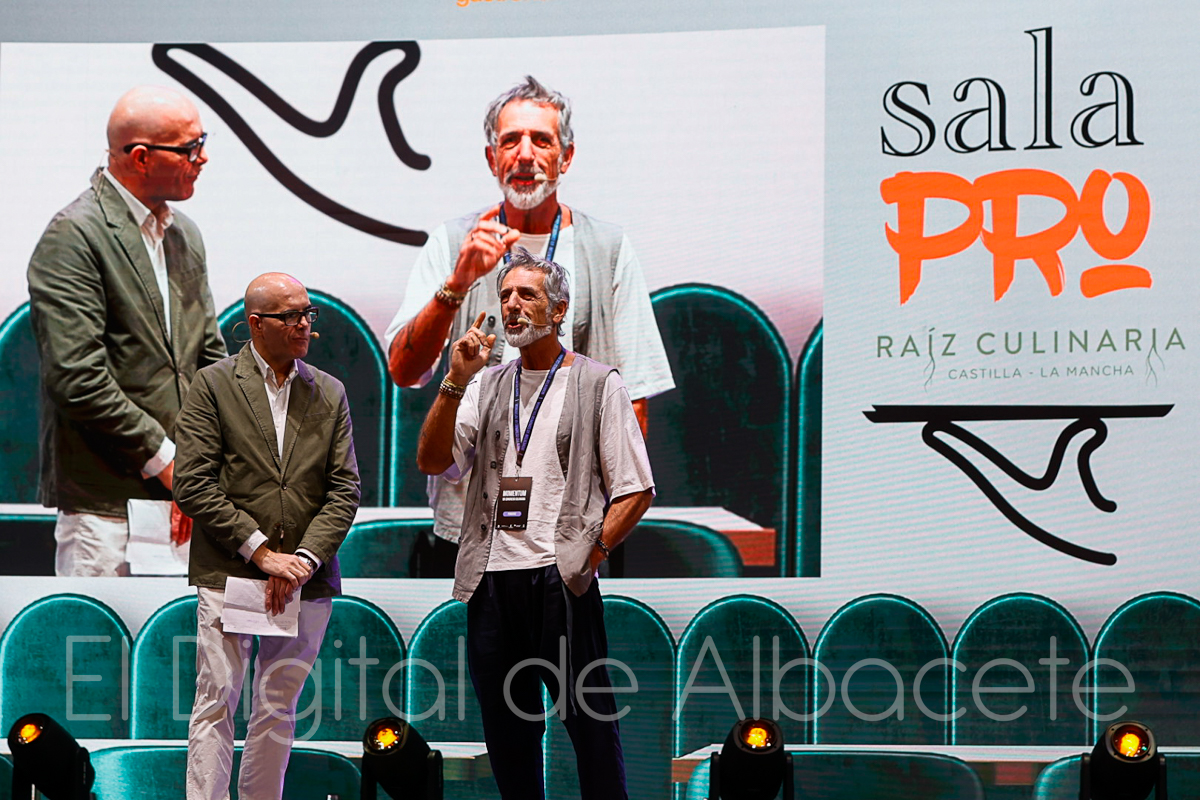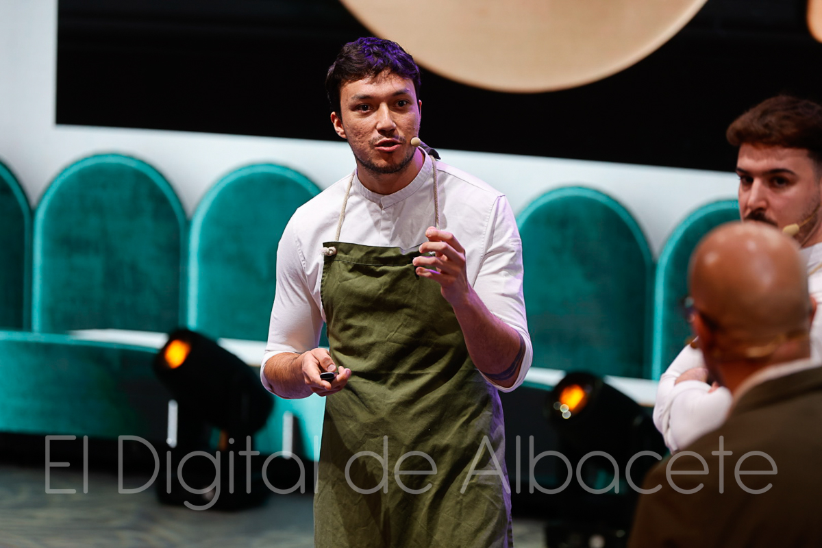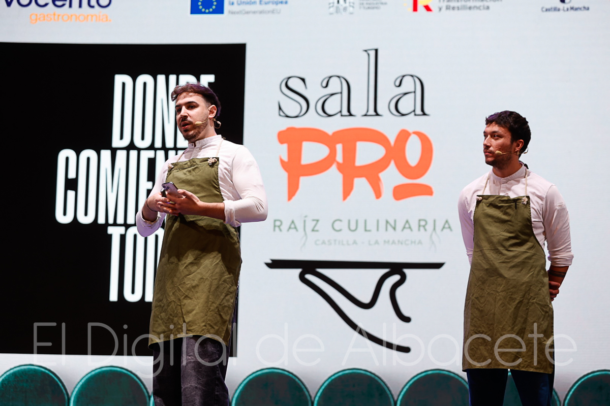 El chef Juan Sahuquillo y el investigador culinario Andrés Vera, ambos del restaurante OBA** (Casas-Ibáñez, Albacete), protagonizaron una ponencia inspiradora de la jornada: “Natura”, un viaje sensorial al corazón de la Manchuela a través de sus fermentaciones vivas y su maridaje no alcohólico.