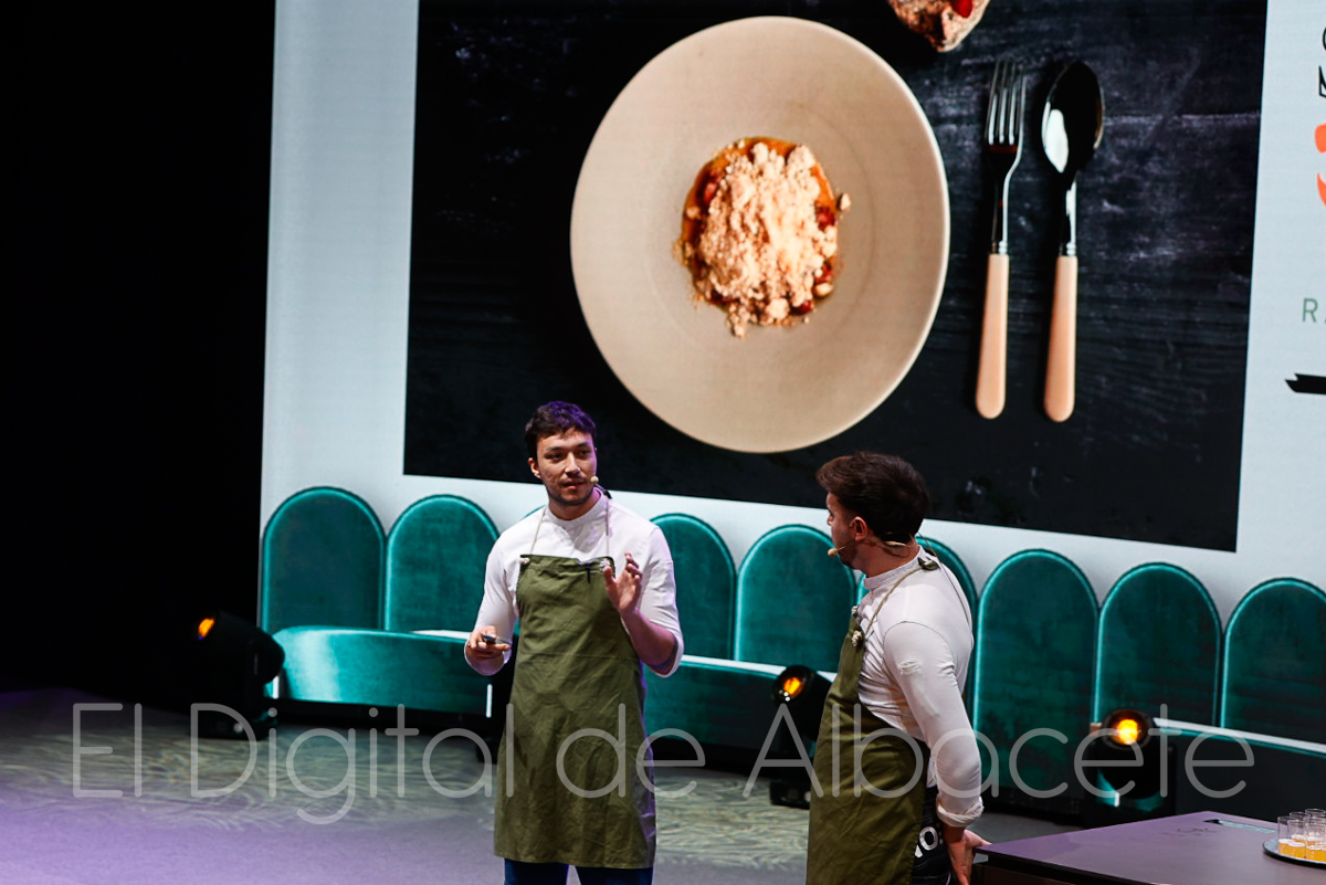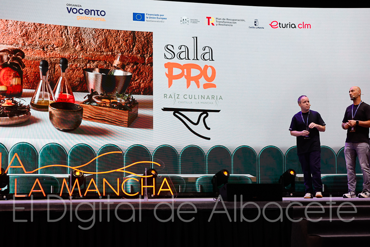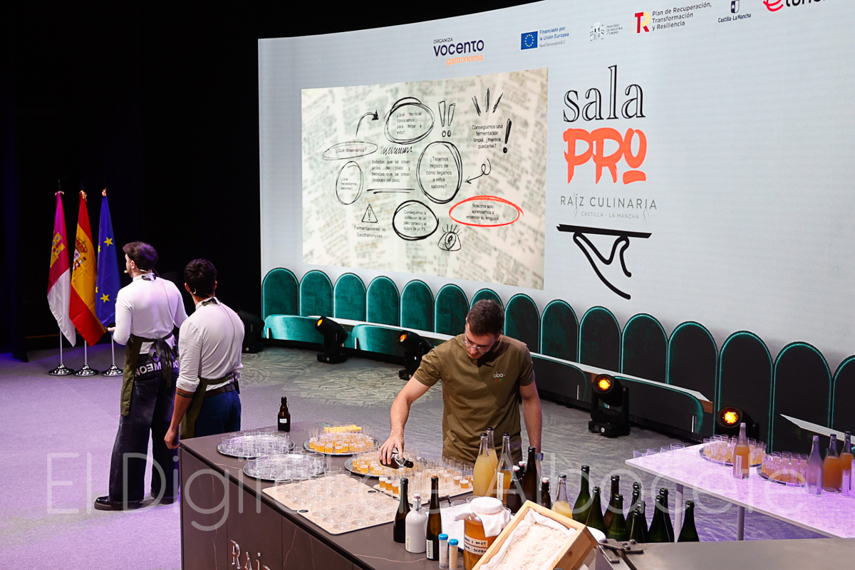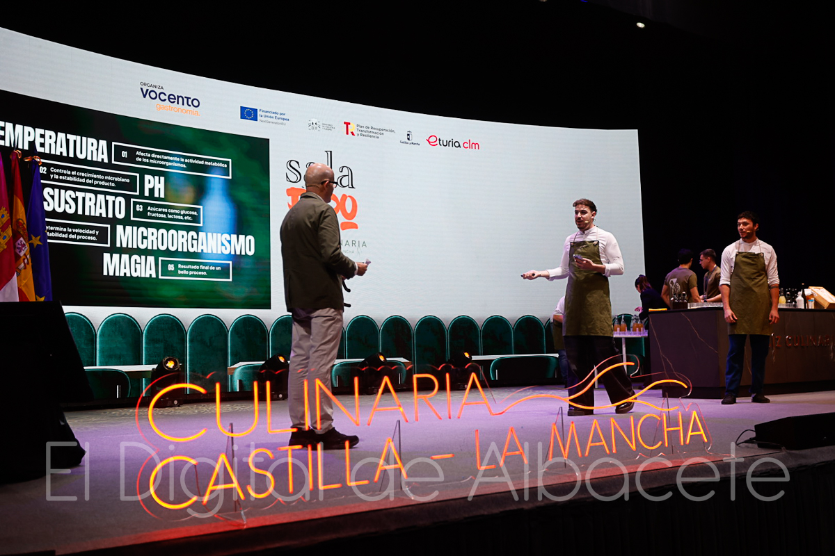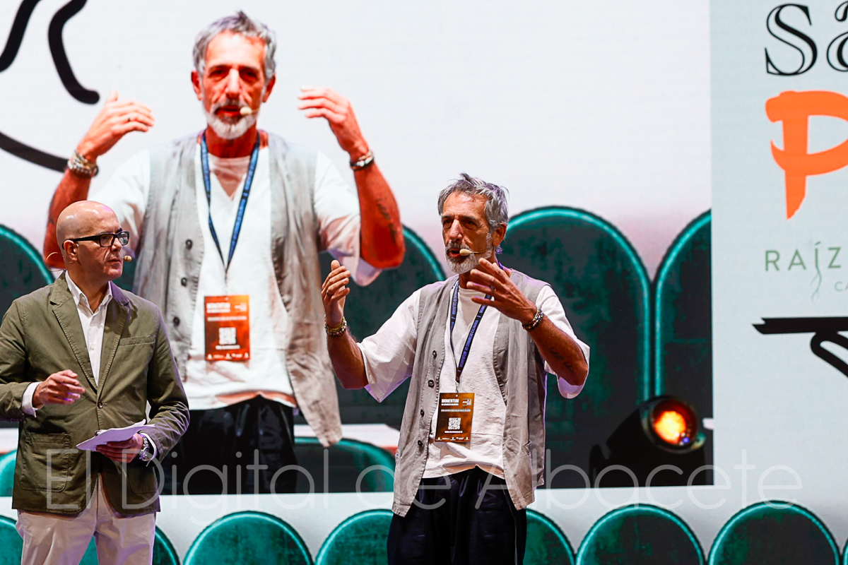 El chef Juan Sahuquillo y el investigador culinario Andrés Vera, ambos del restaurante OBA** (Casas-Ibáñez, Albacete), protagonizaron una ponencia inspiradora de la jornada: “Natura”, un viaje sensorial al corazón de la Manchuela a través de sus fermentaciones vivas y su maridaje no alcohólico.