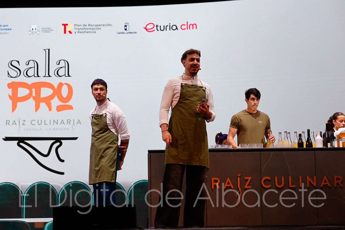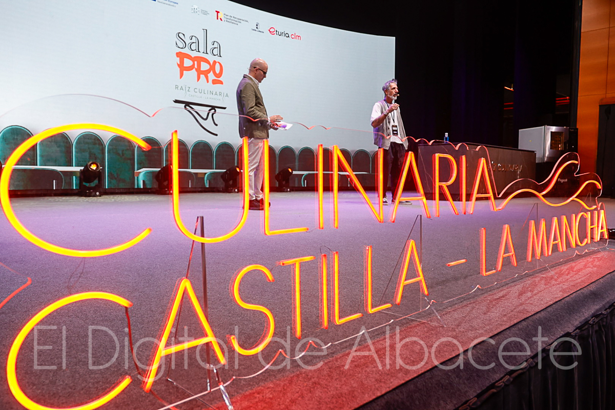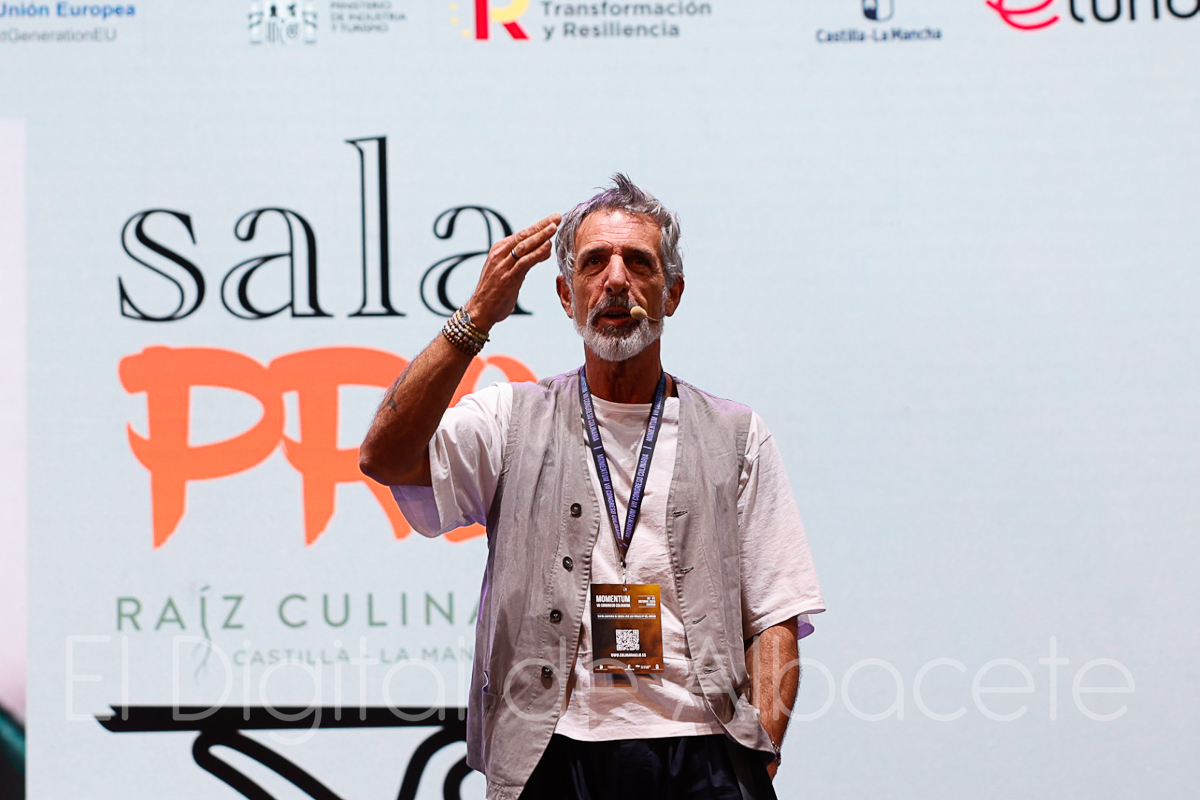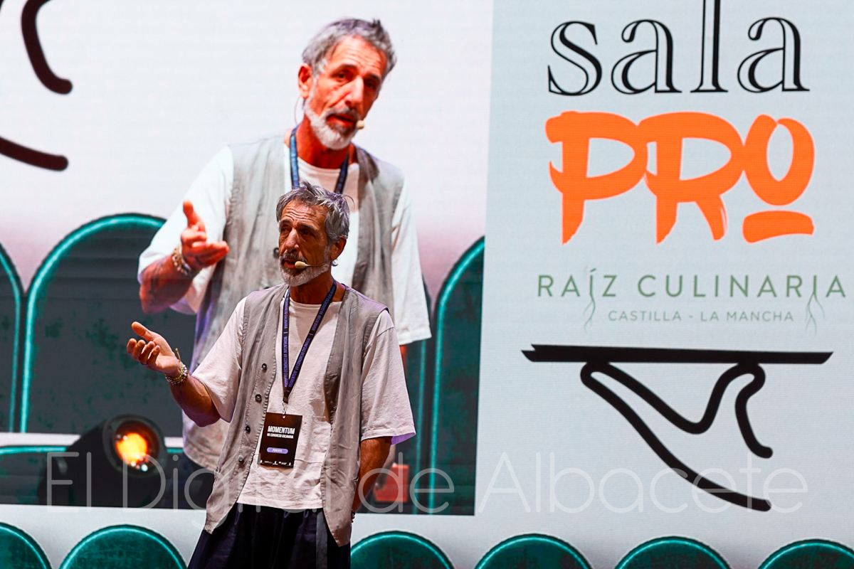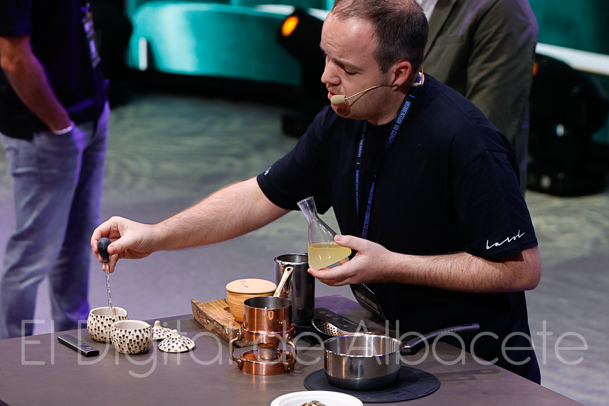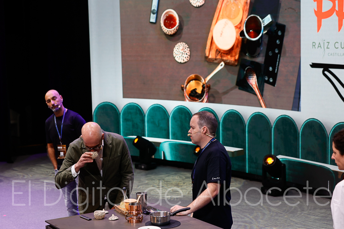 El chef Juan Sahuquillo y el investigador culinario Andrés Vera, ambos del restaurante OBA** (Casas-Ibáñez, Albacete), protagonizaron una ponencia inspiradora de la jornada: “Natura”, un viaje sensorial al corazón de la Manchuela a través de sus fermentaciones vivas y su maridaje no alcohólico.