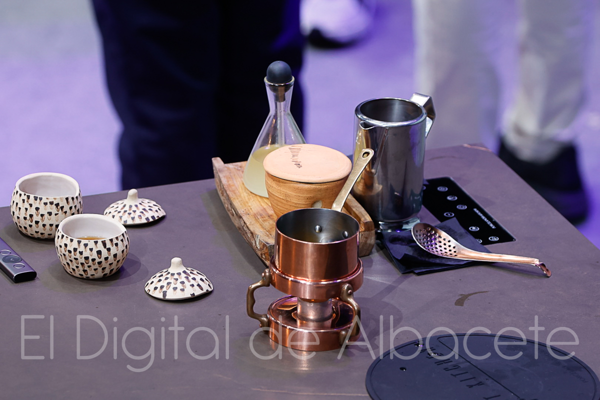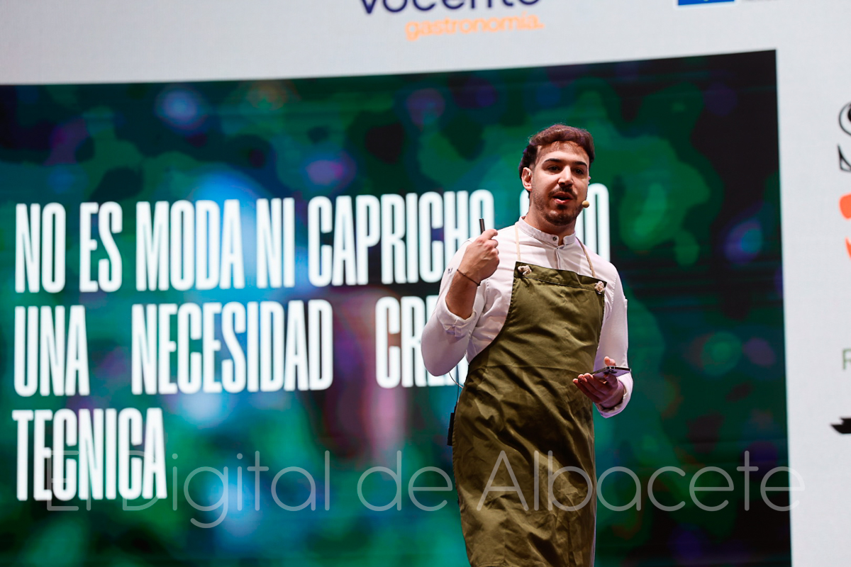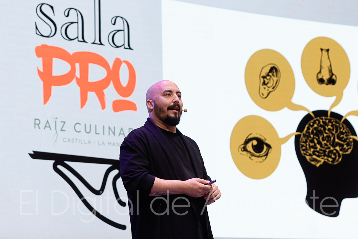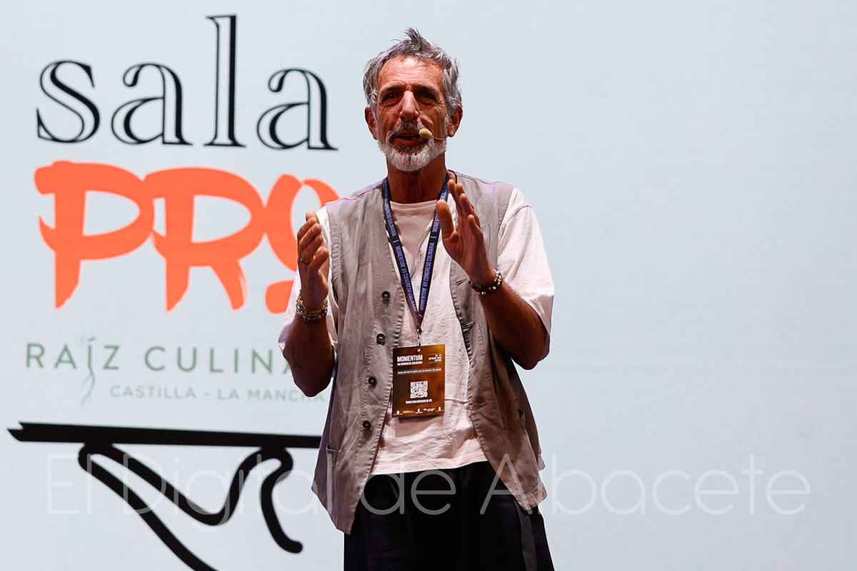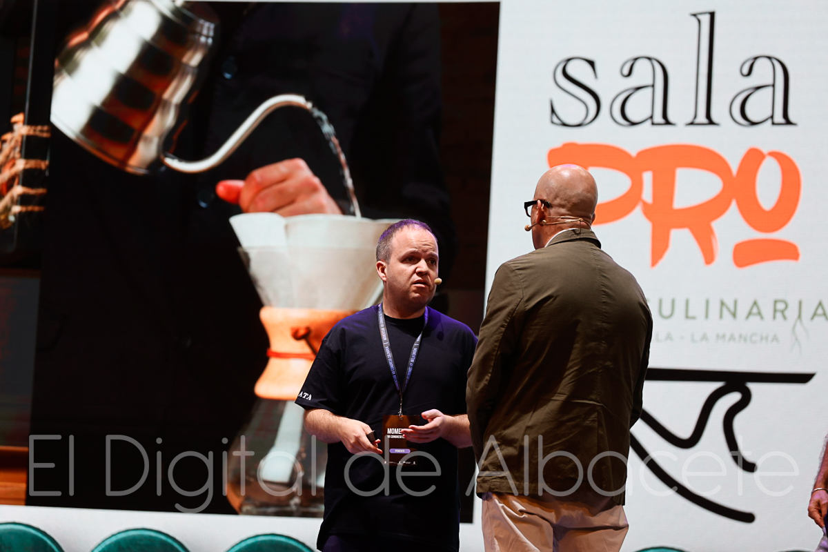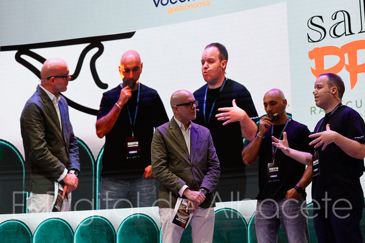 El chef Juan Sahuquillo y el investigador culinario Andrés Vera, ambos del restaurante OBA** (Casas-Ibáñez, Albacete), protagonizaron una ponencia inspiradora de la jornada: “Natura”, un viaje sensorial al corazón de la Manchuela a través de sus fermentaciones vivas y su maridaje no alcohólico.