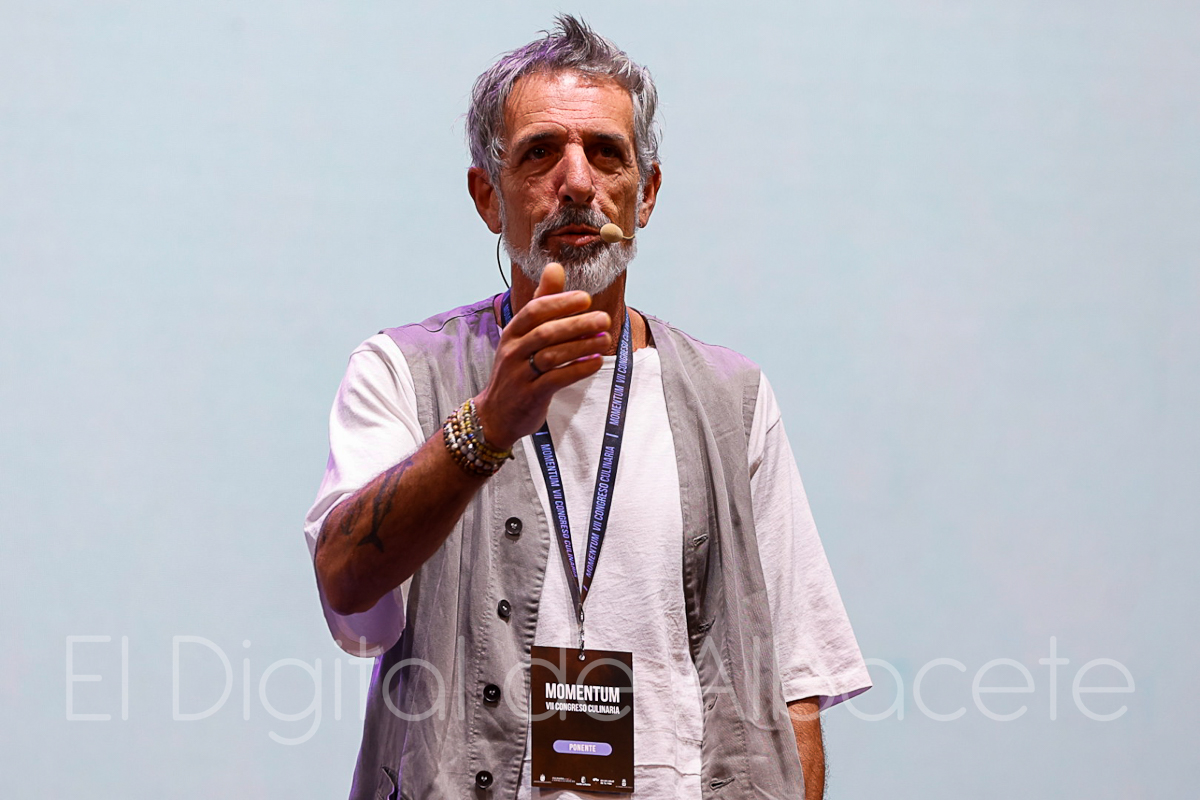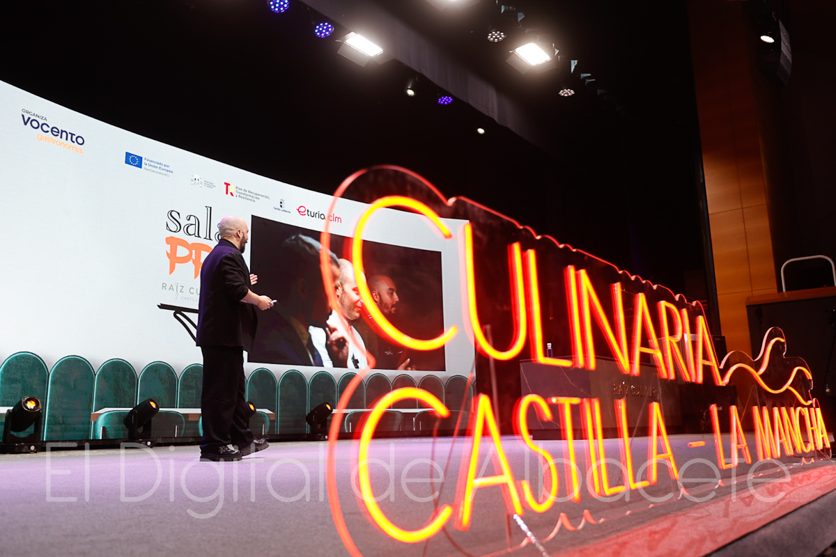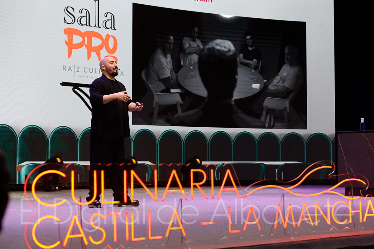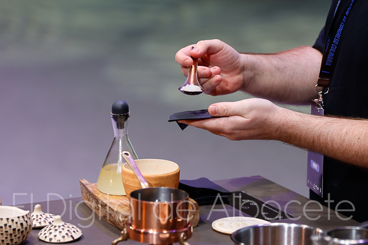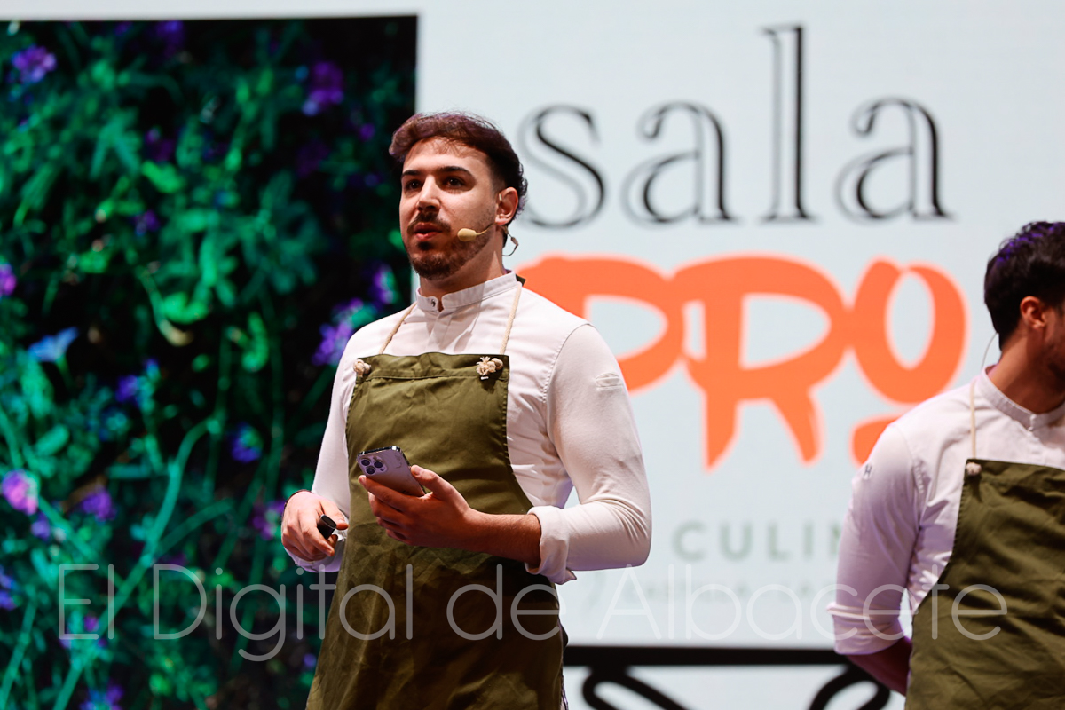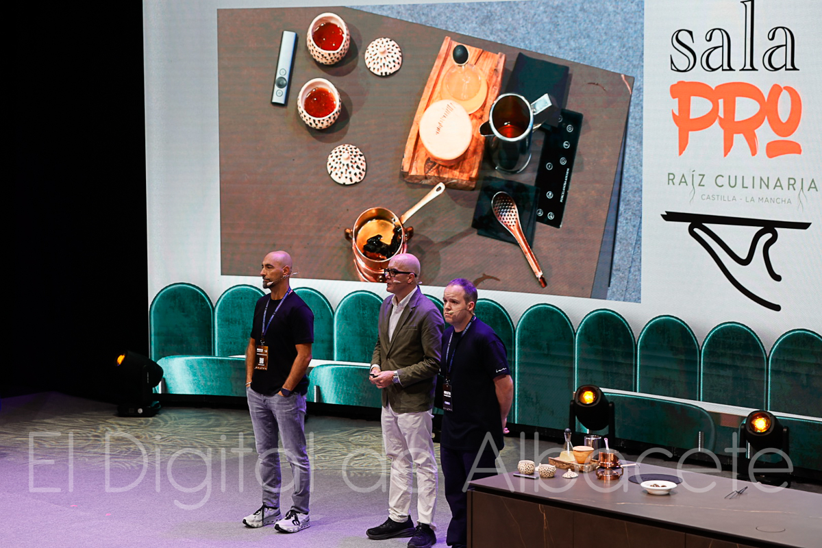 El chef Juan Sahuquillo y el investigador culinario Andrés Vera, ambos del restaurante OBA** (Casas-Ibáñez, Albacete), protagonizaron una ponencia inspiradora de la jornada: “Natura”, un viaje sensorial al corazón de la Manchuela a través de sus fermentaciones vivas y su maridaje no alcohólico.