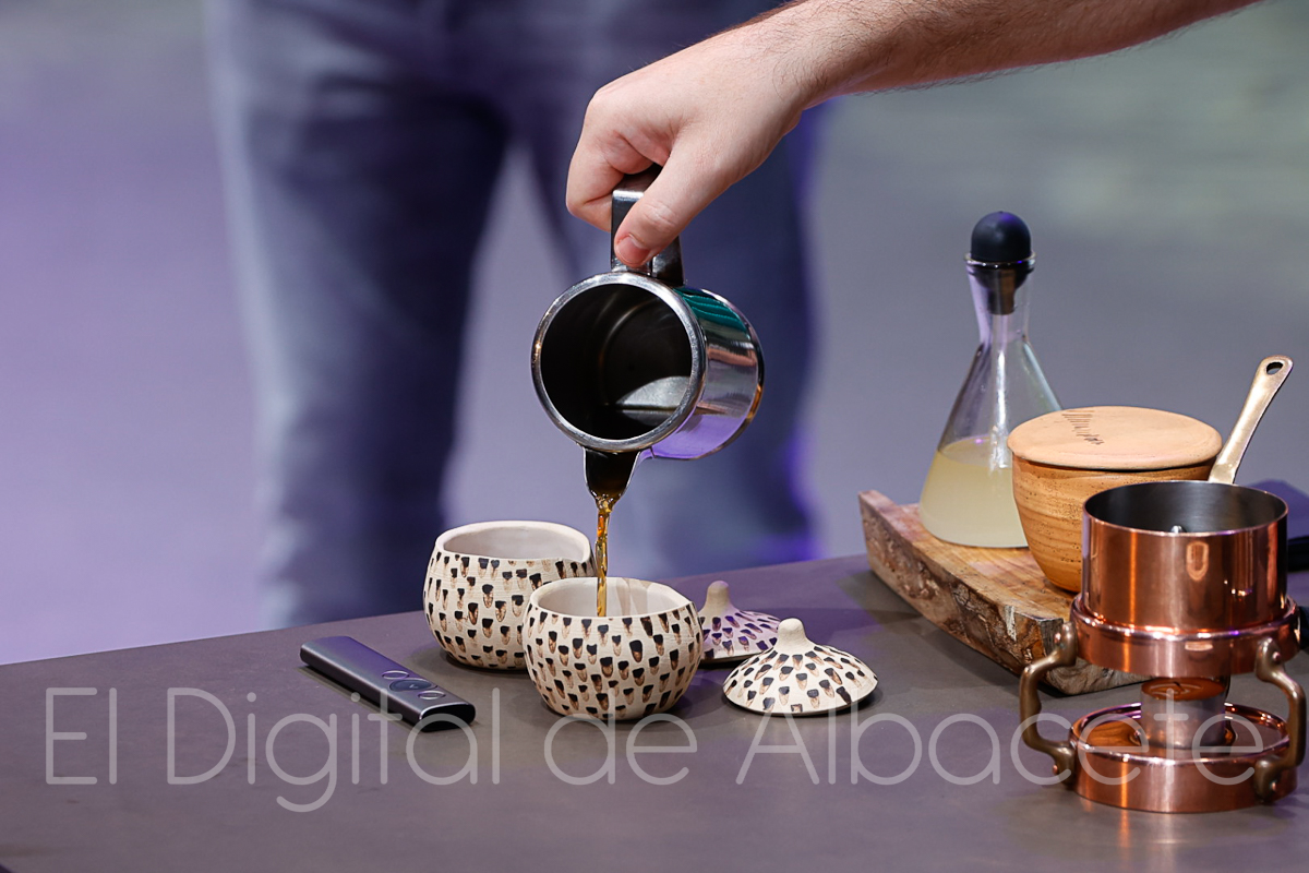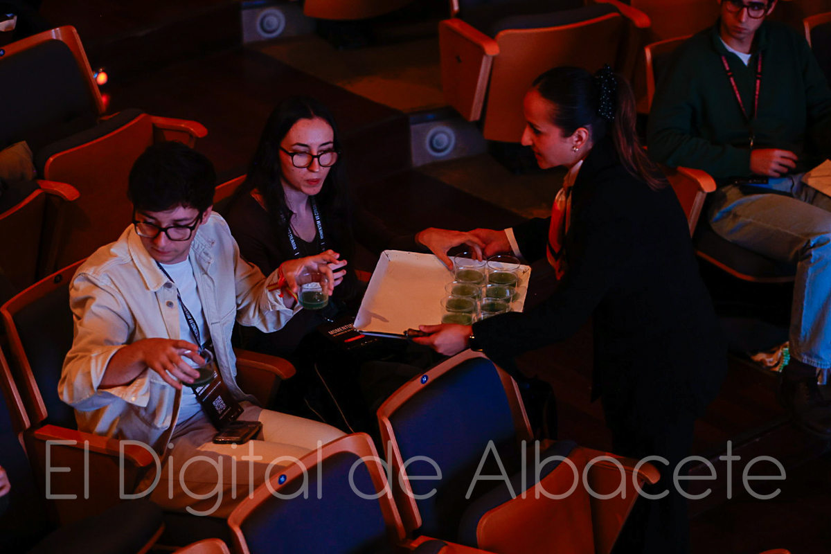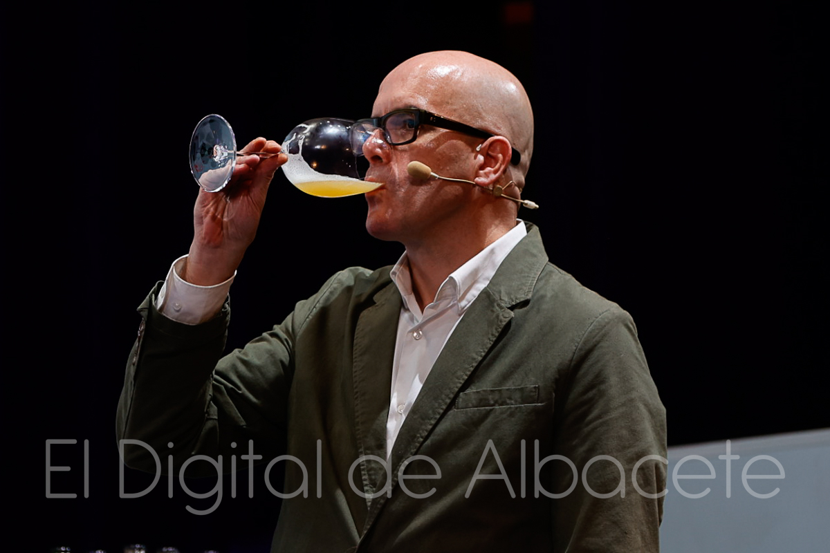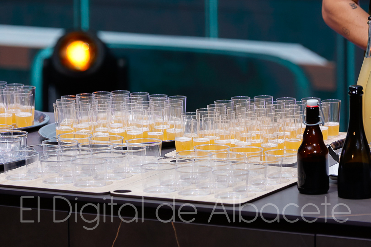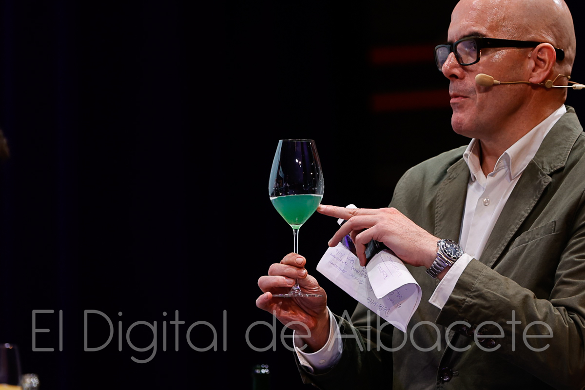 La sesión arrancó con una degustación en directo de cinco bebidas creadas en su propio restaurante empleando I+D, con una advertencia entre risas: “solo una tiene alcohol”.
