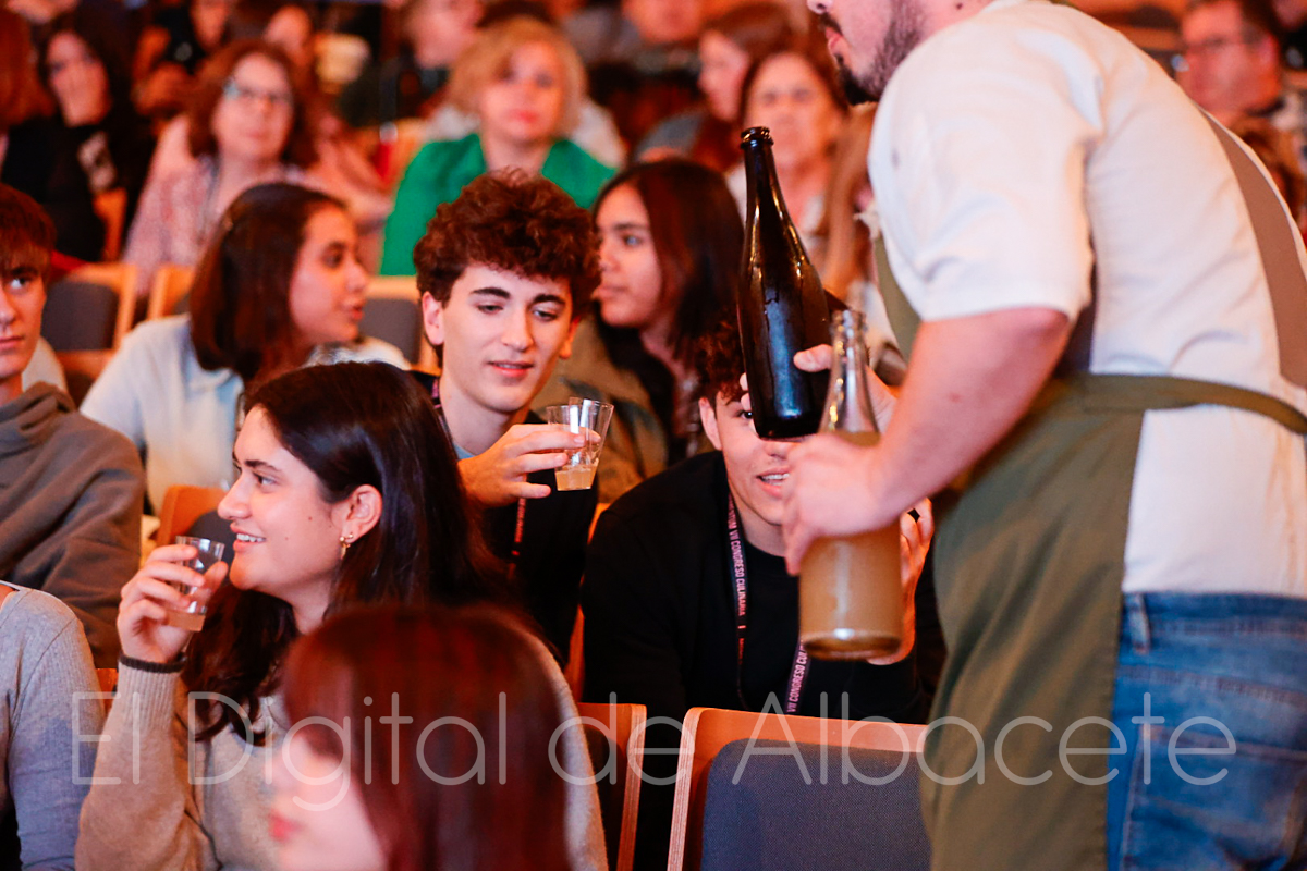 El público probó versiones inspiradas en vinos generosos, fermentaciones de saúco o el Bíter, una bebida nacida por accidente mientras intentaban elaborar un vermut: “Queríamos hacer un vermut, y salió esto” explicó Sahuquillo.