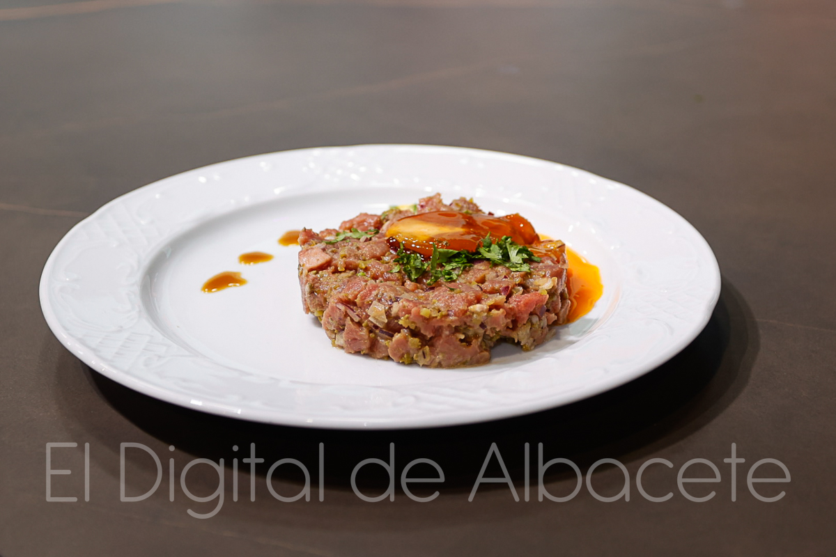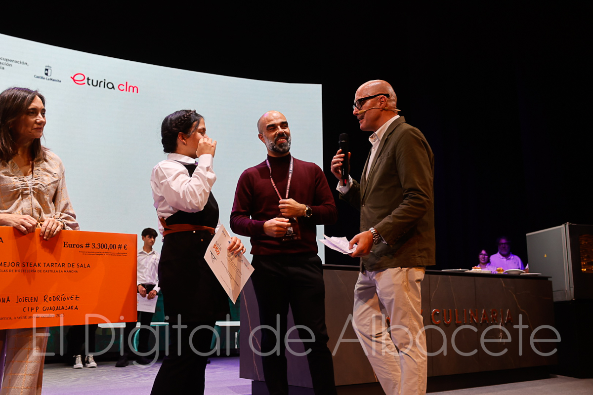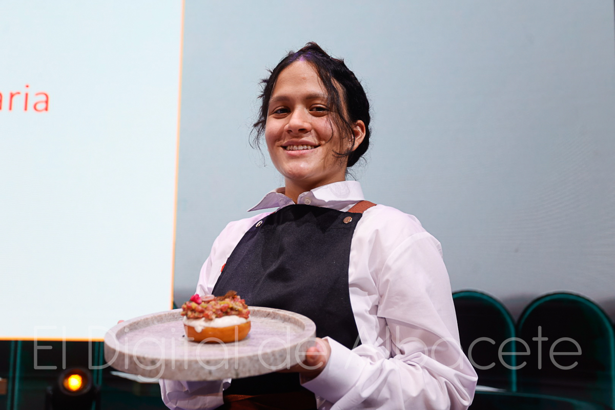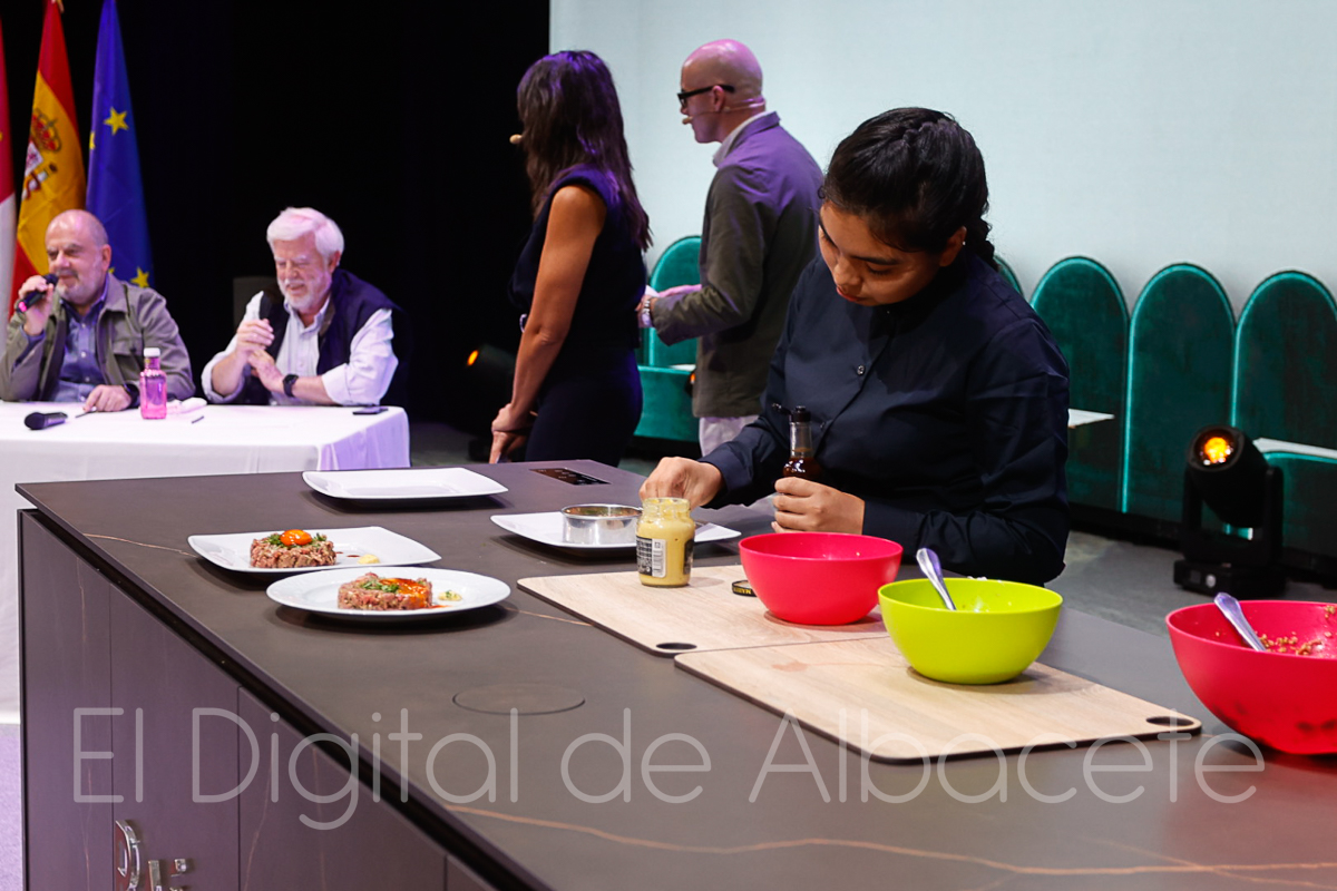 La jornada finalizó con un emocionante concurso gastronómico, en concreto la segunda edición de Steak Tartar, que reunió a cinco participantes: Sofía Pacheco, del IES Alondo de Orozco (Oropesa, Toledo); María Isabel Muñoz, del IES Fray Luis de León (Las Pedroñeras, Cuenca); Mateo Zarco de la Escuela de Hostelería de Castilla-La Mancha (Tembleque, Toledo), Ariadna Rodríguez del CIFP Guadalajara de Guadalajara y Alejendro García del IES Alonso de Orozco (Oropesa, Toledo).